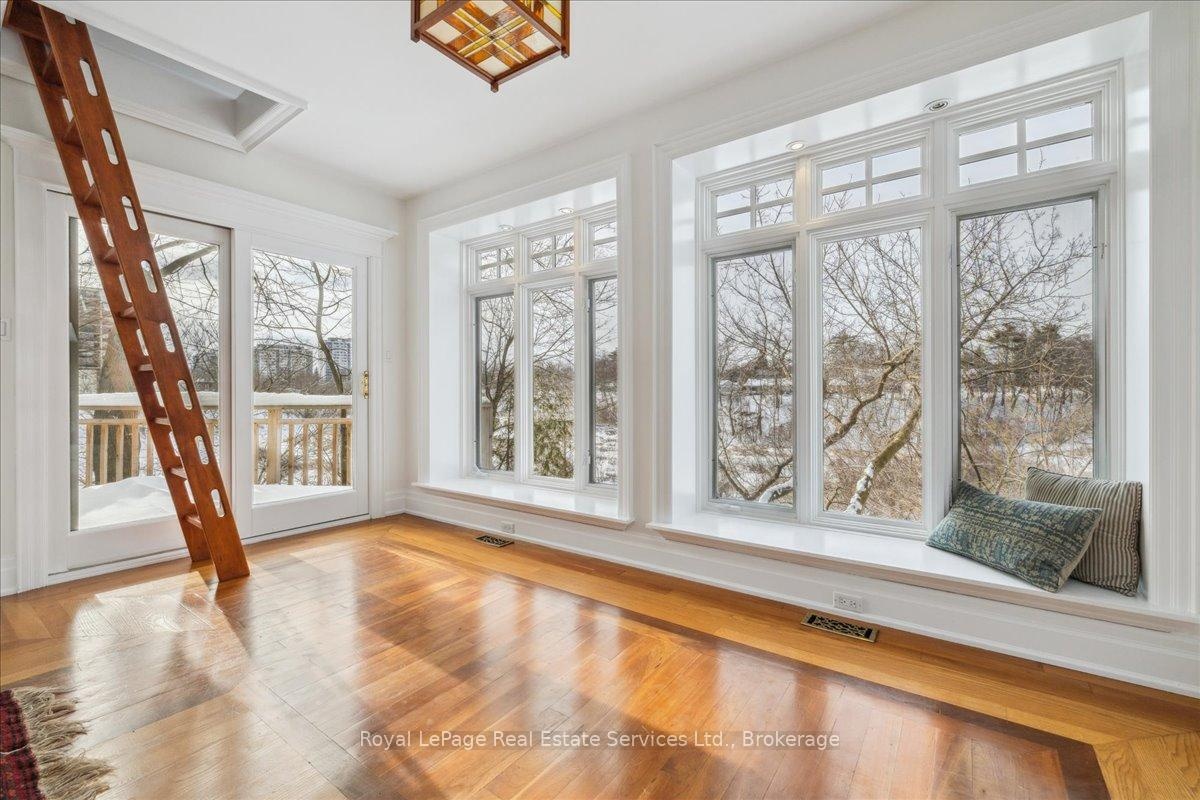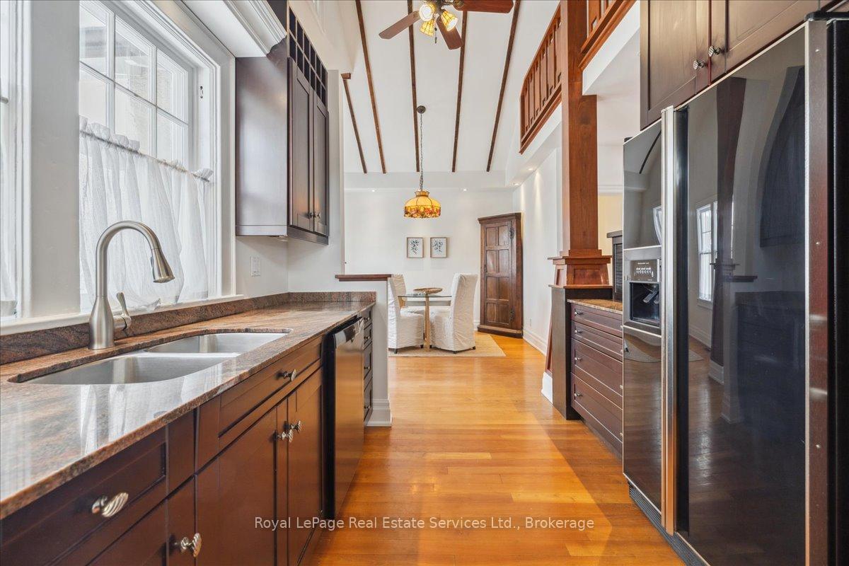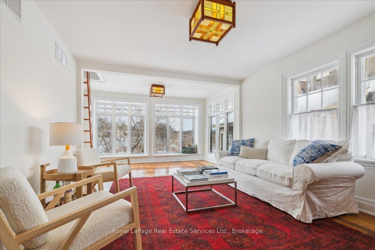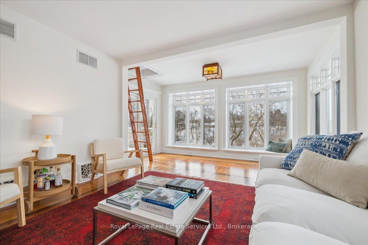Incredible waterfront bungalow with walk-out lower level and spectacular views over the 16 Mile Creek located steps to the heart of Downtown Oakville. The perfect alternative to a condo or townhome with the bonus of priceless views! This charming heritage home with 1900SF total living area was re-engineered, gut renovated and extended in 1999. Open concept floor plan with soaring vaulted ceilings and hardwood flooring. Galley kitchen open to informal dining area. Spacious living room with extensive built-ins, gas fireplace, beautiful boxed windows overlooking the river and walk-out to balcony. Main floor bedroom and 3-piece washroom. The lower level is fully above-grade at the rear and features hydronic radiant heated floors and a walk-out to large patio. This floor features a primary suite overlooking the river with 4-piece ensuite bathroom, large recreation room / 3rd bedroom and a finished laundry room. Bonus finished loft space with additional 427 SF - perfect for the grandkids. New Cedar roof (2019); Cedar exterior detailing railings, deck & shed. Outside find parking for 2 cars and a handy storage shed. Enjoy access the river for kayaking, canoeing, winter walks, skating, cross-country skiing or simply take-in the panorama and activity on the river year round. Just steps to Towne Square, Lake Ontario and all that Downtown Oakville has to offer. Walk-score 97! A truly unique opportunity to enjoy country life in the city.