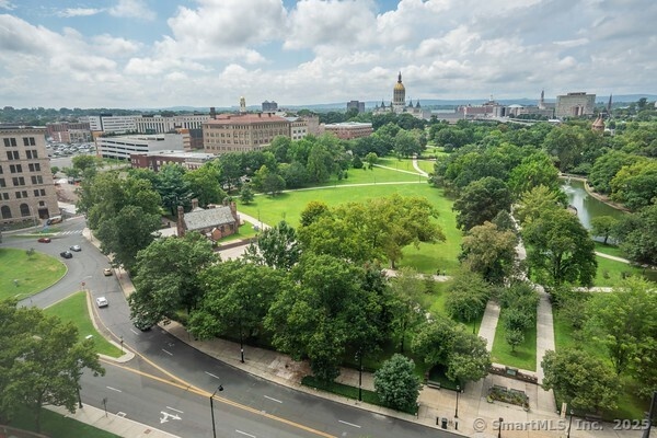 Spectacular views of Bushnell Park and the Capitol from this 14 th floor unit in downtown Hartford.
