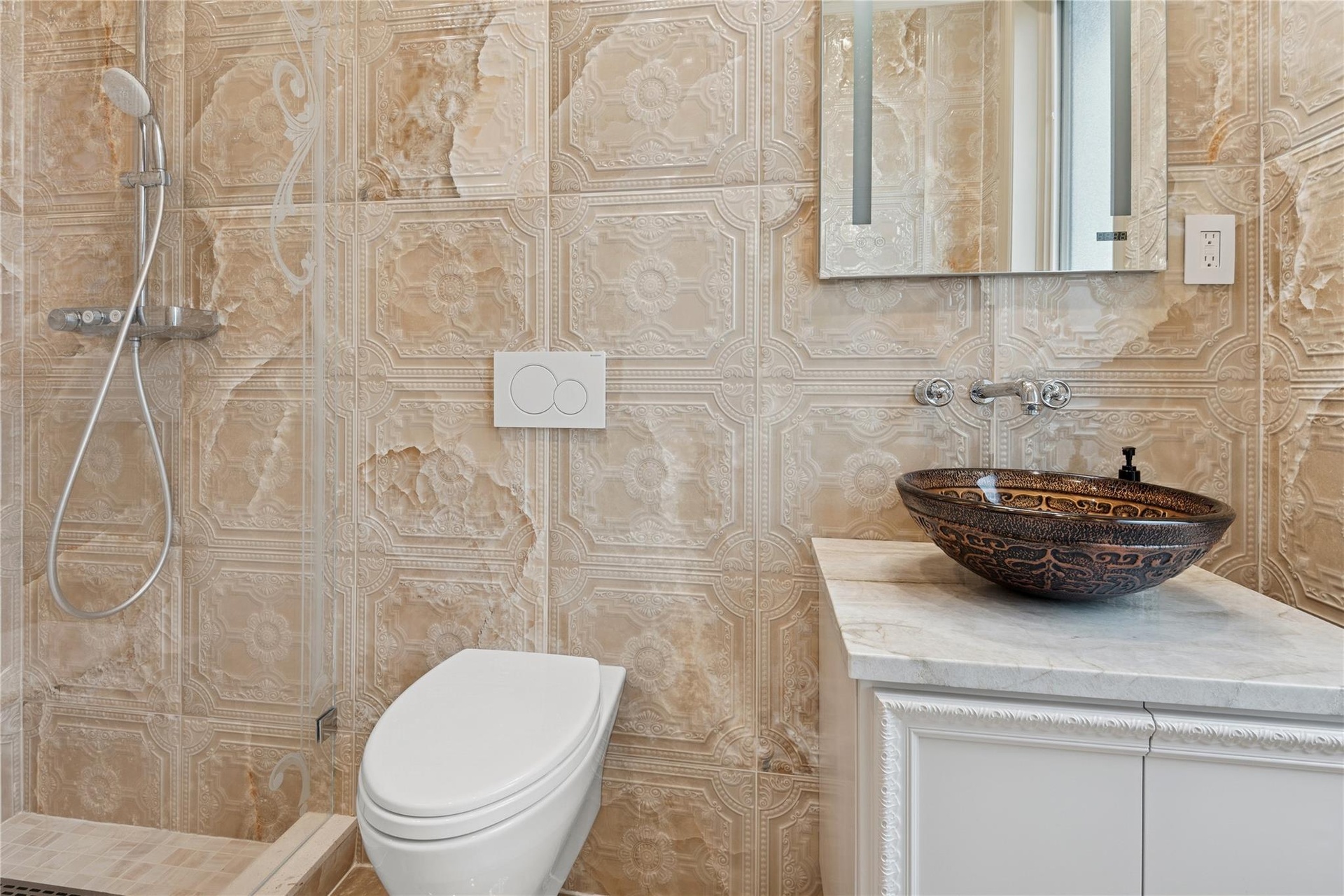 Outdoors, professionally landscaped grounds feature custom lighting, irrigation, and a marine-grade bulkhead under 10 years old. The home is being offered fully furnished with bespoke pieces imported from Italy—each one selected for scale, luxury, and sophistication.