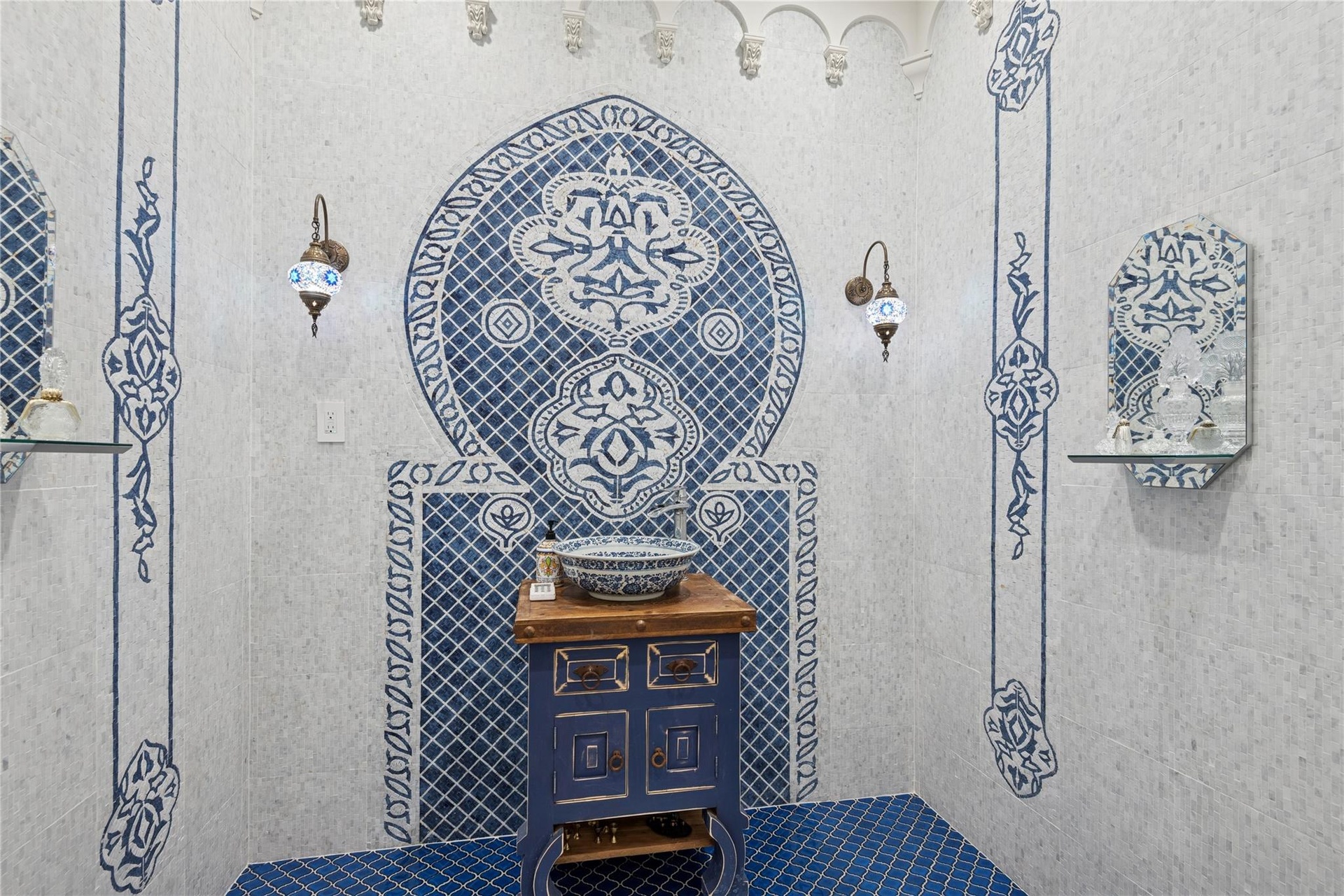 Every inch reflects artisan craftsmanship, from hand-carved Italian moldings and imported interior doors to radiant heat flooring throughout the main level. The showstopping chef’s kitchen features Italian Taj Mahal quartzite countertops, a custom copper hood, dual copper farmhouse sinks, and a suite of Sub-Zero, Wolf, and Miele appliances, engineered for culinary excellence.