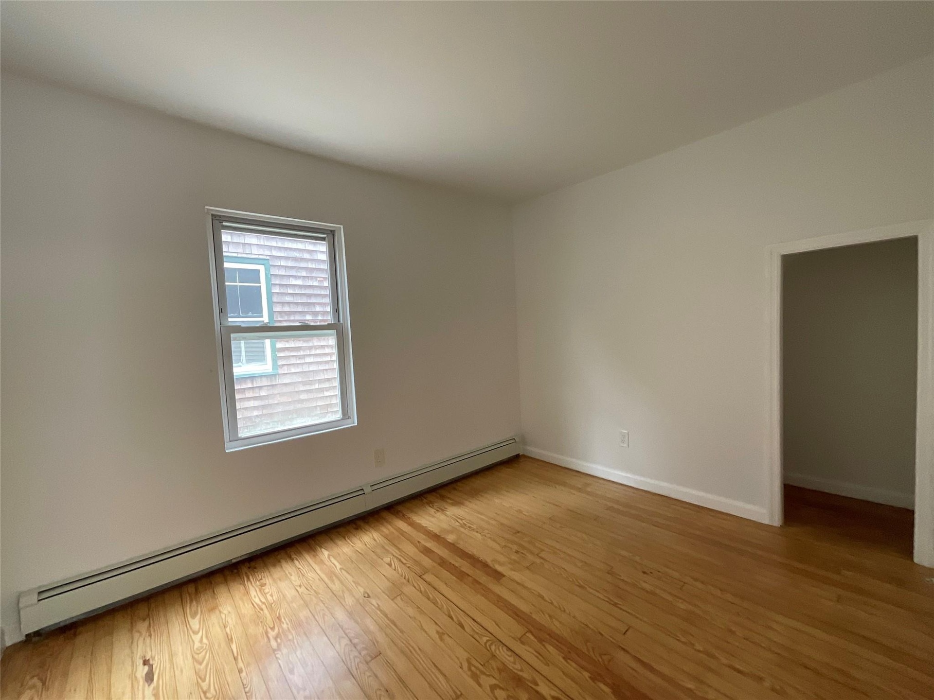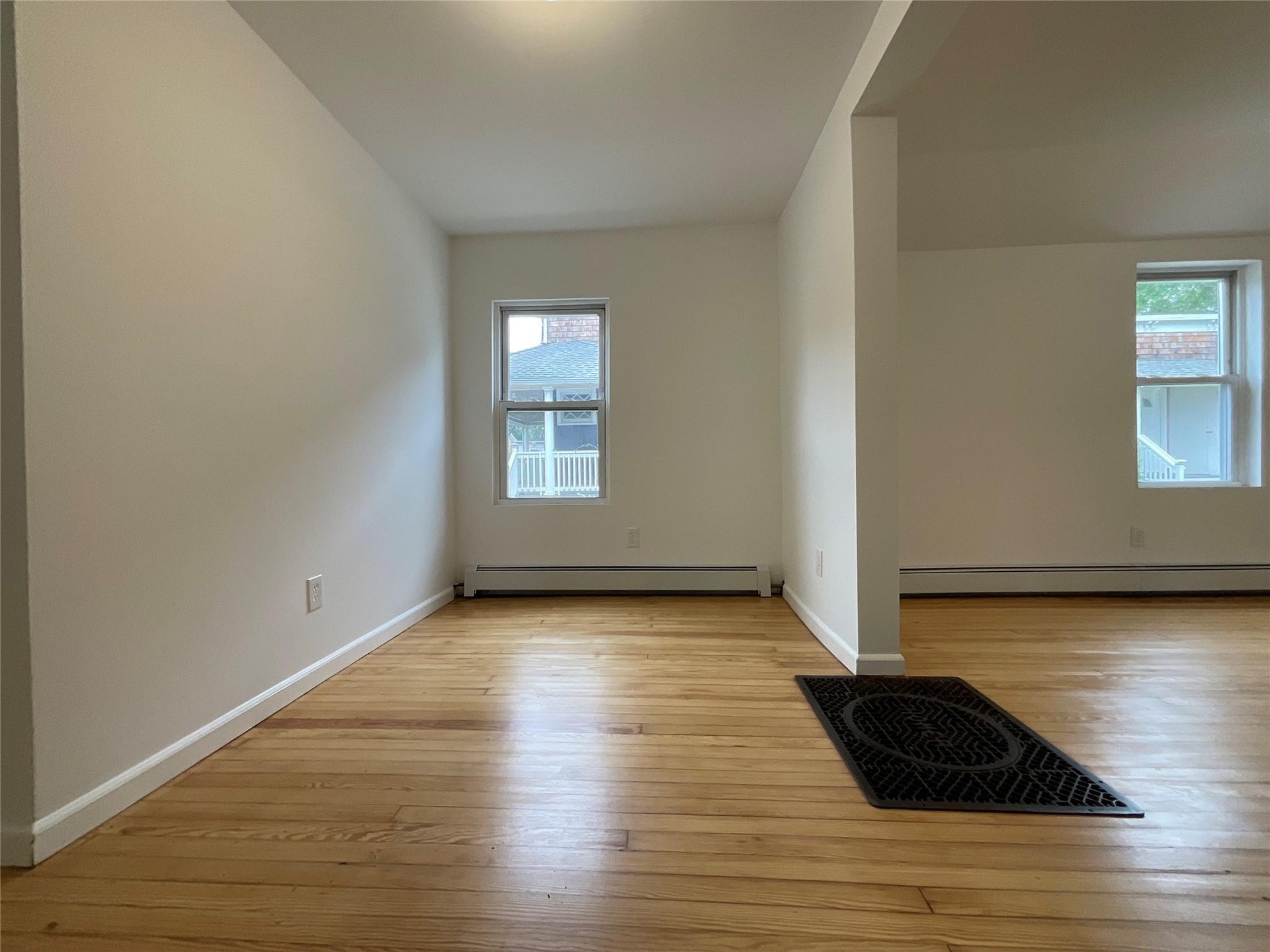 - Spare room with a baseboard radiator, light wood-type flooring, and baseboards