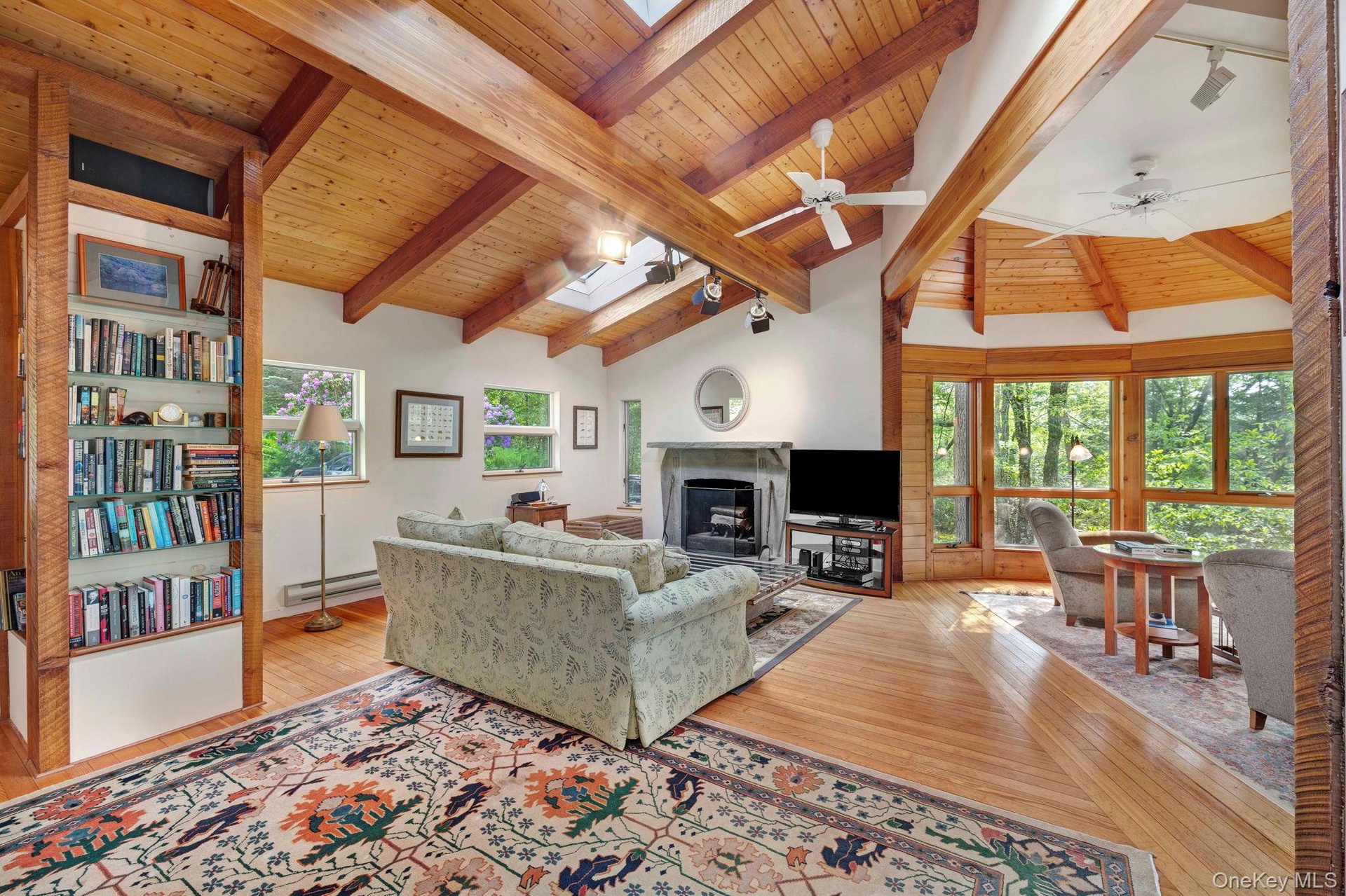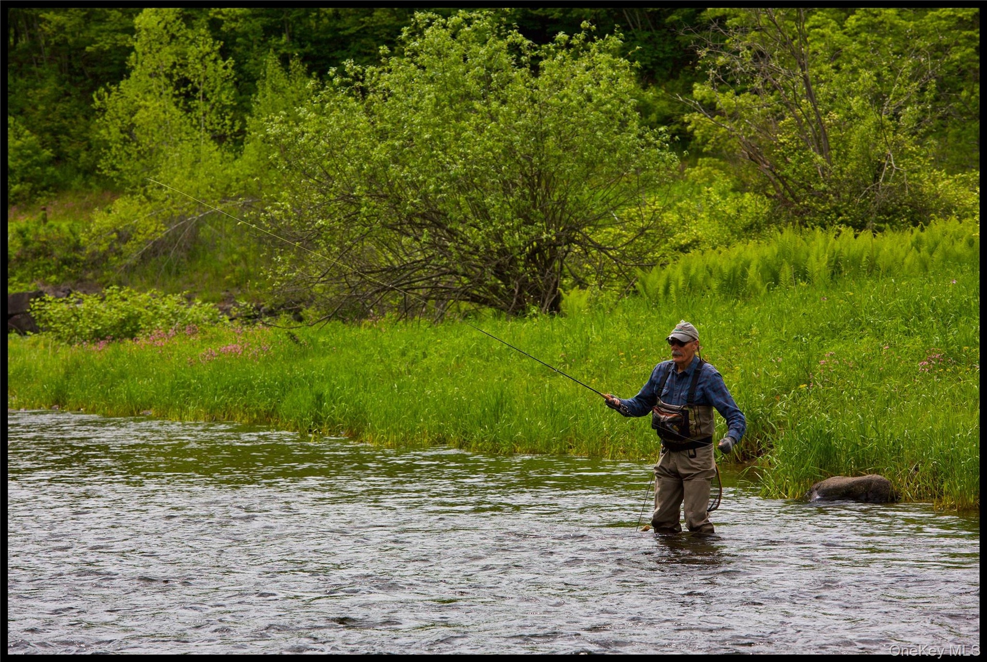 Willowemoc Lodge – A World-Class Trout Fishing Estate on the Willowemoc River. A once-in-a-generation opportunity awaits in the heart of the southern Catskills: welcome to Willowemoc Lodge, an extraordinary 21.6-acre estate boasting an unrivaled 2,500 feet of private frontage along the fame d Willowemoc River—one of the most iconic and celebrated fly fishing destinations in the Northeast. Whether you're a seasoned angler or a nature lover seeking a rare retreat, this property is a dream realized. Own a section of river that others only dream of fishing, with wild trout rising in your backyard. Private river access of this magnitude is virtually unheard of—making this a true trophy property and the envy of the Catskills. Connected by a custom-designed one-car bridge that spans your private stretch of river, the estate rises into the mountains where a spectacular lodge-style home and multiple outbuildings await. The main residence features new roof 2025, new skylights 2025, gleaming hardwood floors throughout, a dramatic beamed ceiling, an oversized stone fireplace, and a wood-burning stove, all capturing the warmth and grandeur of mountain living. Walls of windows overlook the river, flooding the interior with natural light and panoramic views. Two expansive levels of decking invite you to relax, entertain, and soak in the sounds of the river below. For the ultimate in relaxation, the home also features a private sauna.The land itself is bursting with natural beauty—lush perennial gardens, wild blackberry bushes, and vibrant seasonal flowers surround you, offering year-round color and privacy. Additional structures include a charming guest house, a cozy guest shed, a garage, and a fully equipped workshop, (shop equipment not included) offering versatile space for hosting, creative pursuits, or storage. These outbuildings not only enhance the property’s functionality but also present incredible potential for short-term rental income. Whether you envision a private family compound or a boutique Airbnb retreat for fly fishing enthusiasts and outdoor adventurers, the estate is perfectly suited for both personal enjoyment and revenue generation. Rarely does a property of this scale, beauty, and exclusivity come to market. With its unmatched river access, rustic luxury, and boundless possibilities, Willowemoc Lodge is more than a home—it’s a legacy.