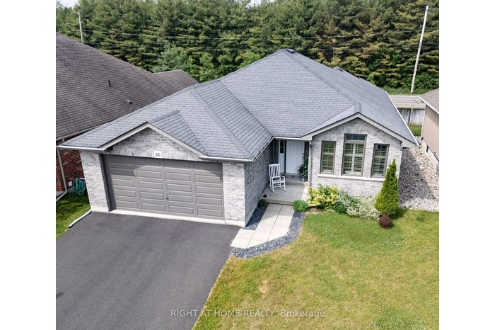DescriptionWelcome to 26 Ward Drive in beautiful Brighton, Ontario. This 10-year-old all-brick bungalow offers a bright, open-concept layout. The kitchen features abundant cabinetry, stainless steel appliances, and a large breakfast bar. Cathedral ceilings and pot lights enhance the spacious living room, while the dining area opens through French doors to a covered deck overlooking a fenced backyard with no houses behind and a natural gas BBQ hookup. The primary bedroom includes a 4-piece ensuite and walk-in closet. A second bedroom, 4-piece main bath, and an office/sitting room or potential third bedroom complete the main floor. The full basement features insulated and studded walls, ready for your finishing touch. Located in a quiet, friendly neighbourhood steps to the lake and near Presquile Provincial Park with its walking trails and bike paths is an ideal place to relax, unwind and call home. **This home is not part of the Brighton By The Bay Community so Is not bound by its restrictions, by-laws, rules and regulations or monthly fees**Amenities- Air Exchanger
