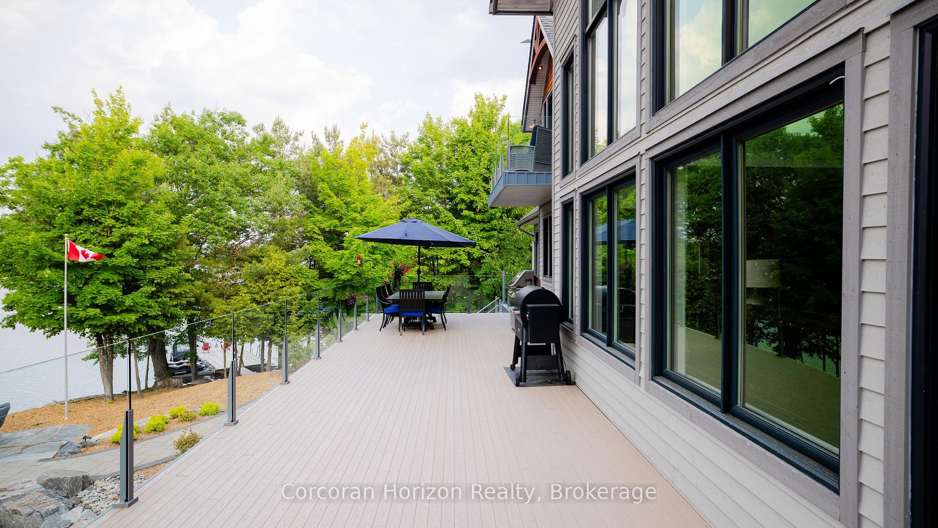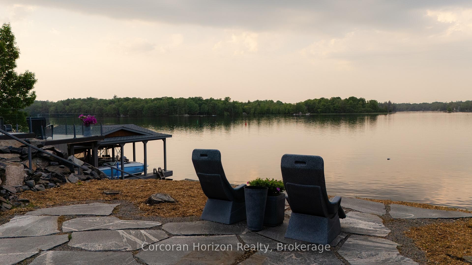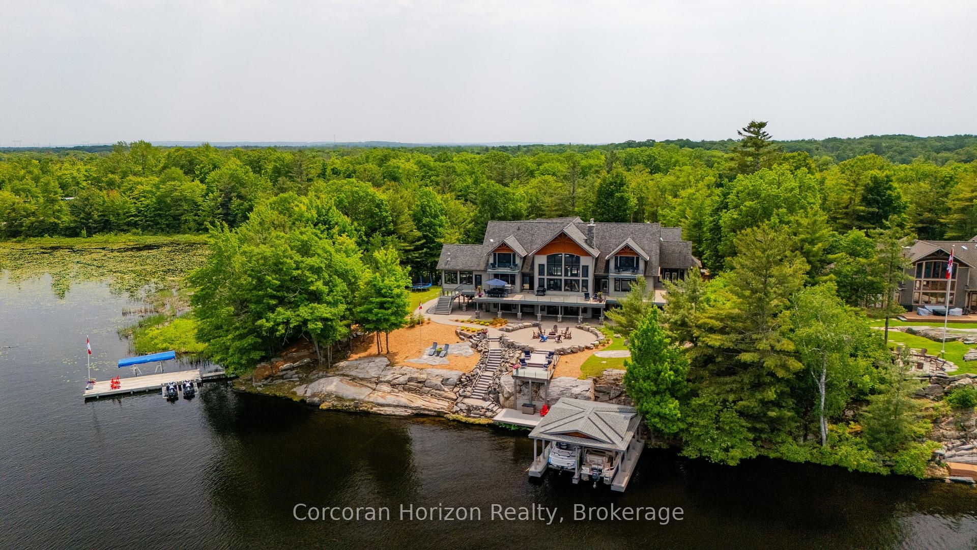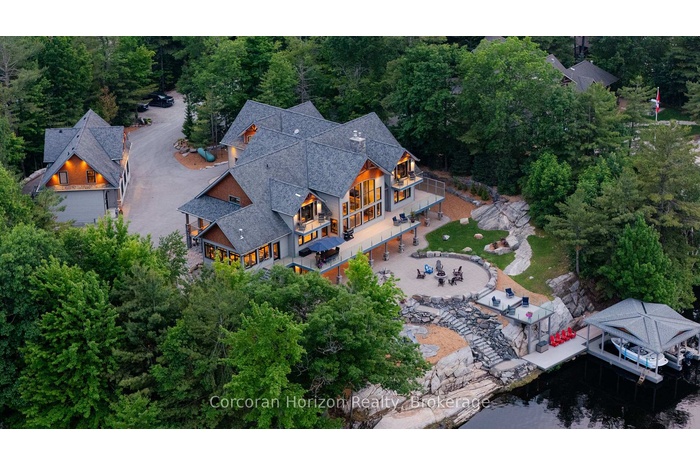 Welcome to the crown jewel of Ontario's world-renowned cottage country an exquisite combination of 10,000+ sq. ft. custom-built estate retreat perched on the exclusive southeast tip of Pilkington Island, one of only five estate lots with rare year-round road access and just 90 minutes from Toronto, minutes off Highway 400. This private peninsula offers over 550+ feet of pristine shoreline on Gloucester Pool, part of the historic Trent-Severn Waterway, featuring deep, clean water ideal for endless boating, swimming, and waterfront relaxation. A rare double-slip steel boat port, separate floating dock, and breathtaking panoramic views ensure every sunset is unforgettable. Inside, luxury abounds with a grand Great Room and floor-to-ceiling granite fireplace, a formal dining room for 16, a gourmet kitchen with professional appliances and walk-in pantry, a serene Muskoka Room, a main-floor Master and VIP suite, four upper-level bedroom suites with a loft and kids den, plus a walk-out lower level with two additional suites, granite fireplace, wet bar, games and exercise rooms. The estate also includes an oversized attached double garage, a detached garage with a nanny/in-law suite above, newly paved driveway, and fresh landscaping the ultimate blend of exclusivity, elegance, and the cottage lifestyle.