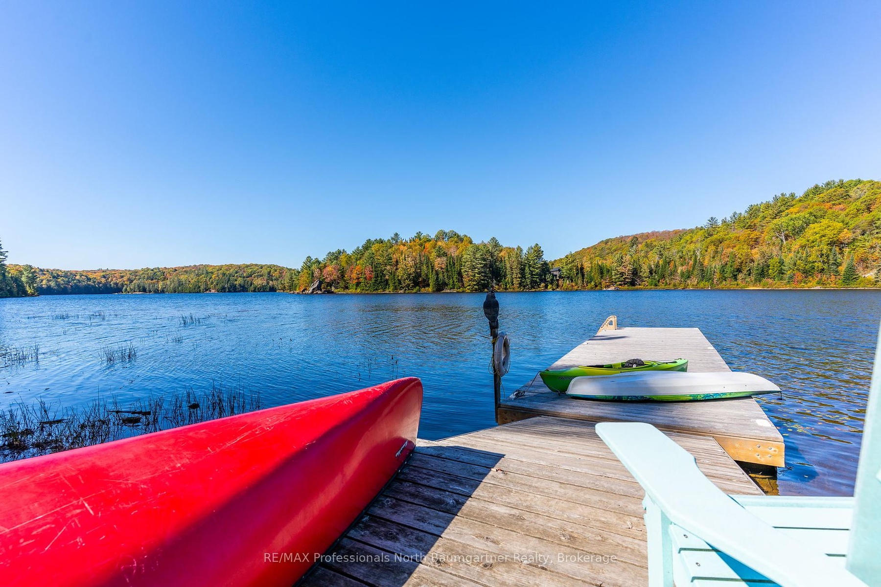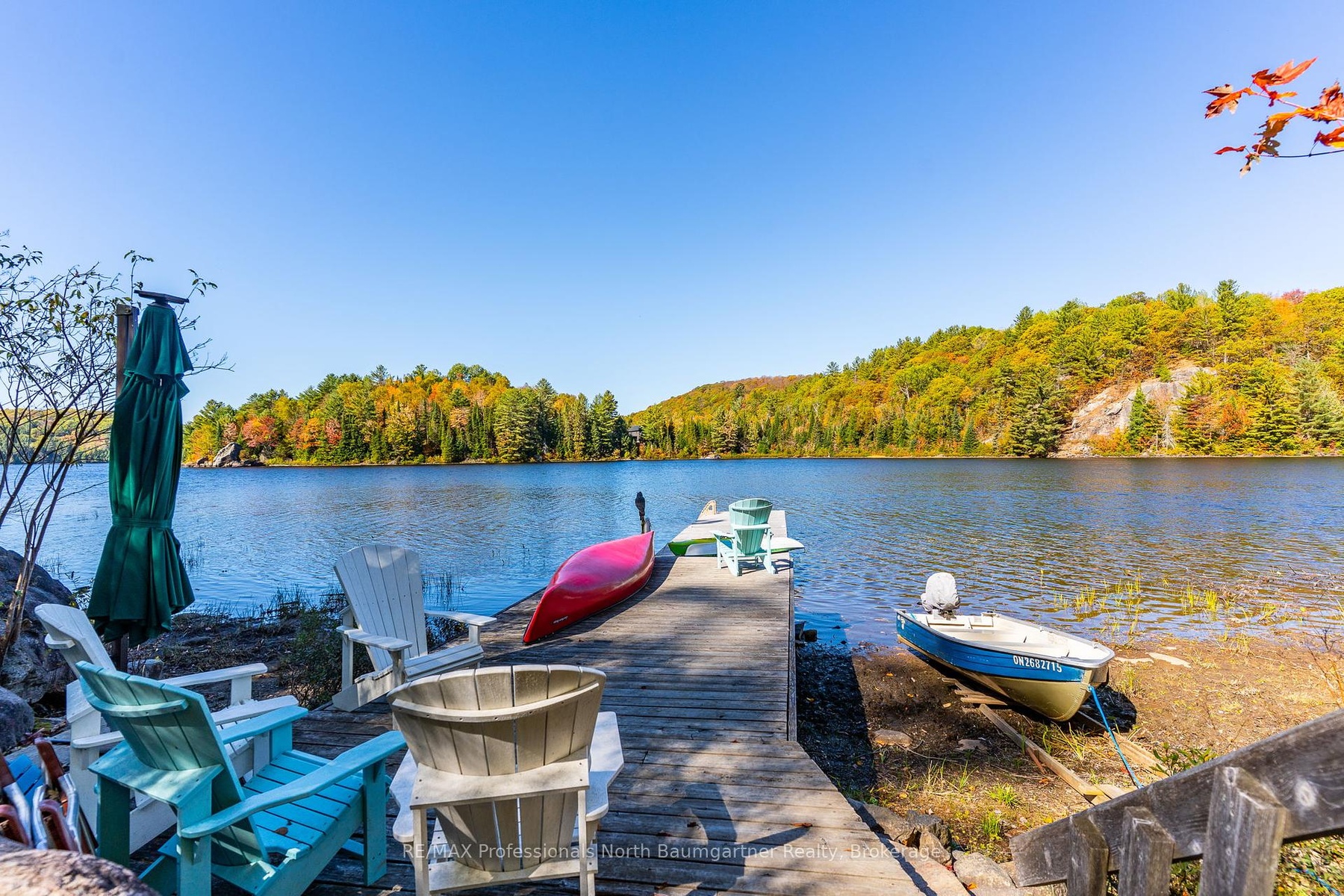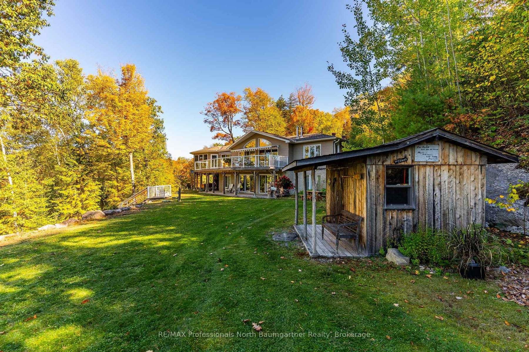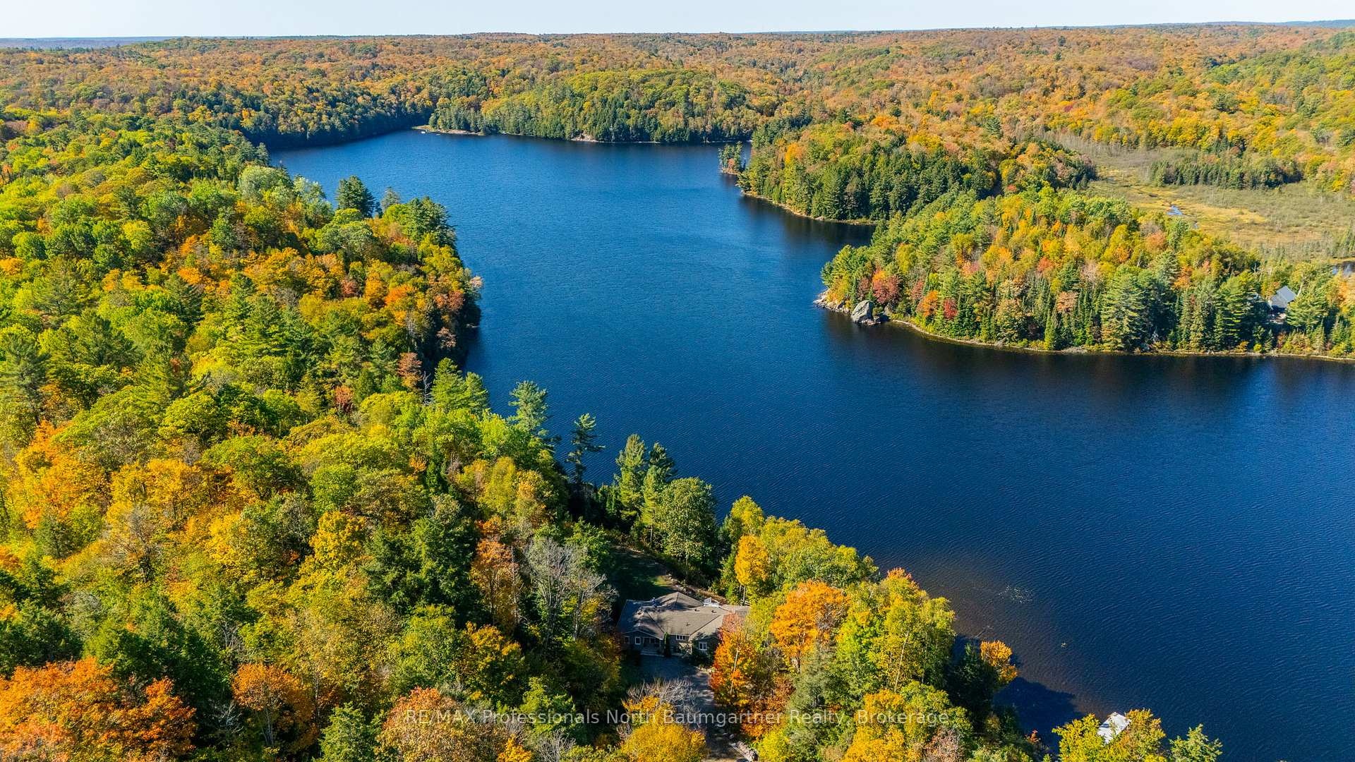 Imagine owning 3500 sq ft of living space on 45.53 acres of Haliburton Forest and 520 ft of water frontage. Wake each morning to the whisper of wind through towering trees and Growler Lakes mirror surface reflecting the morning light. This isn't just a cottage; it's your gateway to life at nature's pace, where every sunset paints the sky. Wildlife roams freely and mature trees stand guard. Autumn brings crimson and gold, winter creates a snow-covered wonderland, spring awakens with birdsong, and summer invites lake adventures. Currently under a Managed Forest Plan, this land can be your legacy. The lake is ideal for morning swims, afternoon paddle boarding, and evening kayaking. The substantial 40-foot dock is perfect for diving, fishing, or simply enjoying coffee while loons call across the water. The thoughtful layout of this 5-bedroom, 4-bathroom home balances comfort with connection. A great room anchors each level. The open-concept kitchen features quartz countertops and backsplash, with breakfast bar seating. A window-walled 3 season porch captures views of natural surroundings and serves as alternative dining space. Each bedroom is generously sized, offering personal retreats. Two 44-foot lake-facing decks create multiple outdoor living areas. The upper deck features glass paneling and an electric awning and the lower one stays naturally shaded, perfect for escaping summer heat. An Opel low-emission fireplace and Napoleon wood stove provide warmth and ambiance. The west-facing orientation delivers spectacular sunsets every day so you can watch the sky transform from blue to pink to orange to purple, painting the lake in changing colors for your own private daily show. This isn't just a cottage; it's the setting for the life you want to live. Host memorable gatherings, create family traditions, and discover the peace that comes with owning a piece of paradise. Your escape is waiting. Welcome home to Growler Lake.