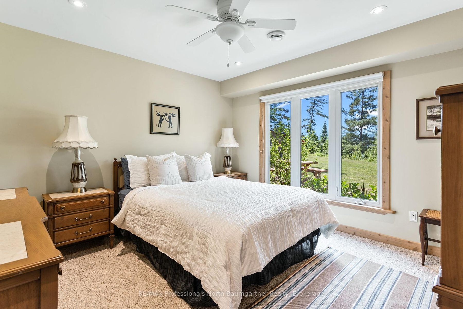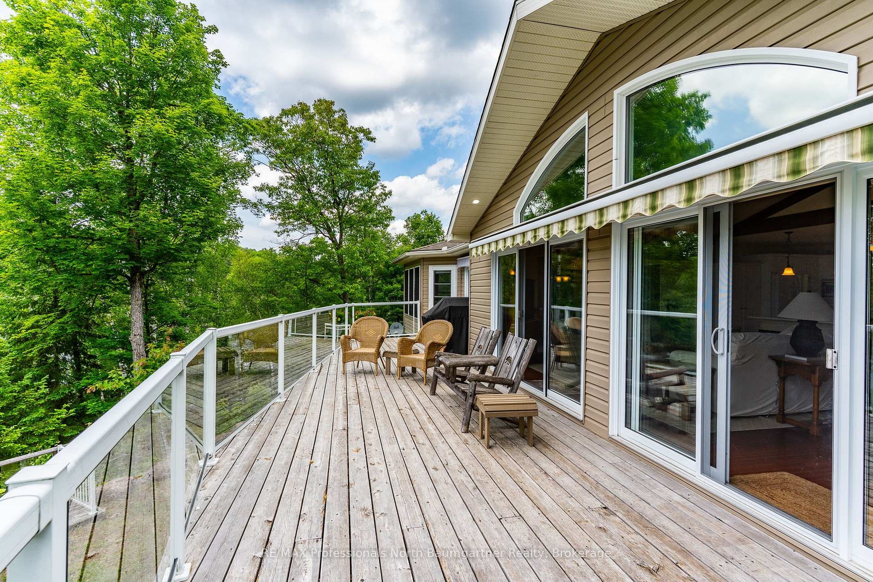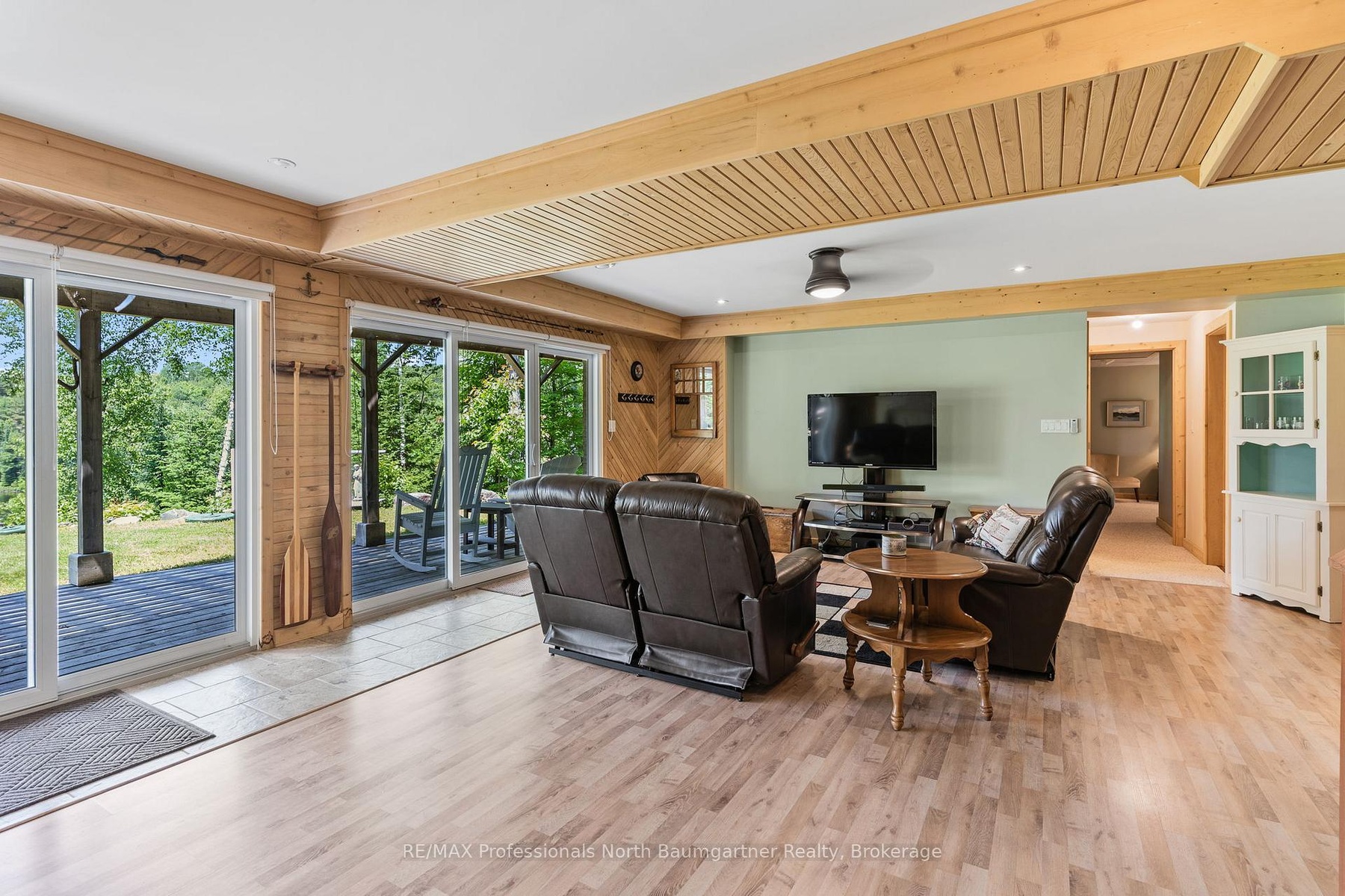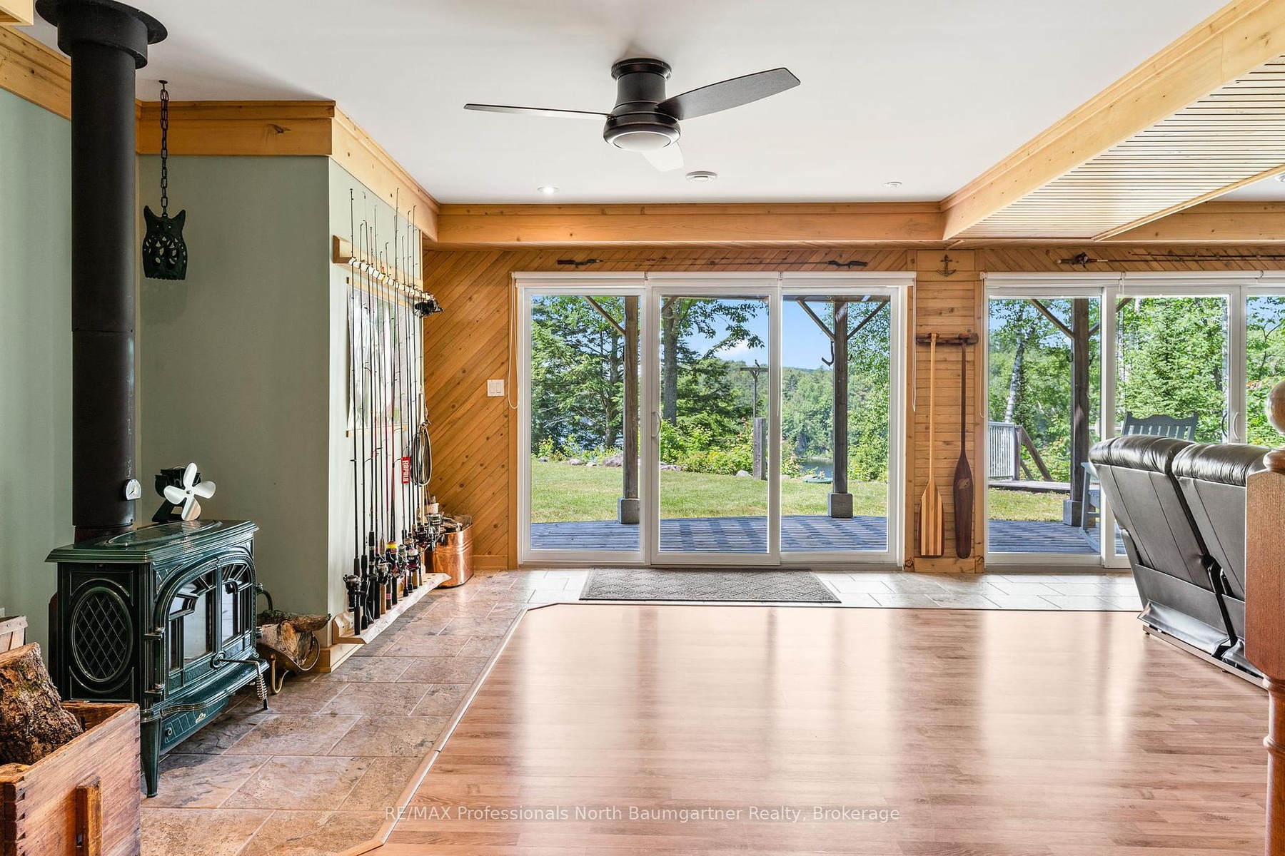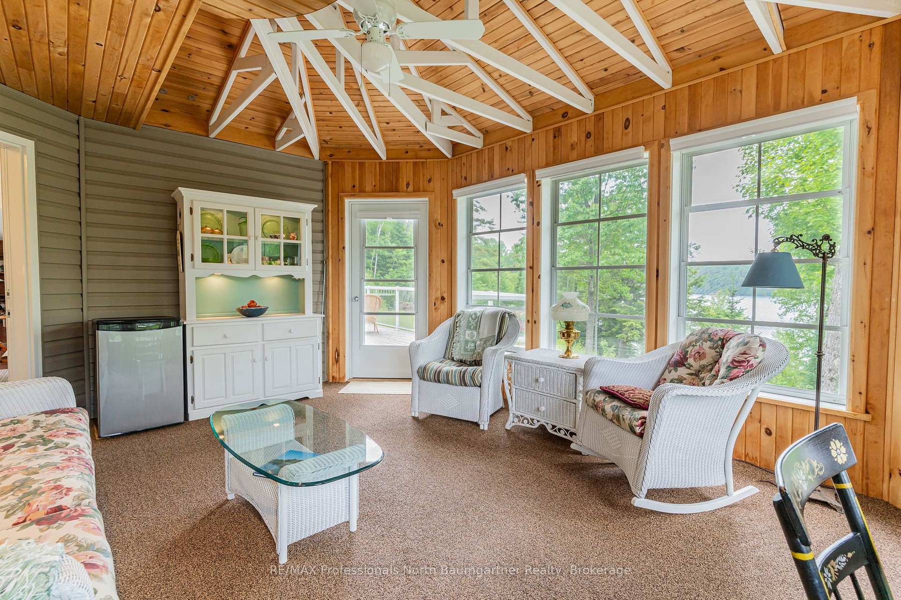 Imagine owning 3500 sq ft of living space on 45.53 acres of Haliburton Forest and 520 ft of water frontage. Wake each morning to the whisper of wind through towering trees and Growler Lakes mirror surface reflecting the morning light. This isn't just a cottage; it's your gateway to life at nature's pace, where every sunset paints the sky. Wildlife roams freely and mature trees stand guard. Autumn brings crimson and gold, winter creates a snow-covered wonderland, spring awakens with birdsong, and summer invites lake adventures. Currently under a Managed Forest Plan, this land can be your legacy. The lake is ideal for morning swims, afternoon paddle boarding, and evening kayaking. The substantial 40-foot dock is perfect for diving, fishing, or simply enjoying coffee while loons call across the water. The thoughtful layout of this 5-bedroom, 4-bathroom home balances comfort with connection. A great room anchors each level. The open-concept kitchen features quartz countertops and backsplash, with breakfast bar seating. A window-walled 3 season porch captures views of natural surroundings and serves as alternative dining space. Each bedroom is generously sized, offering personal retreats. Two 44-foot lake-facing decks create multiple outdoor living areas. The upper deck features glass paneling and an electric awning and the lower one stays naturally shaded, perfect for escaping summer heat. An Opel low-emission fireplace and Napoleon wood stove provide warmth and ambiance. The west-facing orientation delivers spectacular sunsets every day so you can watch the sky transform from blue to pink to orange to purple, painting the lake in changing colors for your own private daily show. This isn't just a cottage; it's the setting for the life you want to live. Host memorable gatherings, create family traditions, and discover the peace that comes with owning a piece of paradise. Your escape is waiting. Welcome home to Growler Lake.