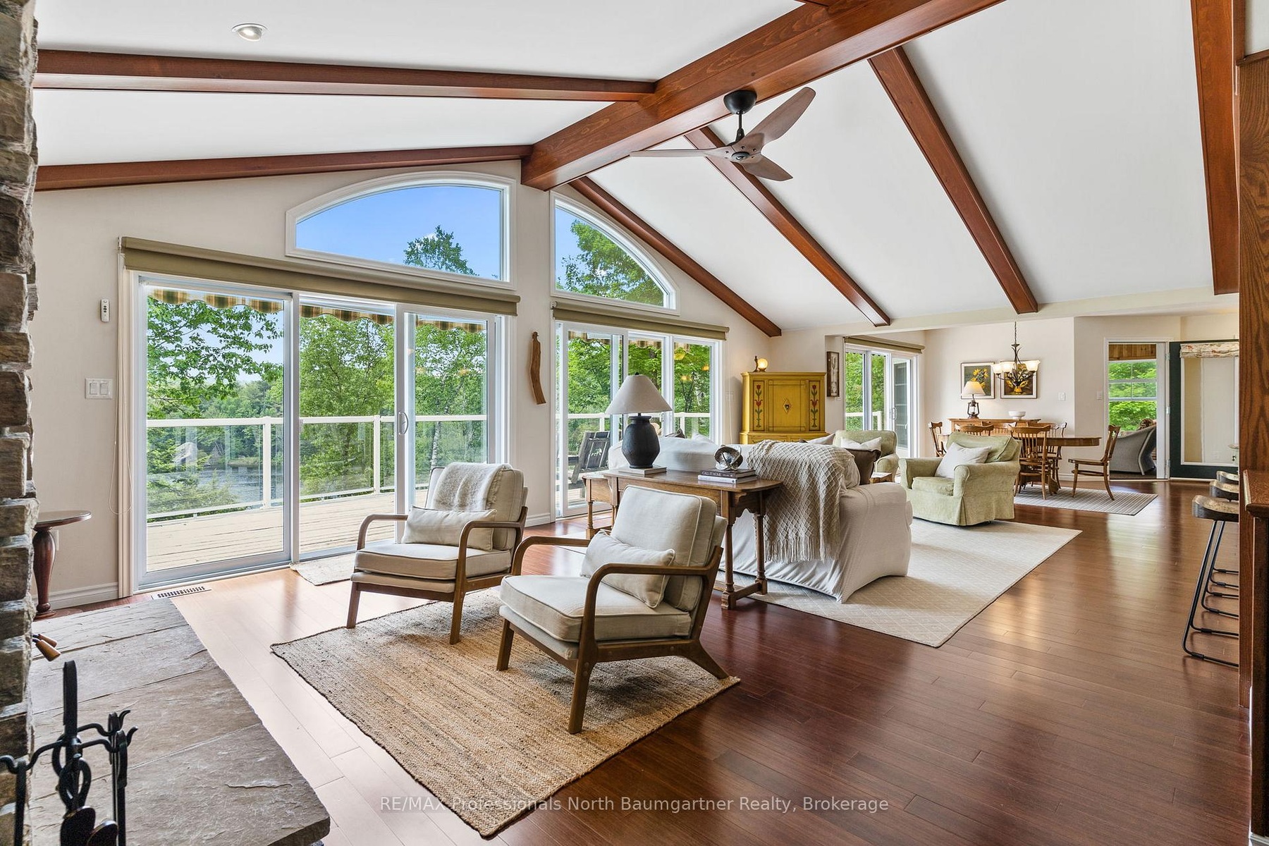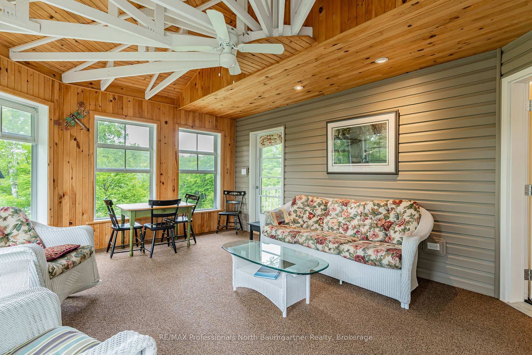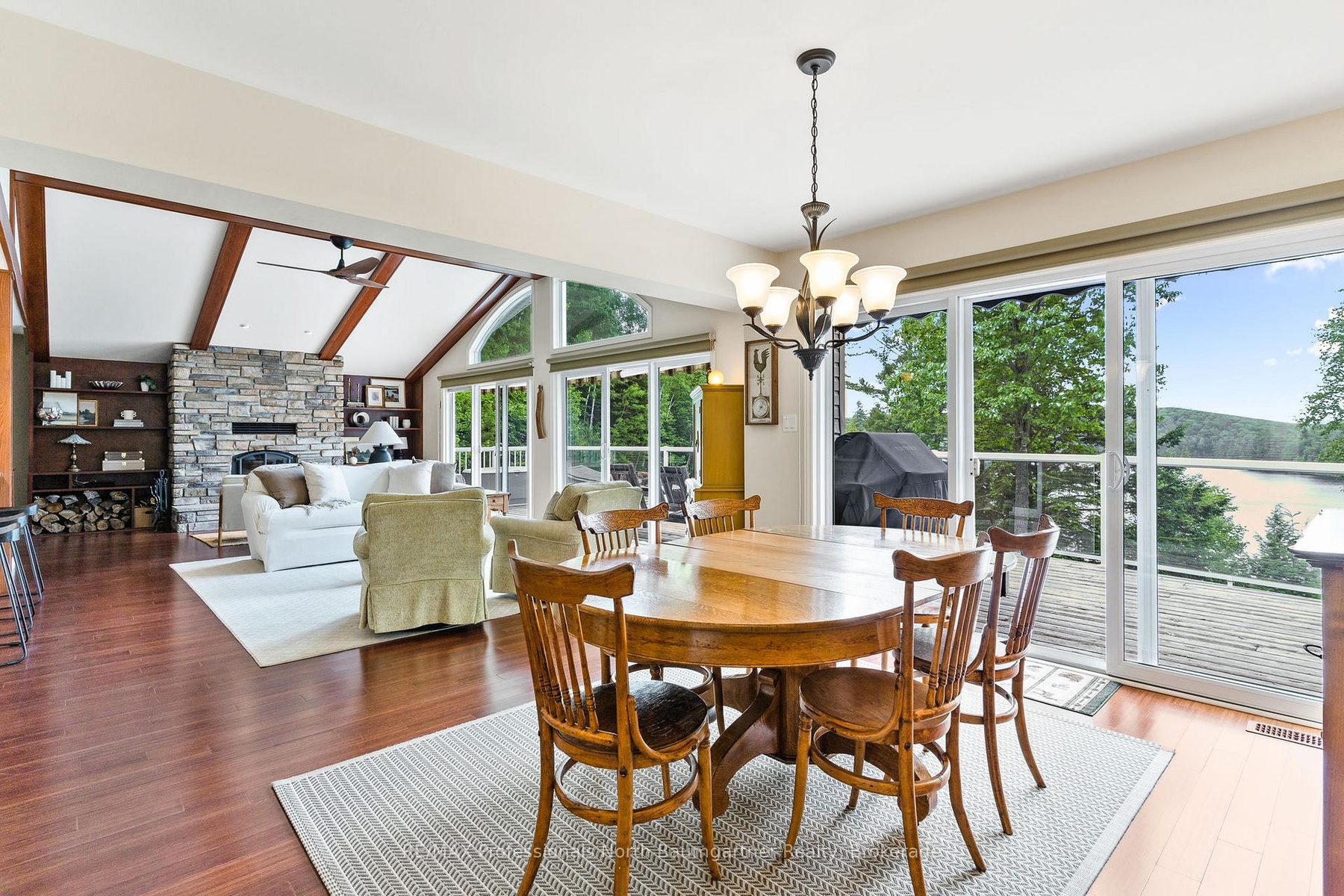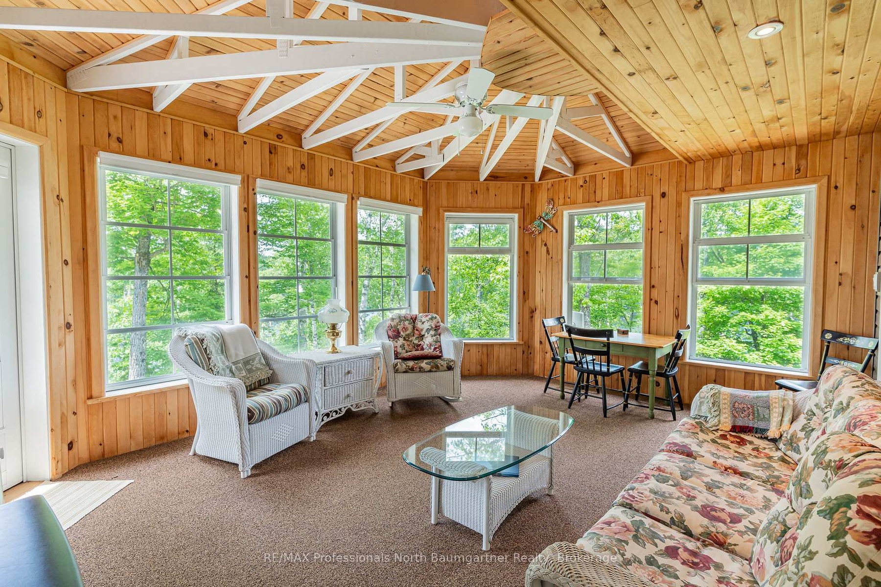 Imagine owning 3500 sq ft of living space on 45.53 acres of Haliburton Forest and 520 ft of water frontage. Wake each morning to the whisper of wind through towering trees and Growler Lakes mirror surface reflecting the morning light. This isn't just a cottage; it's your gateway to life at nature's pace, where every sunset paints the sky. Wildlife roams freely and mature trees stand guard. Autumn brings crimson and gold, winter creates a snow-covered wonderland, spring awakens with birdsong, and summer invites lake adventures. Currently under a Managed Forest Plan, this land can be your legacy. The lake is ideal for morning swims, afternoon paddle boarding, and evening kayaking. The substantial 40-foot dock is perfect for diving, fishing, or simply enjoying coffee while loons call across the water. The thoughtful layout of this 5-bedroom, 4-bathroom home balances comfort with connection. A great room anchors each level. The open-concept kitchen features quartz countertops and backsplash, with breakfast bar seating. A window-walled 3 season porch captures views of natural surroundings and serves as alternative dining space. Each bedroom is generously sized, offering personal retreats. Two 44-foot lake-facing decks create multiple outdoor living areas. The upper deck features glass paneling and an electric awning and the lower one stays naturally shaded, perfect for escaping summer heat. An Opel low-emission fireplace and Napoleon wood stove provide warmth and ambiance. The west-facing orientation delivers spectacular sunsets every day so you can watch the sky transform from blue to pink to orange to purple, painting the lake in changing colors for your own private daily show. This isn't just a cottage; it's the setting for the life you want to live. Host memorable gatherings, create family traditions, and discover the peace that comes with owning a piece of paradise. Your escape is waiting. Welcome home to Growler Lake.