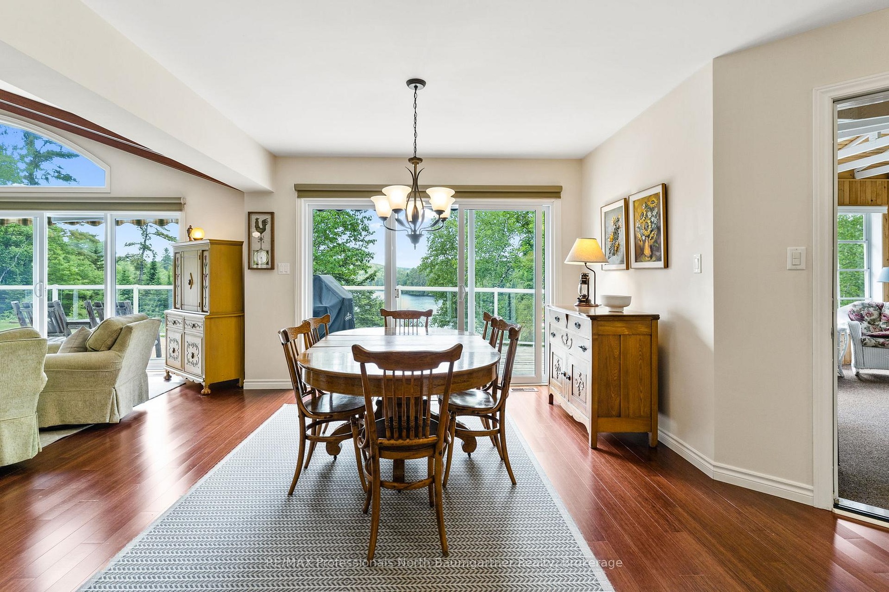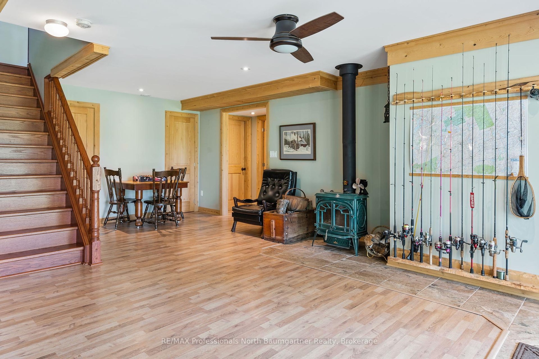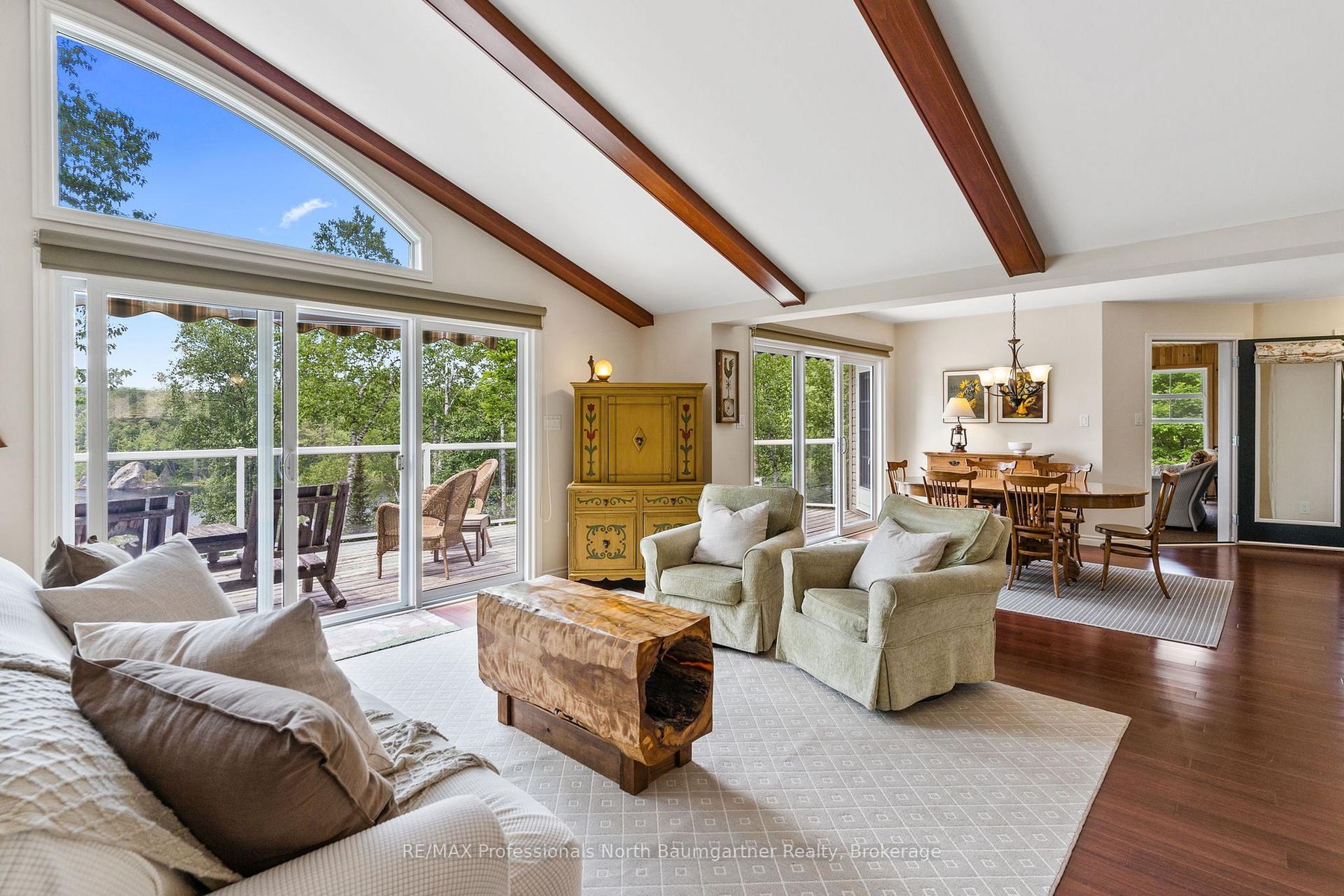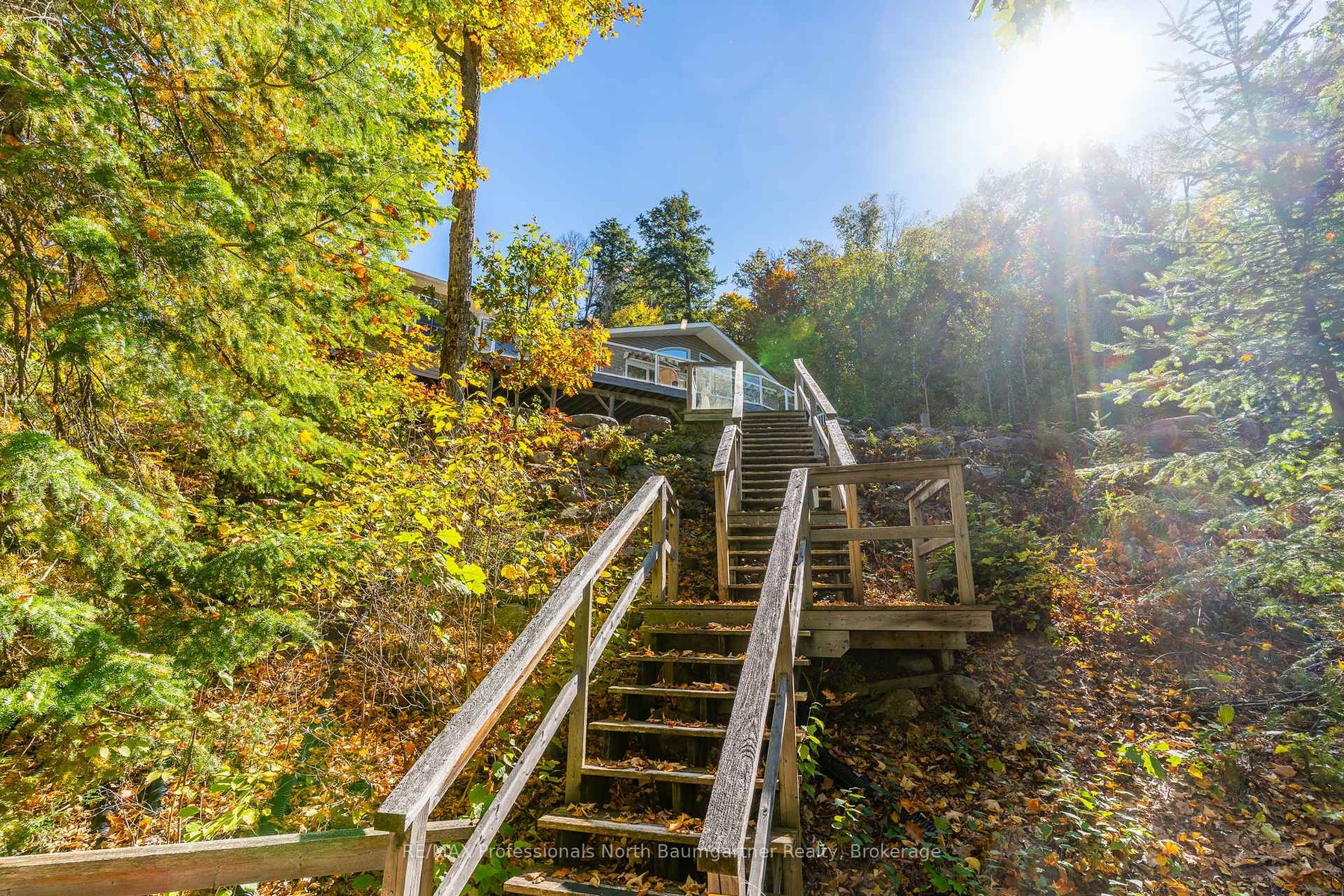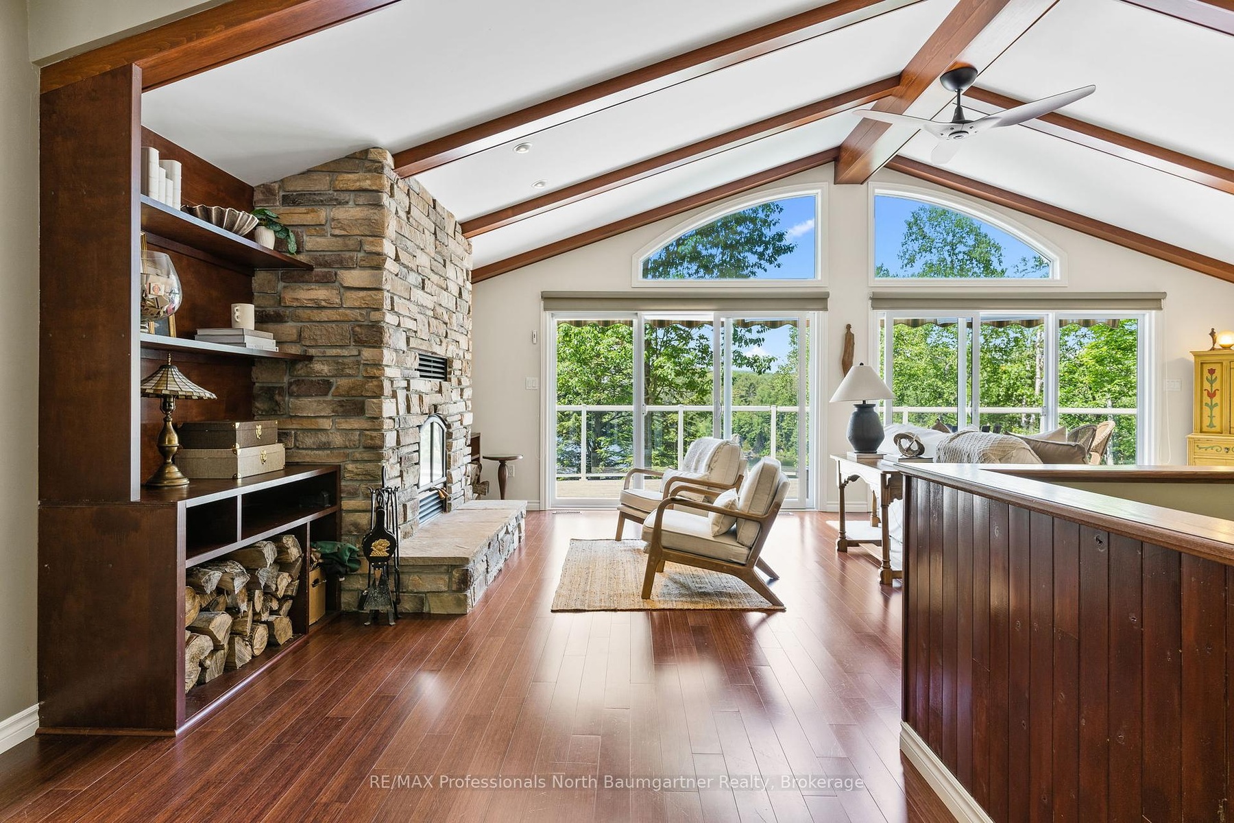 Imagine owning 3500 sq ft of living space on 45.53 acres of Haliburton Forest and 520 ft of water frontage. Wake each morning to the whisper of wind through towering trees and Growler Lakes mirror surface reflecting the morning light. This isn't just a cottage; it's your gateway to life at nature's pace, where every sunset paints the sky. Wildlife roams freely and mature trees stand guard. Autumn brings crimson and gold, winter creates a snow-covered wonderland, spring awakens with birdsong, and summer invites lake adventures. Currently under a Managed Forest Plan, this land can be your legacy. The lake is ideal for morning swims, afternoon paddle boarding, and evening kayaking. The substantial 40-foot dock is perfect for diving, fishing, or simply enjoying coffee while loons call across the water. The thoughtful layout of this 5-bedroom, 4-bathroom home balances comfort with connection. A great room anchors each level. The open-concept kitchen features quartz countertops and backsplash, with breakfast bar seating. A window-walled 3 season porch captures views of natural surroundings and serves as alternative dining space. Each bedroom is generously sized, offering personal retreats. Two 44-foot lake-facing decks create multiple outdoor living areas. The upper deck features glass paneling and an electric awning and the lower one stays naturally shaded, perfect for escaping summer heat. An Opel low-emission fireplace and Napoleon wood stove provide warmth and ambiance. The west-facing orientation delivers spectacular sunsets every day so you can watch the sky transform from blue to pink to orange to purple, painting the lake in changing colors for your own private daily show. This isn't just a cottage; it's the setting for the life you want to live. Host memorable gatherings, create family traditions, and discover the peace that comes with owning a piece of paradise. Your escape is waiting. Welcome home to Growler Lake.
