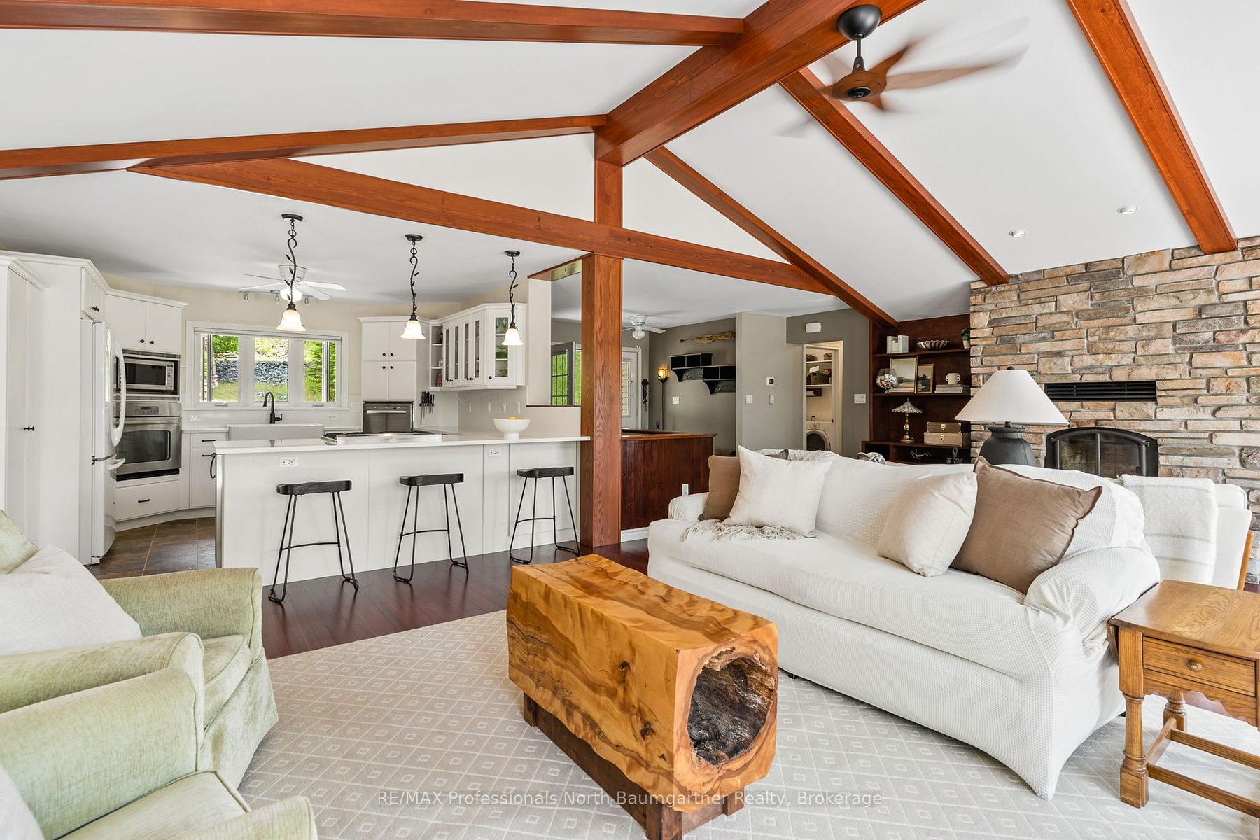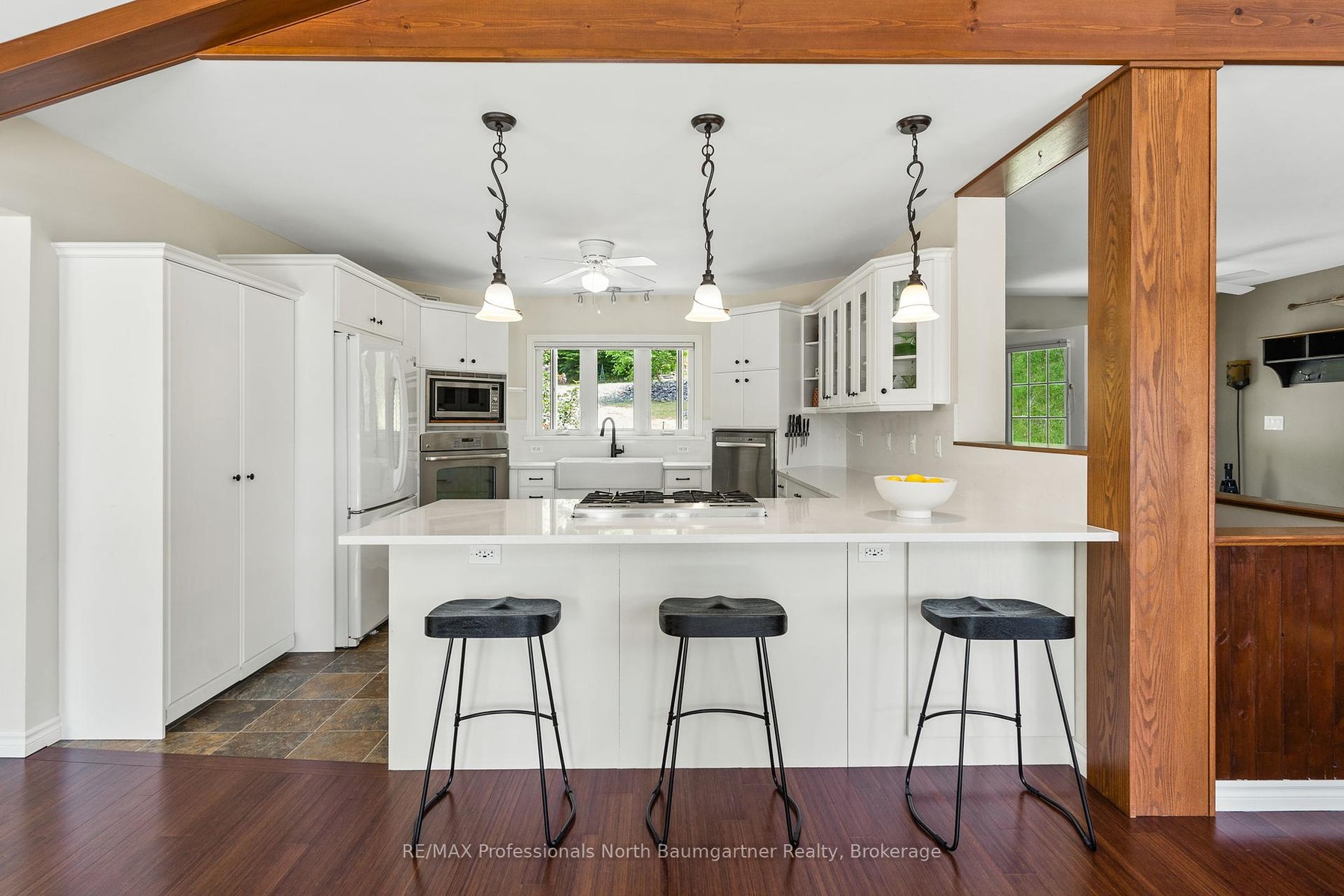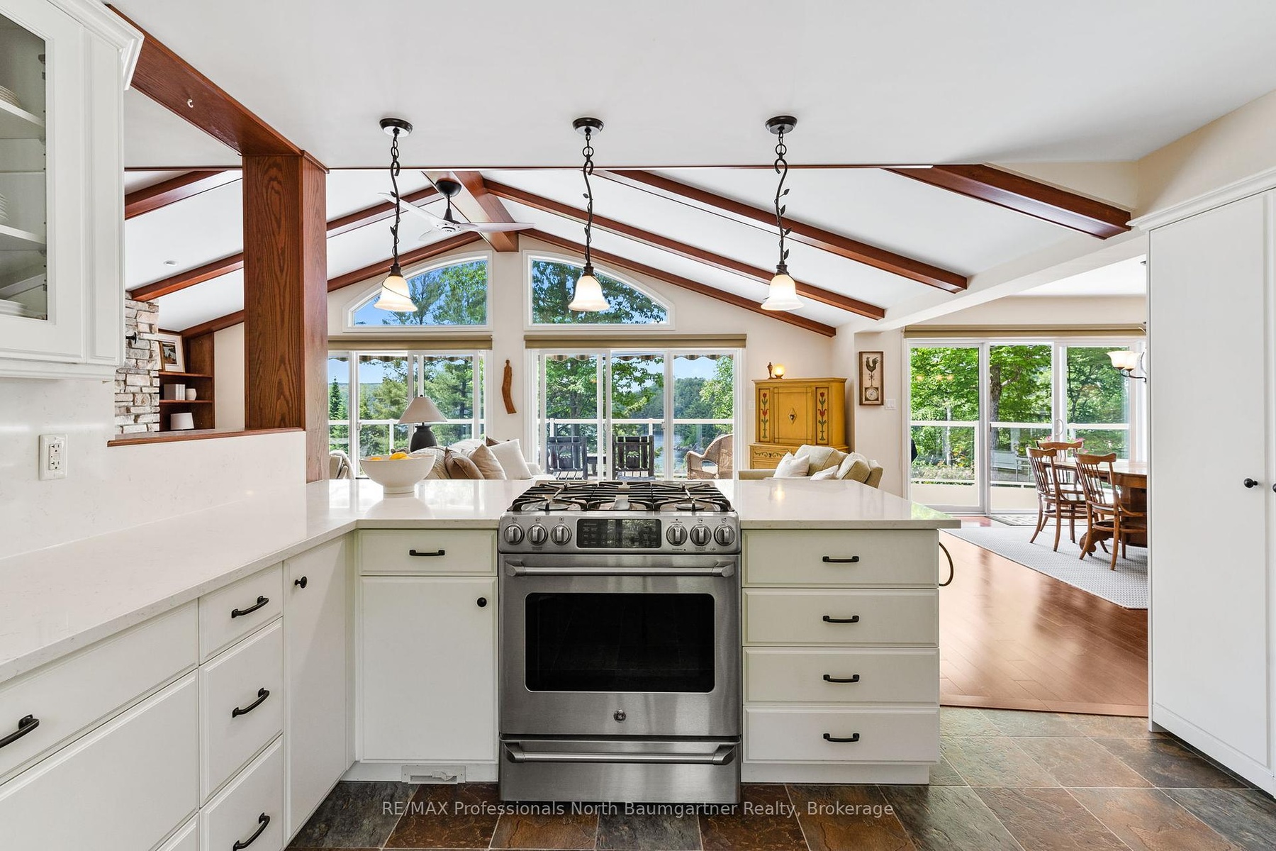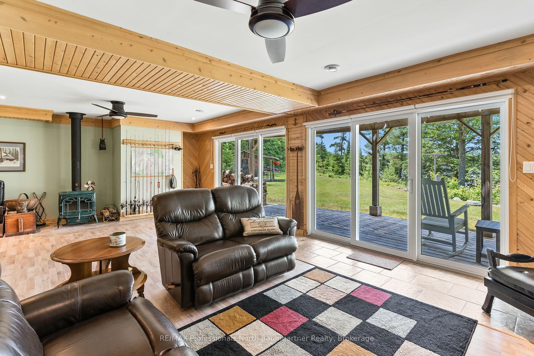 Imagine owning 3500 sq ft of living space on 45.53 acres of Haliburton Forest and 520 ft of water frontage. Wake each morning to the whisper of wind through towering trees and Growler Lakes mirror surface reflecting the morning light. This isn't just a cottage; it's your gateway to life at nature's pace, where every sunset paints the sky. Wildlife roams freely and mature trees stand guard. Autumn brings crimson and gold, winter creates a snow-covered wonderland, spring awakens with birdsong, and summer invites lake adventures. Currently under a Managed Forest Plan, this land can be your legacy. The lake is ideal for morning swims, afternoon paddle boarding, and evening kayaking. The substantial 40-foot dock is perfect for diving, fishing, or simply enjoying coffee while loons call across the water. The thoughtful layout of this 5-bedroom, 4-bathroom home balances comfort with connection. A great room anchors each level. The open-concept kitchen features quartz countertops and backsplash, with breakfast bar seating. A window-walled 3 season porch captures views of natural surroundings and serves as alternative dining space. Each bedroom is generously sized, offering personal retreats. Two 44-foot lake-facing decks create multiple outdoor living areas. The upper deck features glass paneling and an electric awning and the lower one stays naturally shaded, perfect for escaping summer heat. An Opel low-emission fireplace and Napoleon wood stove provide warmth and ambiance. The west-facing orientation delivers spectacular sunsets every day so you can watch the sky transform from blue to pink to orange to purple, painting the lake in changing colors for your own private daily show. This isn't just a cottage; it's the setting for the life you want to live. Host memorable gatherings, create family traditions, and discover the peace that comes with owning a piece of paradise. Your escape is waiting. Welcome home to Growler Lake.