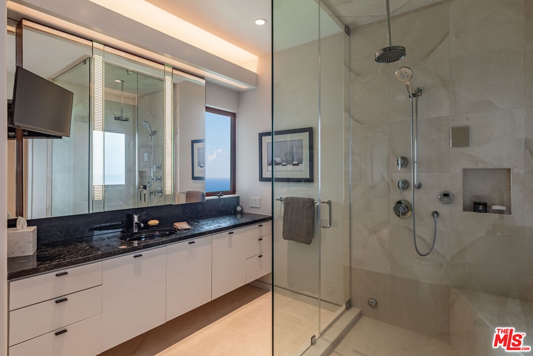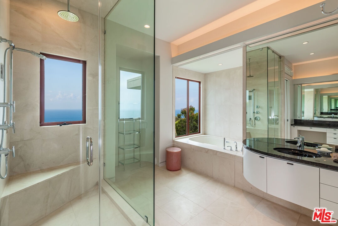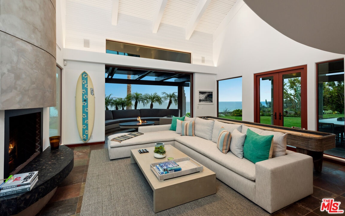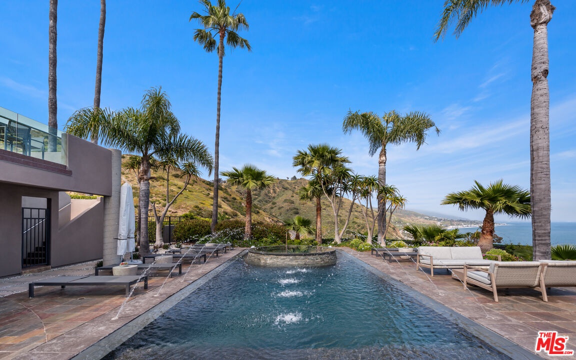 Nestled atop a secluded Malibu bluff, Casa Linda is a masterpiece of architecture with breathtaking whitewater ocean views stretching from Palos Verdes to Point Dume. Designed by Marshall Lewis AIA and meticulously crafted over a decade, with significant updates in 2022, the home harmonizes with its hillside through curved walls and fluid indoor-outdoor spaces. Exquisite details define the interiors, including a soaring formal living room and a chef's kitchen with granite counters and premium Viking/Wolf appliances. A striking ribbon staircase leads to the primary suite, boasting panoramic views of Palos Verdes and Catalina, a kitchenette, three closets, and luxuriously updated dual bathrooms. Upstairs, an ocean-view office with an ensuite bathroom (doubling as a bedroom) and a remarkable gym/yoga studio with its own ensuite bathroom (also a bedroom) enhance the home's versatility. Glass pocket doors open to sprawling grounds featuring a modernized zero-edge pool, a high-end outdoor BBQ kitchen, a pizza oven, a fire pit, an expansive lawn, and lush gardens, creating effortless indoor-outdoor entertaining. Equipped with a wine cellar, elevator, infrared ocean-view sauna, indoor-outdoor Sonos sound system, and a Tesla home battery system, Casa Linda offers a self-sufficient, private paradise. Just minutes from top-tier beaches, schools, shopping, and dining, the property possibly includes a Seller's membership to Sycamore Park Tennis Courts with exclusive gated beach parking access, potentially transferable with the sale. Recent renovations include three new fireplaces, a modernized pool and jacuzzi, new wood floors, and a fully equipped home workout studio. Located near Malibu Lumber Yard, Whole Foods, Country Mart, and Nobu, the home comes beautifully furnished, with furnishings available for purchase. Move-in ready for summer enjoyment, Casa Linda is the ultimate family haven and entertainer's dream.