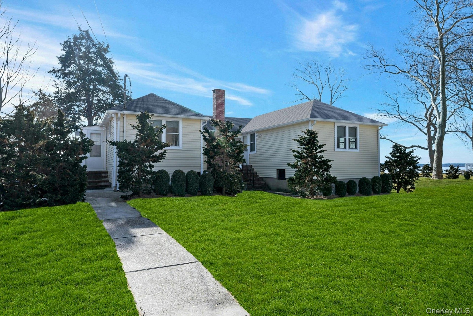 NORTH FORK DIRECT BAY FRONT GEM ON QUIET STREET WITH HIGH ELEVATION AND 115'+ FRONTAGE - Introducing a captivating waterfront property on the Peconic Bay in Jamesport boasting a large lot with over 100 feet of waterfront and direct beach access. This stunning waterfront property is move in ready or a blank canvas waiting for your vision to transform it into an extraordinary masterpiece. Nestled in a prime location, the property boasts expansive views of the water, providing an ever-changing backdrop of natural beauty. With ample space and a versatile floor plan, the possibilities are endless. Envision an open-concept living area with floor to ceiling windows that seamlessly flows to an outdoor deck perfect for entertaining. Picture a beautifully landscaped garden, complete with a fire pit and cozy seating areas, where you can unwind under the stars. This home is a rare gem, with existing architectural charm that can be enhanced with modern finishes and innovative design. The potential for an extraordinary renovation is limited only by your imagination. Whether you dream of a sleek, contemporary style or a cozy coastal retreat, this property is your opportunity to create a home that reflects your unique taste and lifestyle and to own a waterfront property that promises both tranquility and adventure. Don’t miss out on the opportunity to turn this extraordinary vision into reality—schedule a viewing today! Additional features include CAC, public water, in-ground sprinklers and a detached 2-car garage and plenty of space for an in-ground pool. Located in Jamesport, this house offers not only a tranquil waterfront lifestyle but also convenient access to a host of amenities. From charming local shops and restaurants to outdoor recreational activities, there is always something to explore and enjoy. Don't miss out on this amazing opportunity to own a piece of paradise!