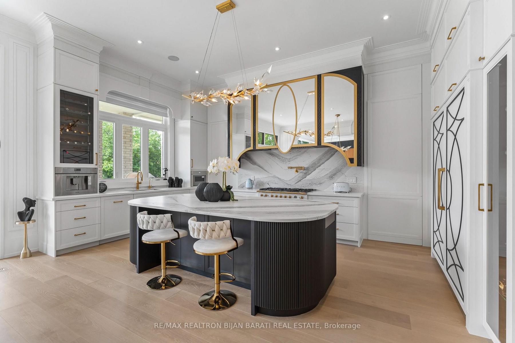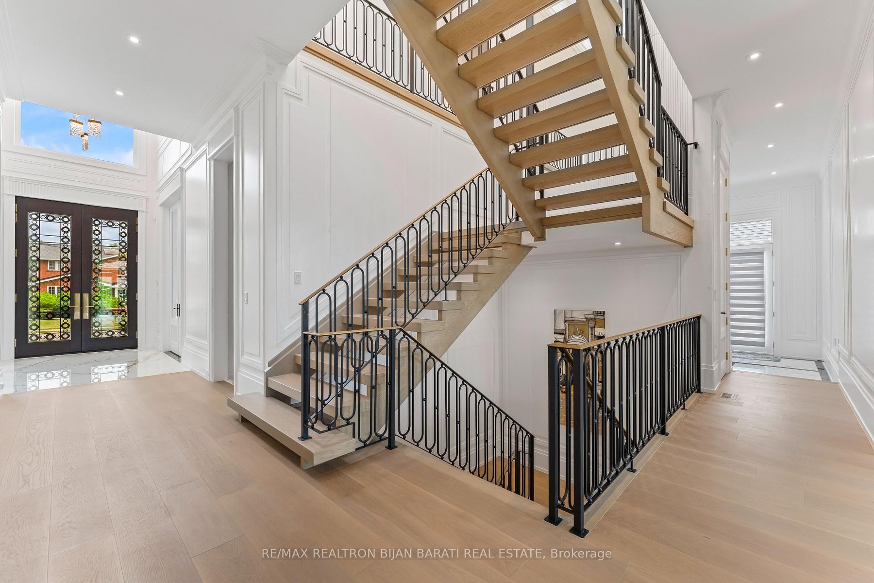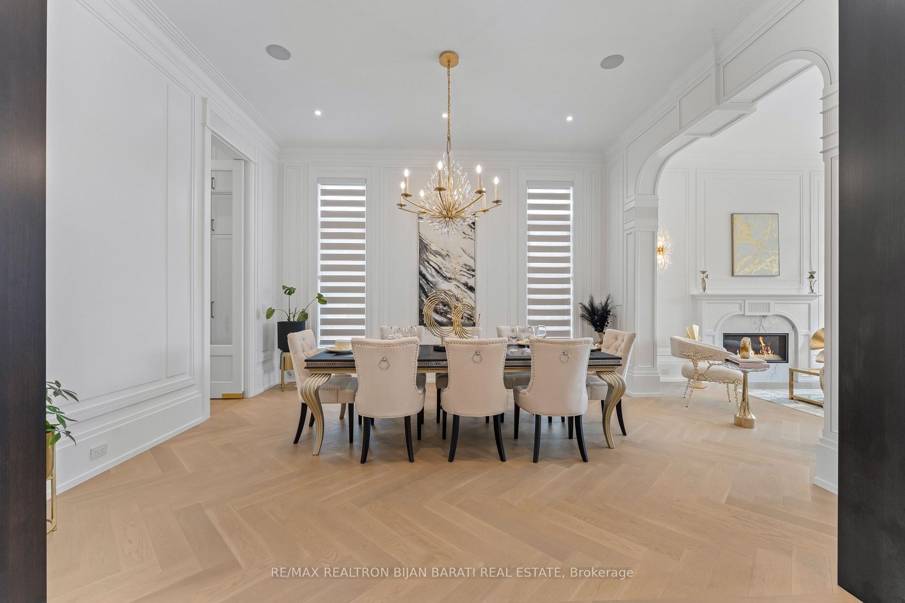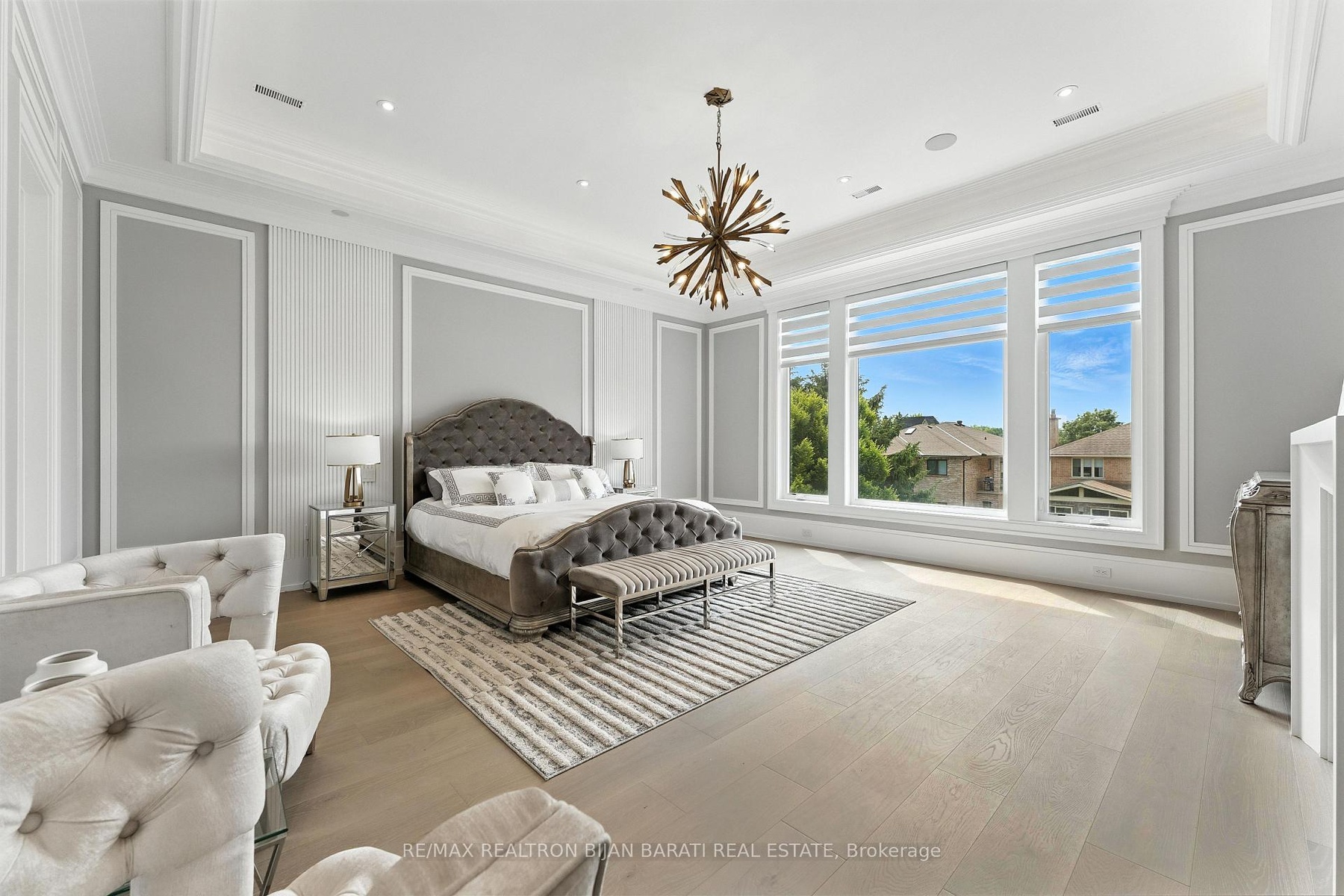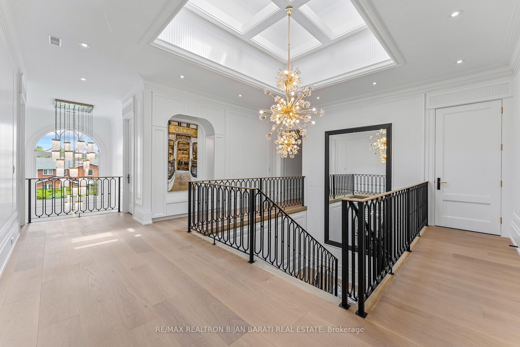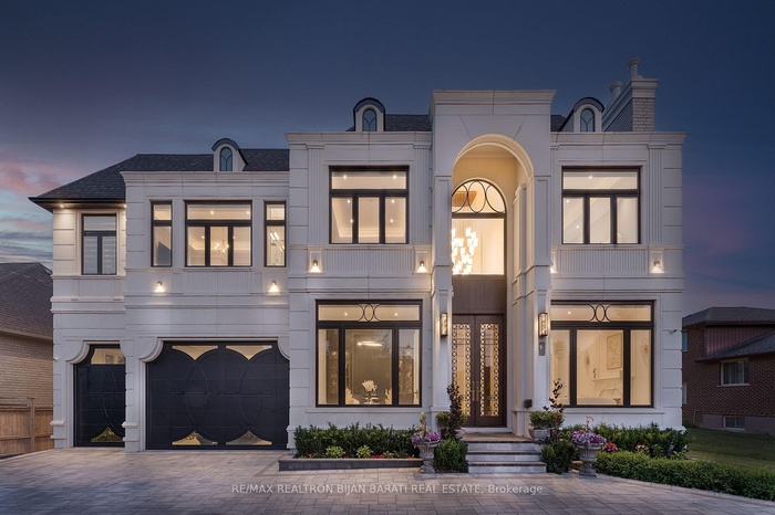 This Architectural Masterpiece Nestled in 75' x 150' with The Utmost Attention to the Exterior&Interior Design! This Distinguished Estate Exudes Timeless Elegance& Contemporary Sophistication Features: The Stately Pre-Cast Façade with Brick in Sides& Back, Complemented by a Rough In Snow-Melted Circular Driveway&Professionally Landscaped Grounds, Creating an Unforgettable First Impression!Oversized Quality Windows ,Soaring Ceiling Heights Flow Seamlessly in Main& Second Flr! A Grand Entrance Welcomes with Double-Height Foyer Adorned with Exquisite Custom Millwork Leads to Open Rising Beautiful Staircase with Artful Skylight above! Engineered Hardwood Flr,Wall Paneled,Led Lighting,Coffered Ceiling,Ropelights,Crown Moulding,Designer Accent!Hardwood Flooring&Fully Paneled Walls for Gracious Living, Dining Rm&Office!A Huge Open Concept Family Area Includes Chef-Inspired Kitchen that Combines Modern Design with Exceptional Function, Top-Tier Appliances, Custom Designer Cabinetry&A Grand Central Island with A Unique Stone Countertop,A Separate Fully Equipped Spice Kitchen + A Family Rm&Breakfast Area with Designer Wall Unit Includes Fabric Material&Integrated Led Lighting&A Gas Fireplace,Walk-Out to Large Concrete Deck,Terrace&Backyard!A Fully Outfitted Mudroom with Built-In Closet, An Elevator with 3 Stops, a Designer Powder Rm& Direct Access to the Ample 3-Car Garage.Breathtaking Huge Master Suite with Coffered Cling,Wall Paneled,Walk-In Closet (His&Hers) with Skylights Above&7 Pc Heated Flr Ensuite!Additional 3 Generously Sized Bedrms Are Equally Impressive,Each Offering Ensuite&W/I Closet, 2Bedrm Has Electric Fireplace&Wall Unit!Large Rich Laundry Rm.Professionally Heated Flr W/O Bsmnt Includes a Stylish Wet Bar,A Bedrm, 3-Pc Bath.