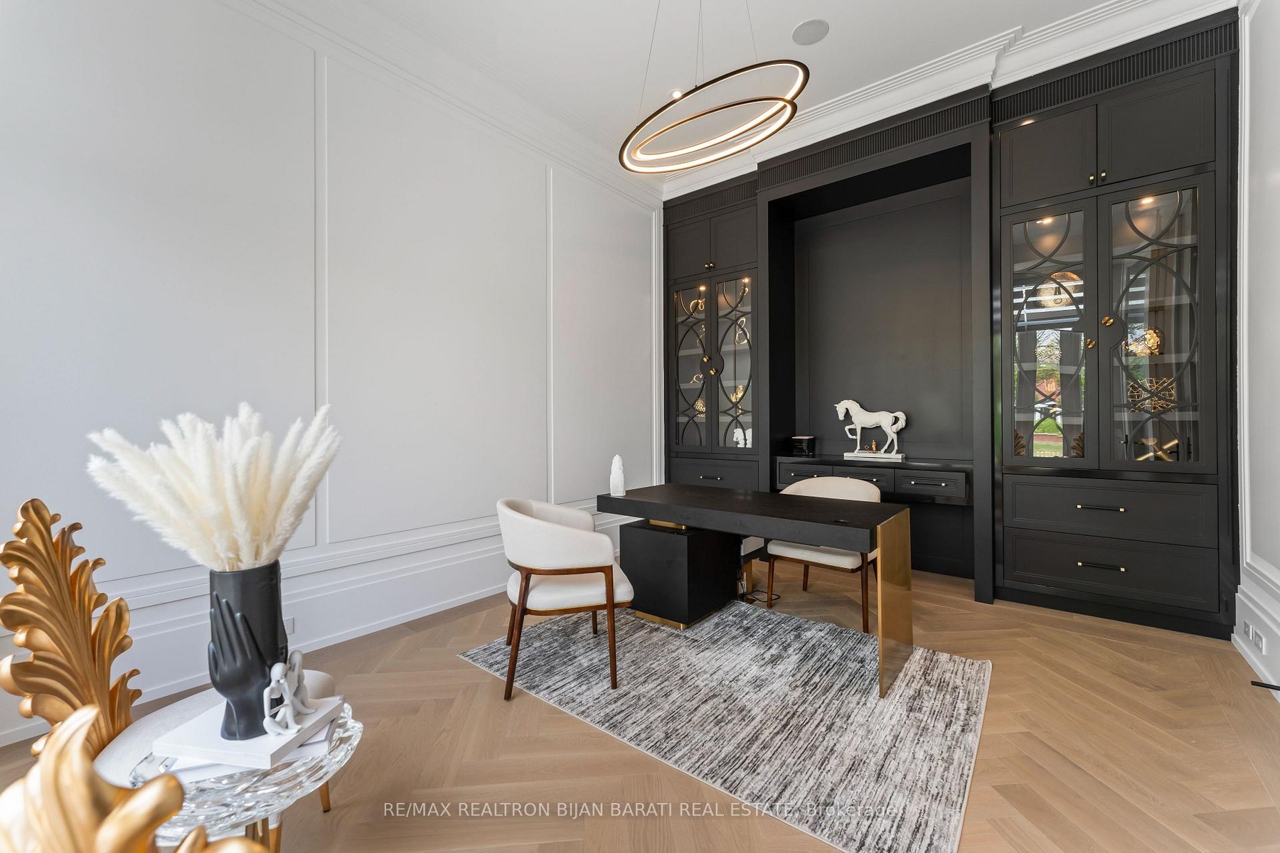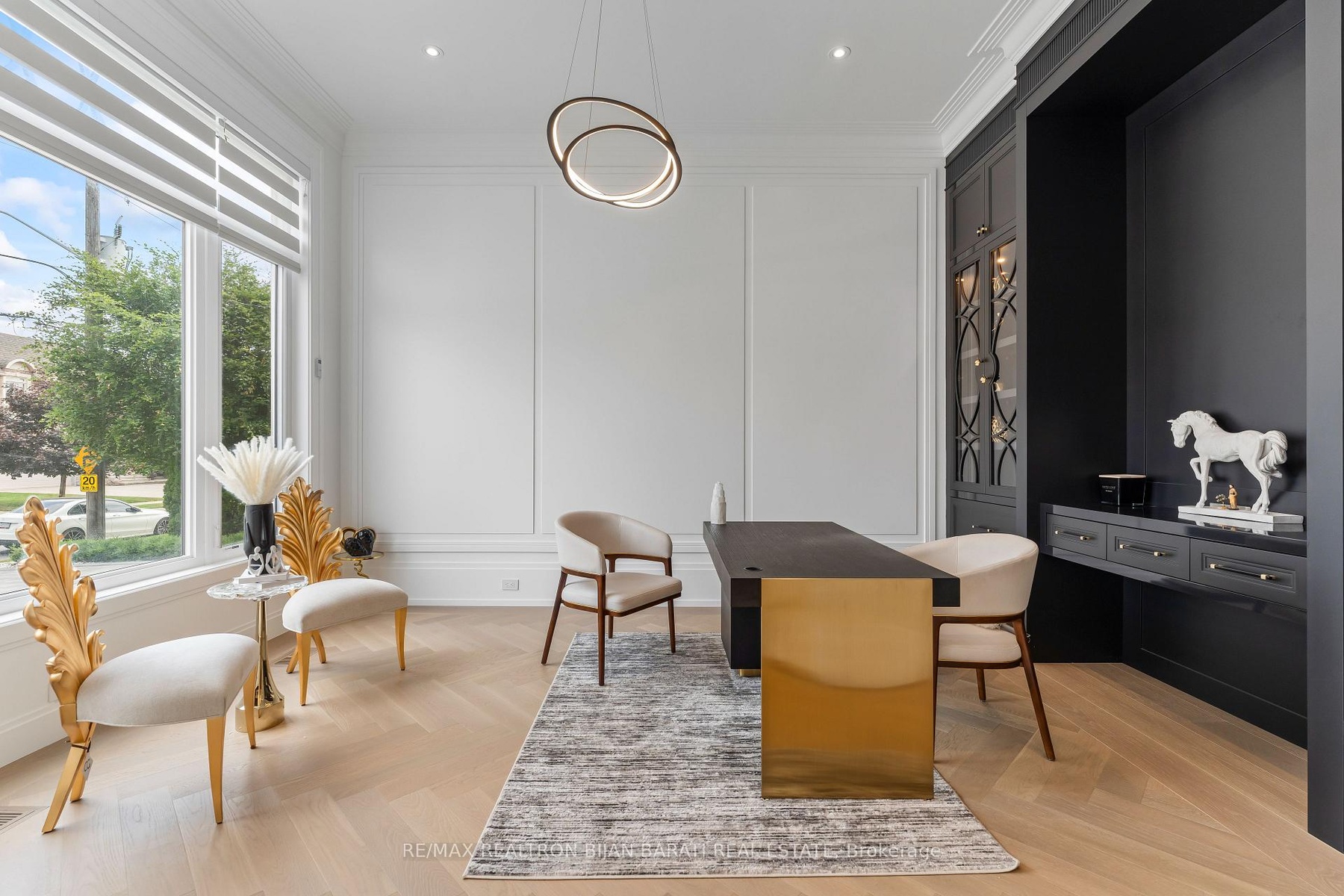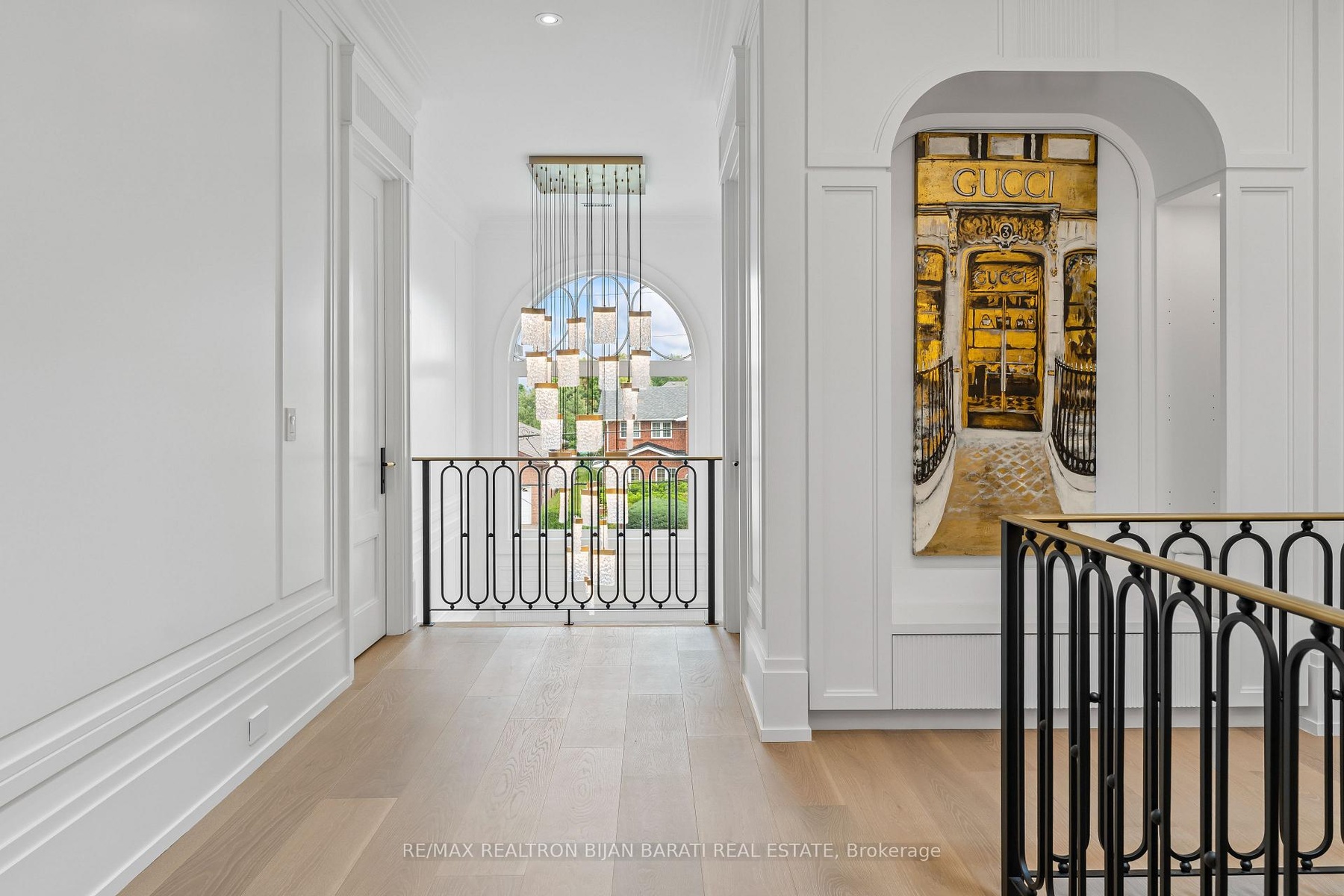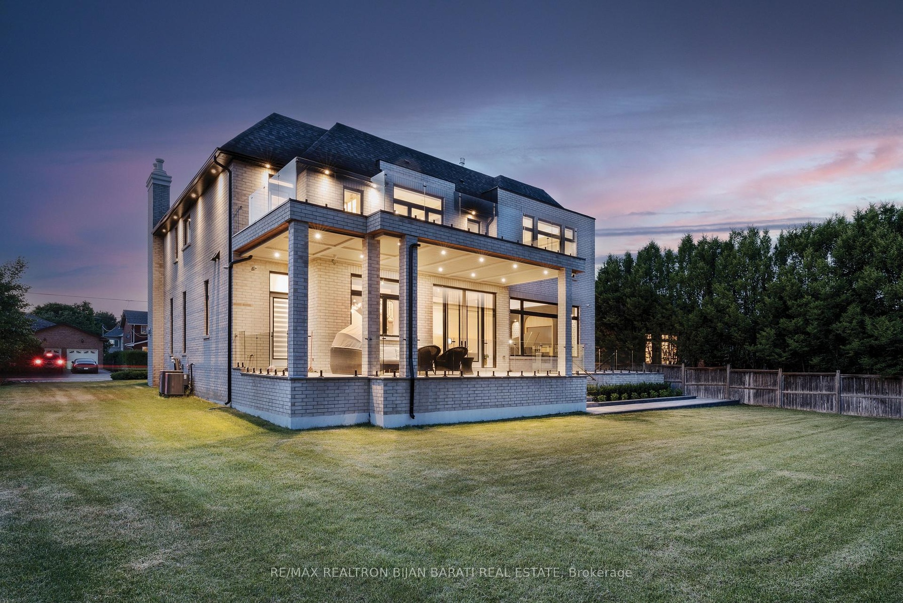 This Architectural Masterpiece Nestled in 75' x 150' with The Utmost Attention to the Exterior&Interior Design! This Distinguished Estate Exudes Timeless Elegance& Contemporary Sophistication Features: The Stately Pre-Cast Façade with Brick in Sides& Back, Complemented by a Rough In Snow-Melted Circular Driveway&Professionally Landscaped Grounds, Creating an Unforgettable First Impression!Oversized Quality Windows ,Soaring Ceiling Heights Flow Seamlessly in Main& Second Flr! A Grand Entrance Welcomes with Double-Height Foyer Adorned with Exquisite Custom Millwork Leads to Open Rising Beautiful Staircase with Artful Skylight above! Engineered Hardwood Flr,Wall Paneled,Led Lighting,Coffered Ceiling,Ropelights,Crown Moulding,Designer Accent!Hardwood Flooring&Fully Paneled Walls for Gracious Living, Dining Rm&Office!A Huge Open Concept Family Area Includes Chef-Inspired Kitchen that Combines Modern Design with Exceptional Function, Top-Tier Appliances, Custom Designer Cabinetry&A Grand Central Island with A Unique Stone Countertop,A Separate Fully Equipped Spice Kitchen + A Family Rm&Breakfast Area with Designer Wall Unit Includes Fabric Material&Integrated Led Lighting&A Gas Fireplace,Walk-Out to Large Concrete Deck,Terrace&Backyard!A Fully Outfitted Mudroom with Built-In Closet, An Elevator with 3 Stops, a Designer Powder Rm& Direct Access to the Ample 3-Car Garage.Breathtaking Huge Master Suite with Coffered Cling,Wall Paneled,Walk-In Closet (His&Hers) with Skylights Above&7 Pc Heated Flr Ensuite!Additional 3 Generously Sized Bedrms Are Equally Impressive,Each Offering Ensuite&W/I Closet, 2Bedrm Has Electric Fireplace&Wall Unit!Large Rich Laundry Rm.Professionally Heated Flr W/O Bsmnt Includes a Stylish Wet Bar,A Bedrm, 3-Pc Bath.