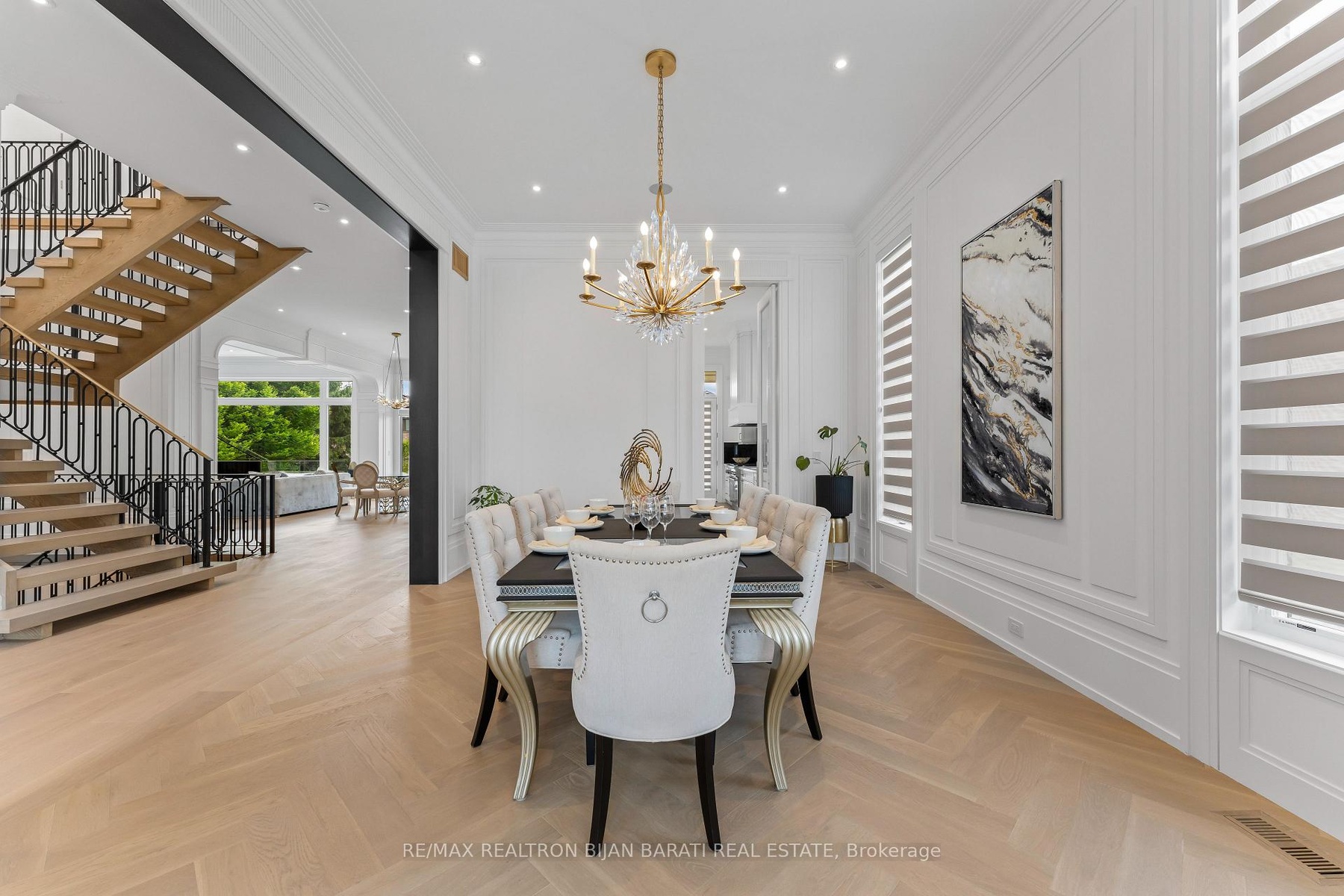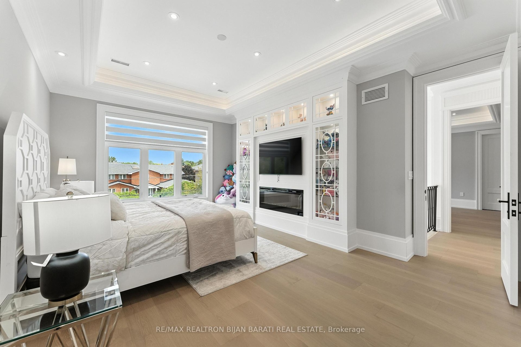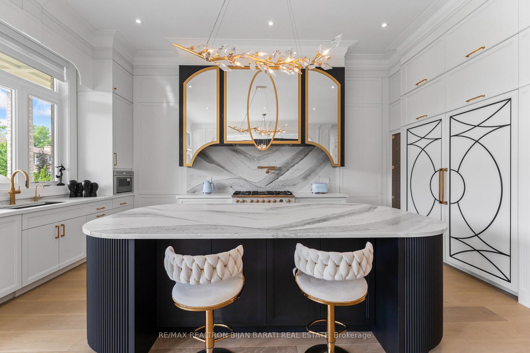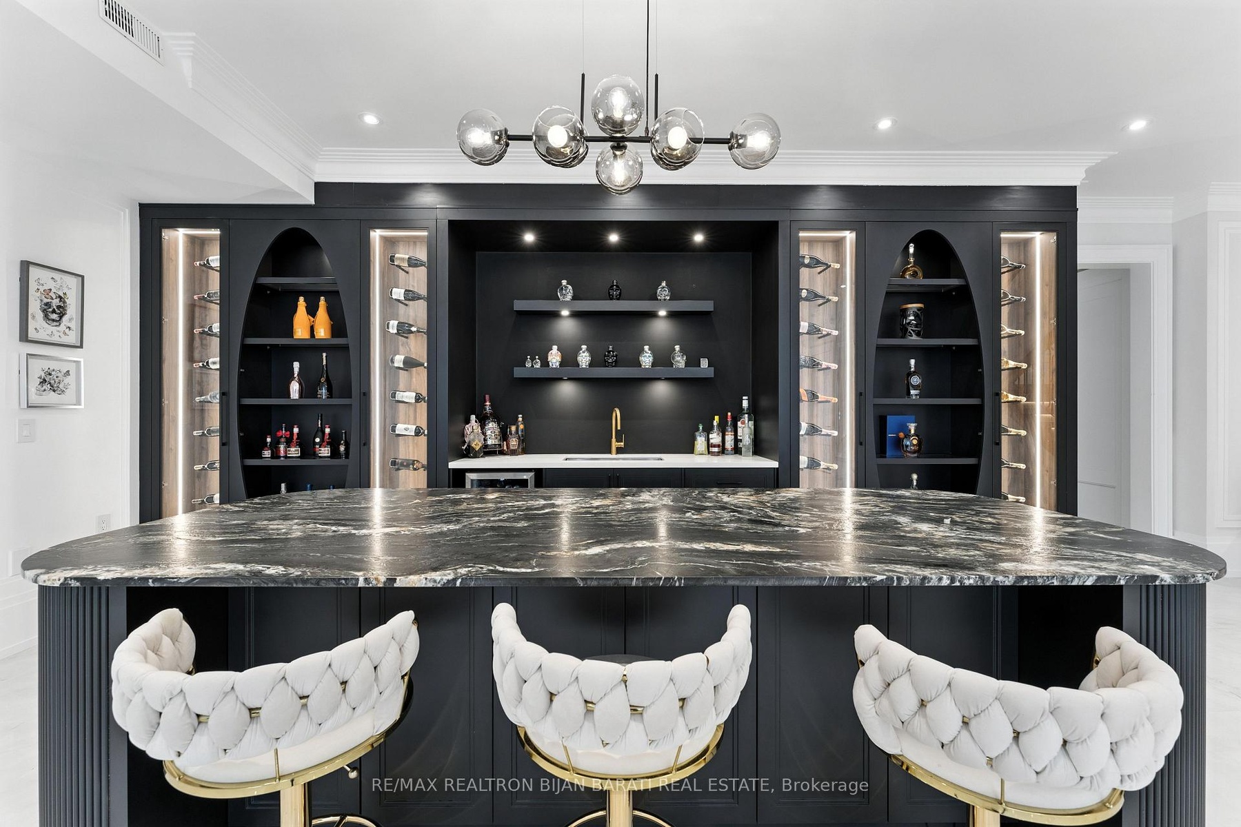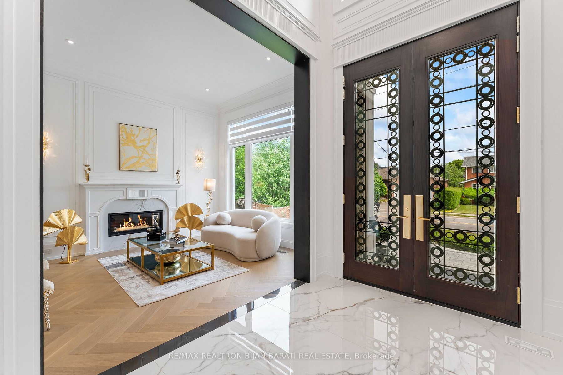 This Architectural Masterpiece Nestled in 75' x 150' with The Utmost Attention to the Exterior&Interior Design! This Distinguished Estate Exudes Timeless Elegance& Contemporary Sophistication Features: The Stately Pre-Cast Façade with Brick in Sides& Back, Complemented by a Rough In Snow-Melted Circular Driveway&Professionally Landscaped Grounds, Creating an Unforgettable First Impression!Oversized Quality Windows ,Soaring Ceiling Heights Flow Seamlessly in Main& Second Flr! A Grand Entrance Welcomes with Double-Height Foyer Adorned with Exquisite Custom Millwork Leads to Open Rising Beautiful Staircase with Artful Skylight above! Engineered Hardwood Flr,Wall Paneled,Led Lighting,Coffered Ceiling,Ropelights,Crown Moulding,Designer Accent!Hardwood Flooring&Fully Paneled Walls for Gracious Living, Dining Rm&Office!A Huge Open Concept Family Area Includes Chef-Inspired Kitchen that Combines Modern Design with Exceptional Function, Top-Tier Appliances, Custom Designer Cabinetry&A Grand Central Island with A Unique Stone Countertop,A Separate Fully Equipped Spice Kitchen + A Family Rm&Breakfast Area with Designer Wall Unit Includes Fabric Material&Integrated Led Lighting&A Gas Fireplace,Walk-Out to Large Concrete Deck,Terrace&Backyard!A Fully Outfitted Mudroom with Built-In Closet, An Elevator with 3 Stops, a Designer Powder Rm& Direct Access to the Ample 3-Car Garage.Breathtaking Huge Master Suite with Coffered Cling,Wall Paneled,Walk-In Closet (His&Hers) with Skylights Above&7 Pc Heated Flr Ensuite!Additional 3 Generously Sized Bedrms Are Equally Impressive,Each Offering Ensuite&W/I Closet, 2Bedrm Has Electric Fireplace&Wall Unit!Large Rich Laundry Rm.Professionally Heated Flr W/O Bsmnt Includes a Stylish Wet Bar,A Bedrm, 3-Pc Bath.