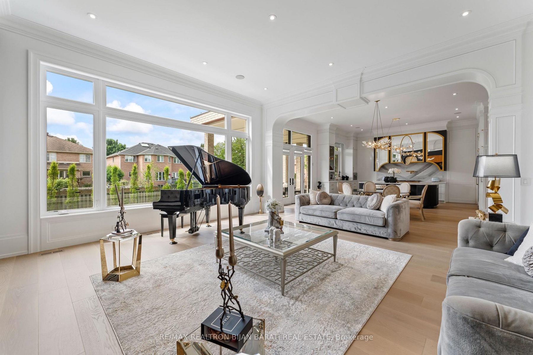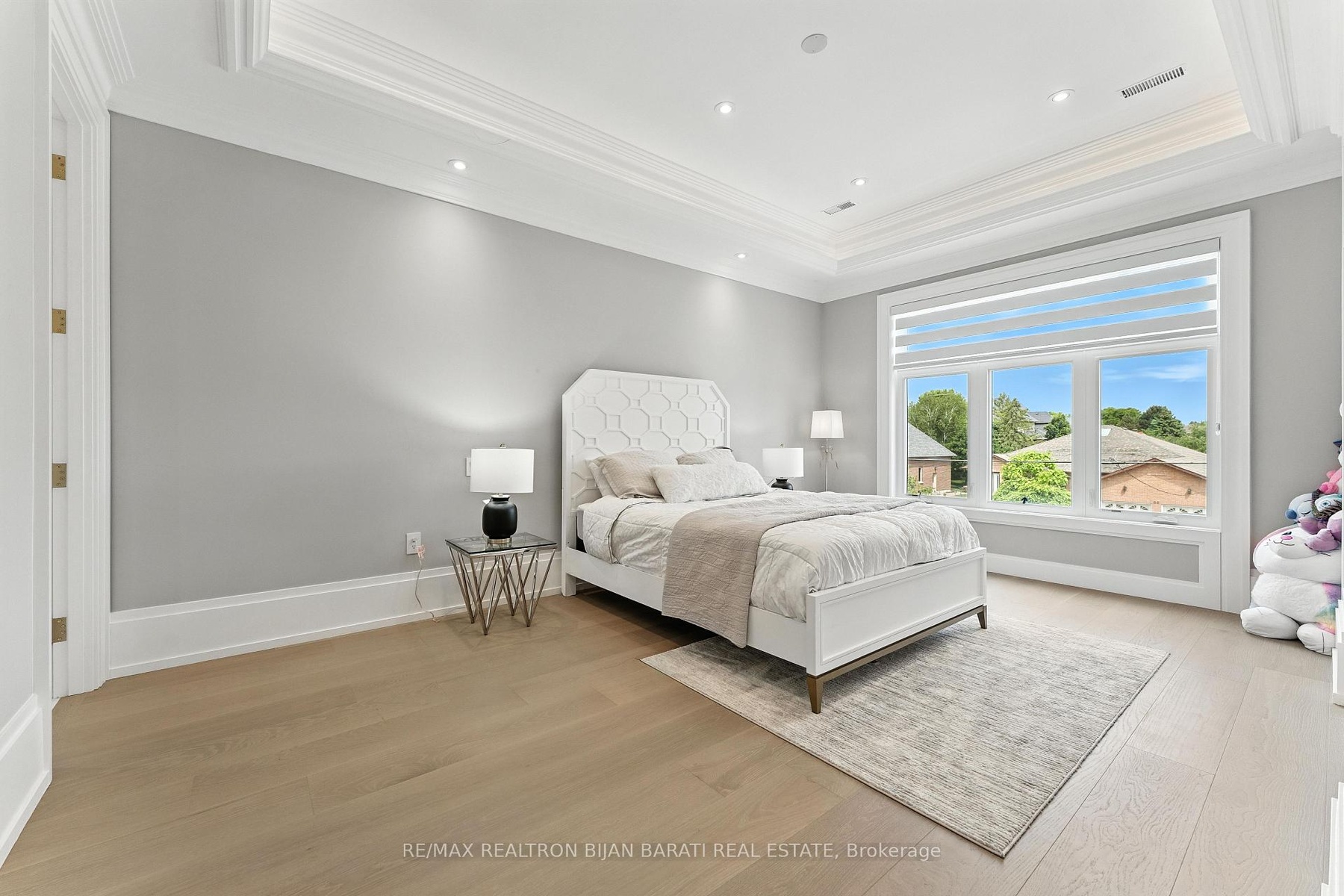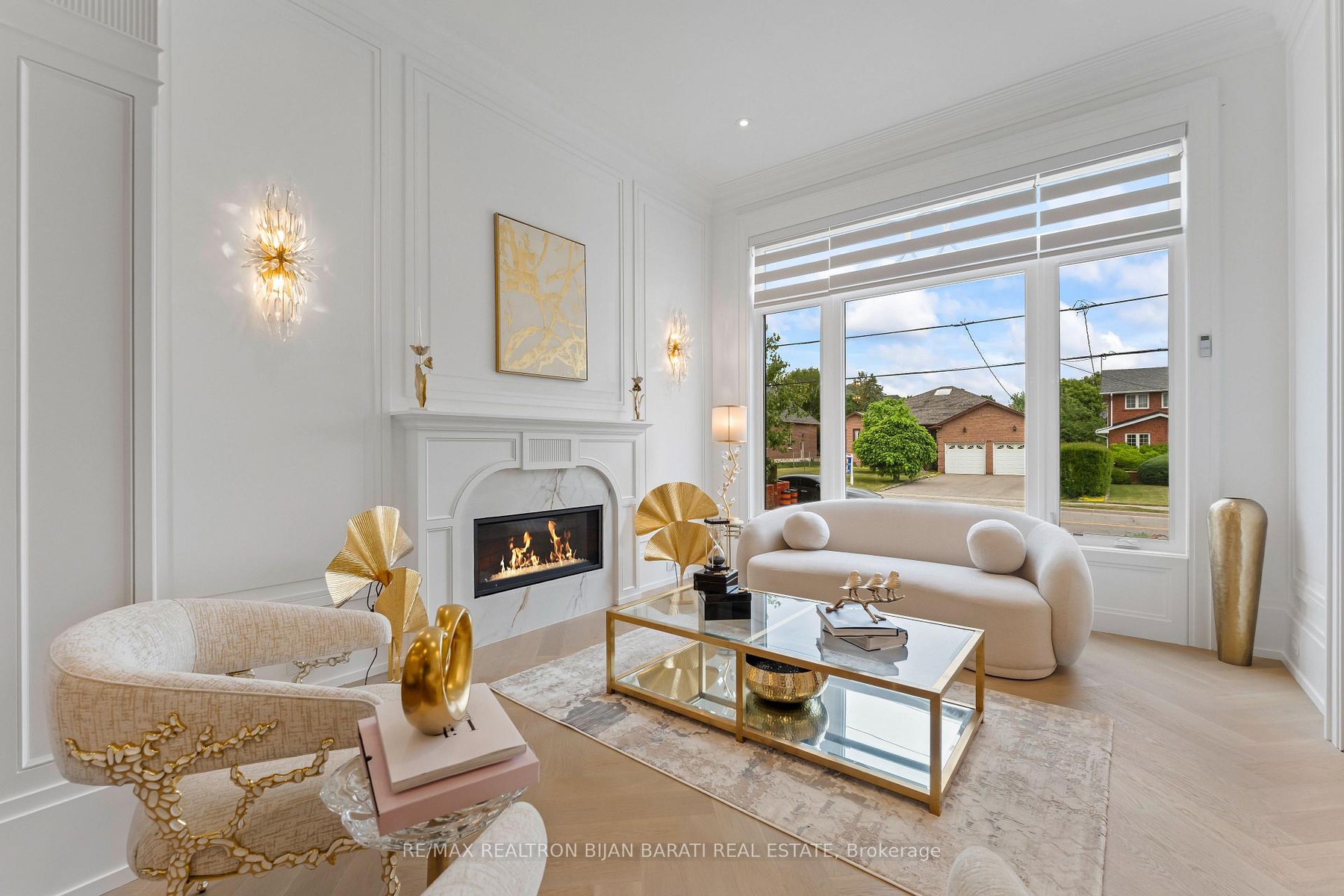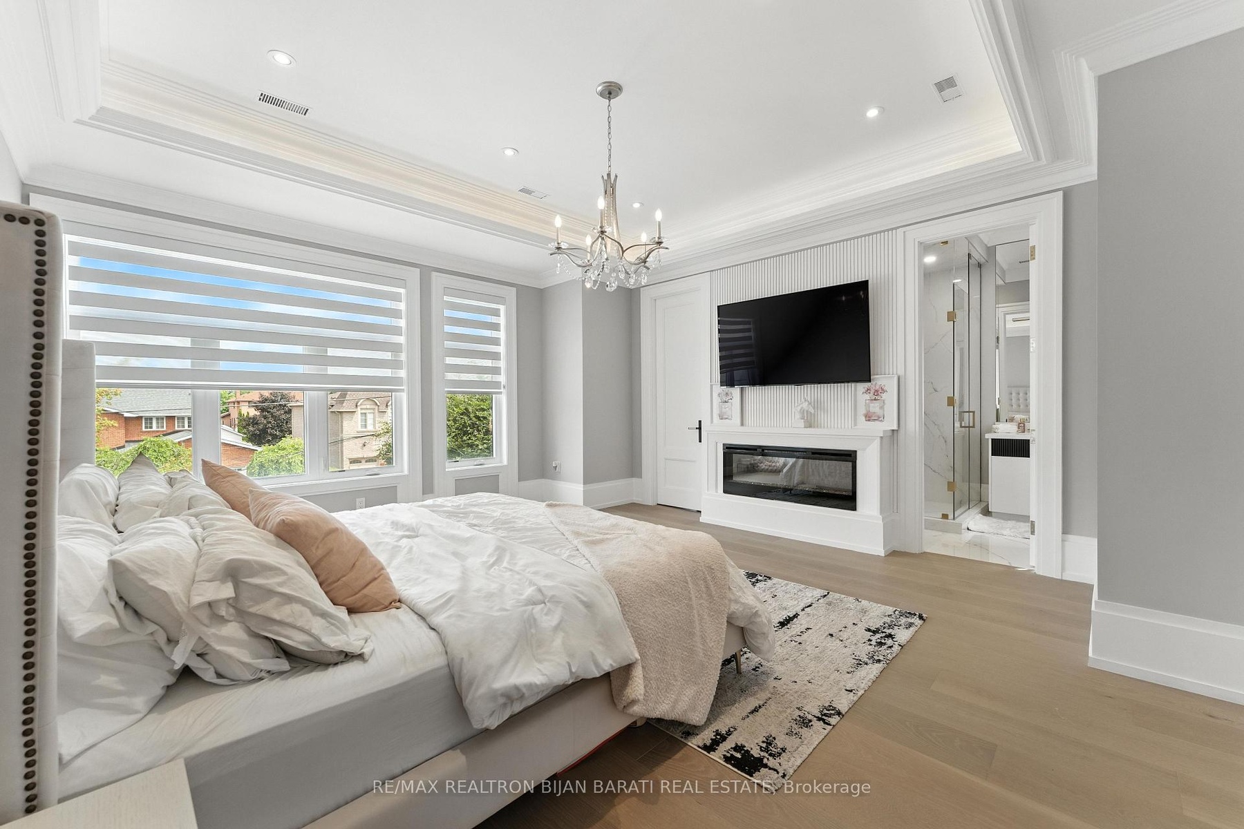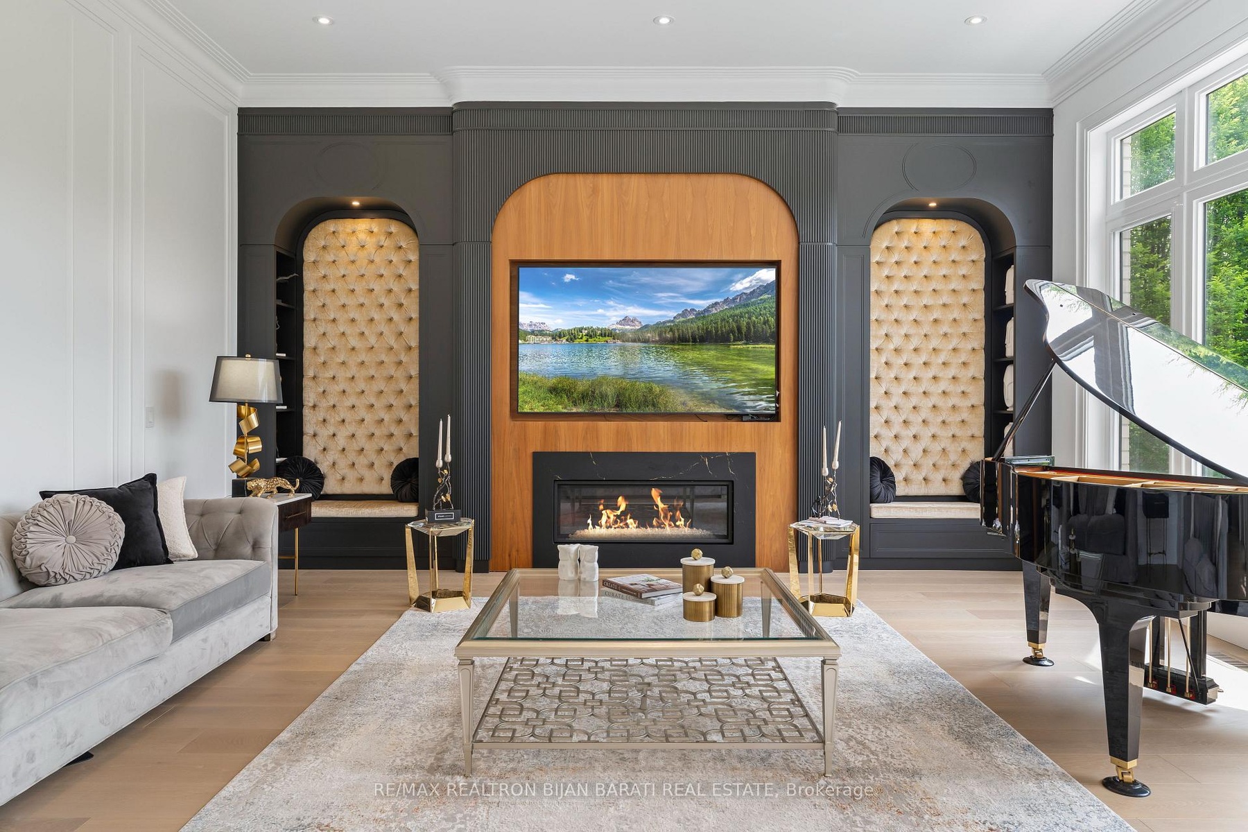 This Architectural Masterpiece Nestled in 75' x 150' with The Utmost Attention to the Exterior&Interior Design! This Distinguished Estate Exudes Timeless Elegance& Contemporary Sophistication Features: The Stately Pre-Cast Façade with Brick in Sides& Back, Complemented by a Rough In Snow-Melted Circular Driveway&Professionally Landscaped Grounds, Creating an Unforgettable First Impression!Oversized Quality Windows ,Soaring Ceiling Heights Flow Seamlessly in Main& Second Flr! A Grand Entrance Welcomes with Double-Height Foyer Adorned with Exquisite Custom Millwork Leads to Open Rising Beautiful Staircase with Artful Skylight above! Engineered Hardwood Flr,Wall Paneled,Led Lighting,Coffered Ceiling,Ropelights,Crown Moulding,Designer Accent!Hardwood Flooring&Fully Paneled Walls for Gracious Living, Dining Rm&Office!A Huge Open Concept Family Area Includes Chef-Inspired Kitchen that Combines Modern Design with Exceptional Function, Top-Tier Appliances, Custom Designer Cabinetry&A Grand Central Island with A Unique Stone Countertop,A Separate Fully Equipped Spice Kitchen + A Family Rm&Breakfast Area with Designer Wall Unit Includes Fabric Material&Integrated Led Lighting&A Gas Fireplace,Walk-Out to Large Concrete Deck,Terrace&Backyard!A Fully Outfitted Mudroom with Built-In Closet, An Elevator with 3 Stops, a Designer Powder Rm& Direct Access to the Ample 3-Car Garage.Breathtaking Huge Master Suite with Coffered Cling,Wall Paneled,Walk-In Closet (His&Hers) with Skylights Above&7 Pc Heated Flr Ensuite!Additional 3 Generously Sized Bedrms Are Equally Impressive,Each Offering Ensuite&W/I Closet, 2Bedrm Has Electric Fireplace&Wall Unit!Large Rich Laundry Rm.Professionally Heated Flr W/O Bsmnt Includes a Stylish Wet Bar,A Bedrm, 3-Pc Bath.