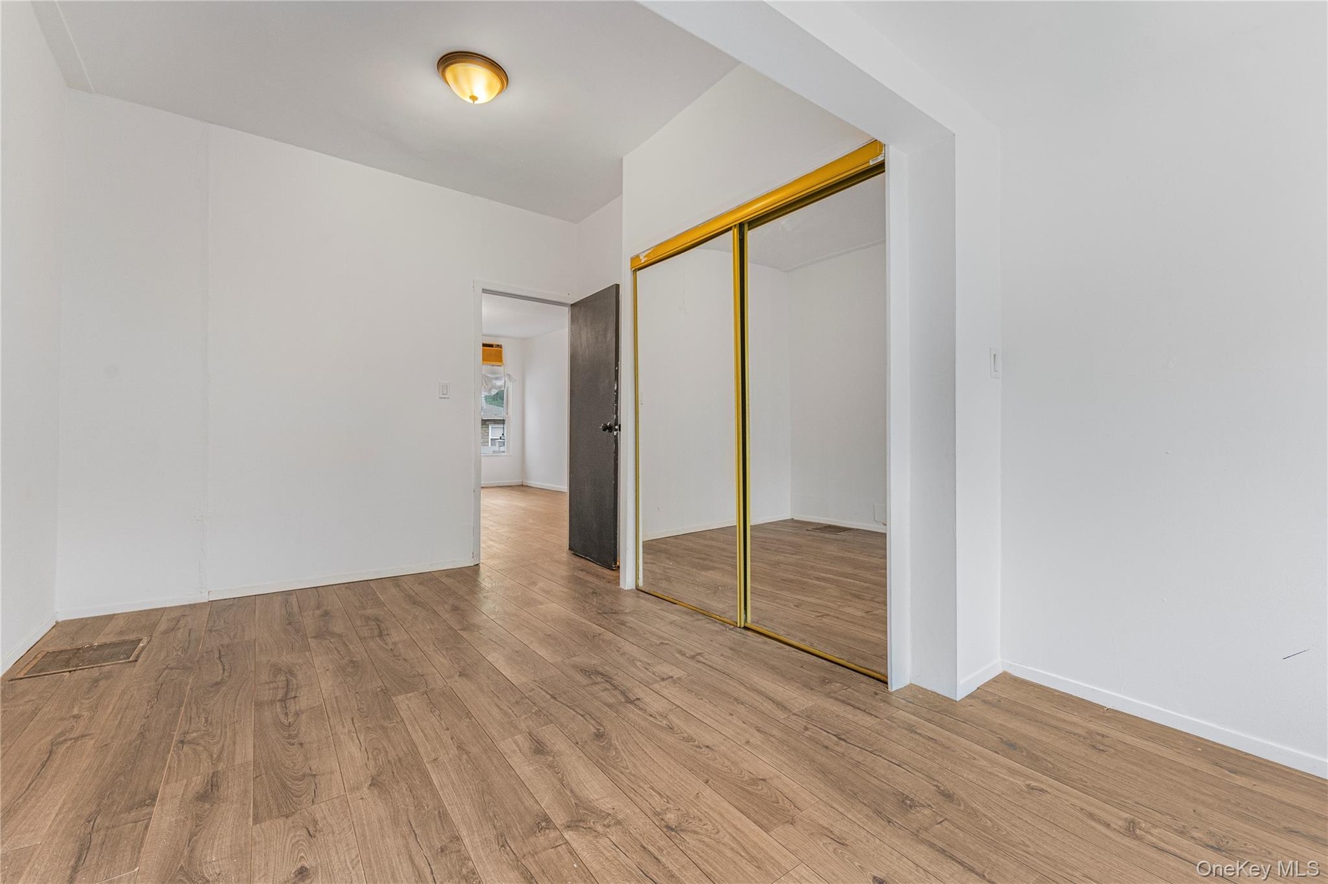 - Unfurnished bedroom featuring wood finished floors and a closet