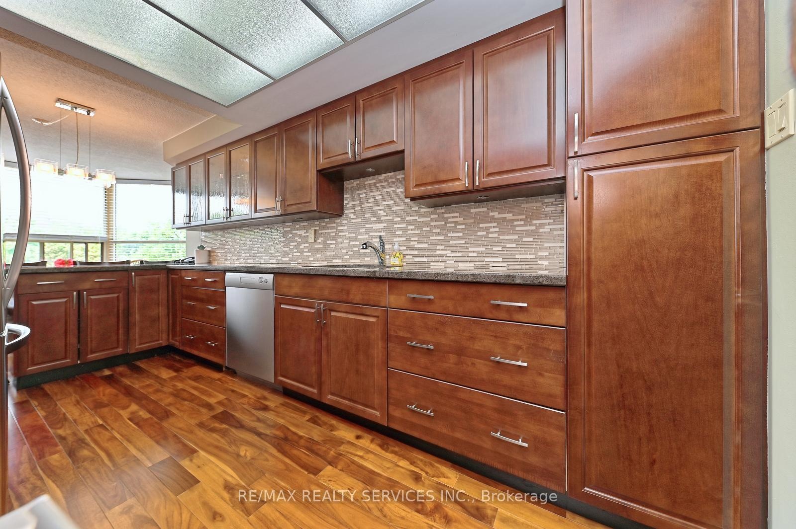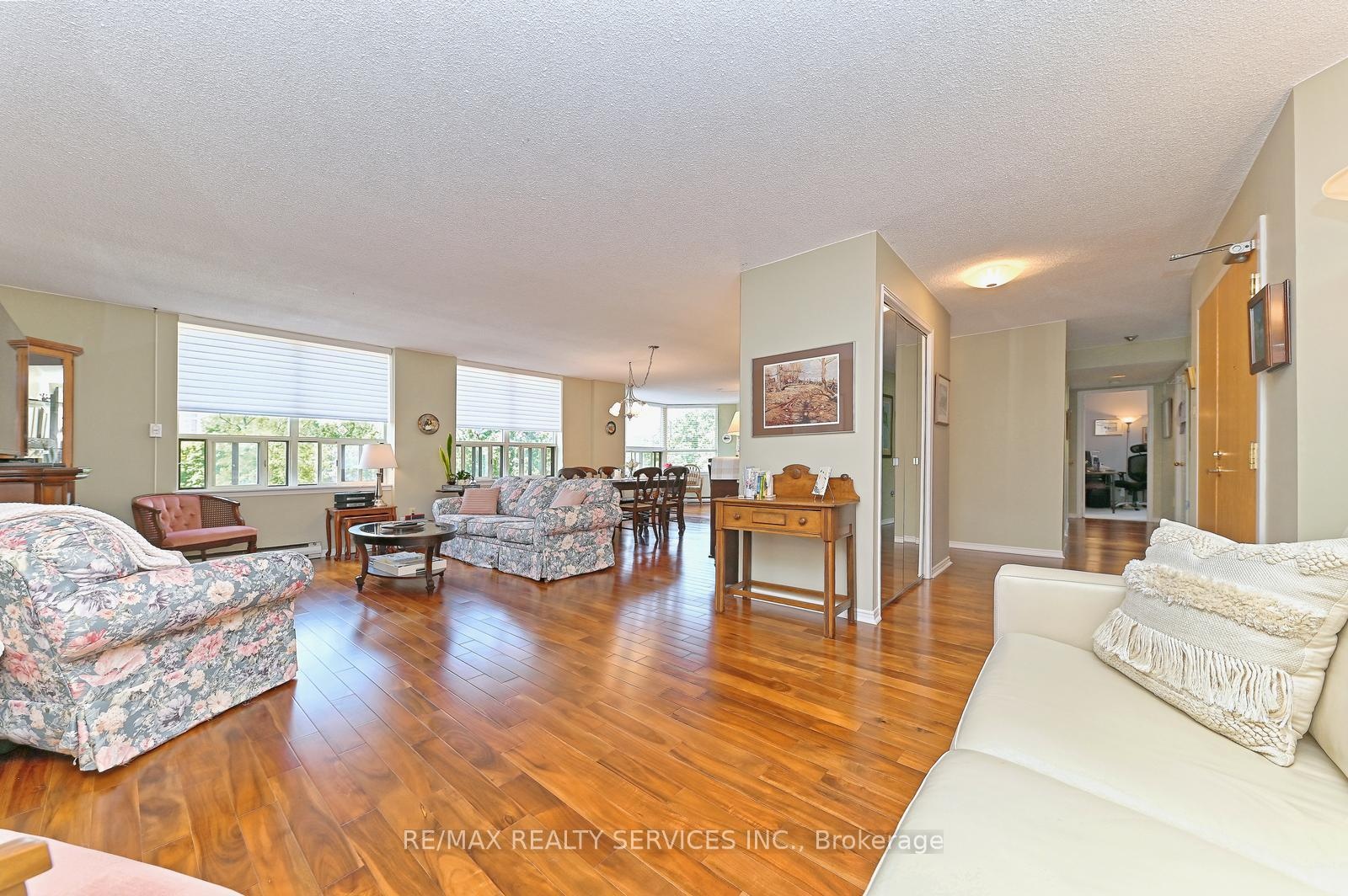 This spacious condo is just steps from the GO station, providing effortless commuting to downtown, and is nestled within a well-maintained boutique building with only four units per floor for added privacy and exclusivity. Thoughtfully renovated with high-quality finishes, the unit features elegant hardwood flooring, modern kitchen cabinetry, and a beautifully extended kitchen with a peninsula and under-cabinet lighting. Meticulously maintained and in excellent condition, it also benefits from new elevators installed in 2024. On the second level, residents enjoy access to an indoor pool, hot tub, sauna, and a large outdoor terrace with shuffleboard and BBQs. Additional amenities include a library, fully equipped exercise room, and a party room perfect for larger gatherings. This unit includes one garage parking space, one outdoor parking space, and a storage locker for added convenience. All-inclusive maintenance fees cover Fibe cable and Internet.