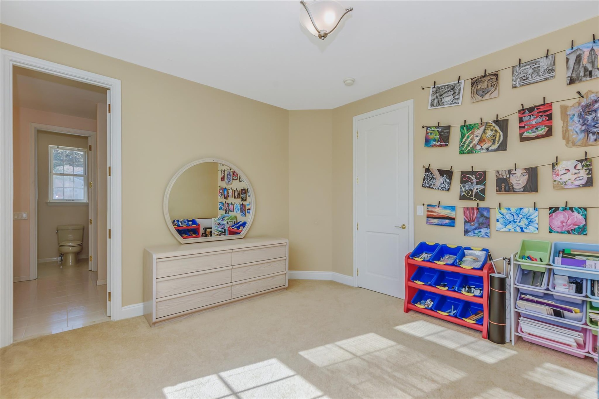 - Bedroom featuring carpet, recessed lighting, and ceiling fan