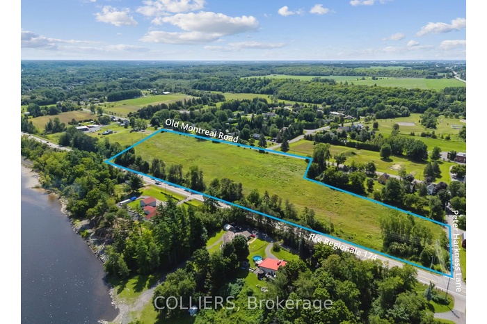Calling all developers, owner-users, and investors: opportunity to acquire 11.36 acres of land in Cumberland with frontage on both Highway 174 and Old Montreal Road. With 1,319 of frontage along Hwy 174, 2725 Old Montreal's zoning (Rural Commercial Zone 12) allows for a range of commercial uses, and industrial use. Prospects can also benefit from draft site plan showcasing a gas bar and canopy, convenience store, restaurant and quick service restaurant (QSR) with drive-through, commcercial building at the rear, with excess land available.