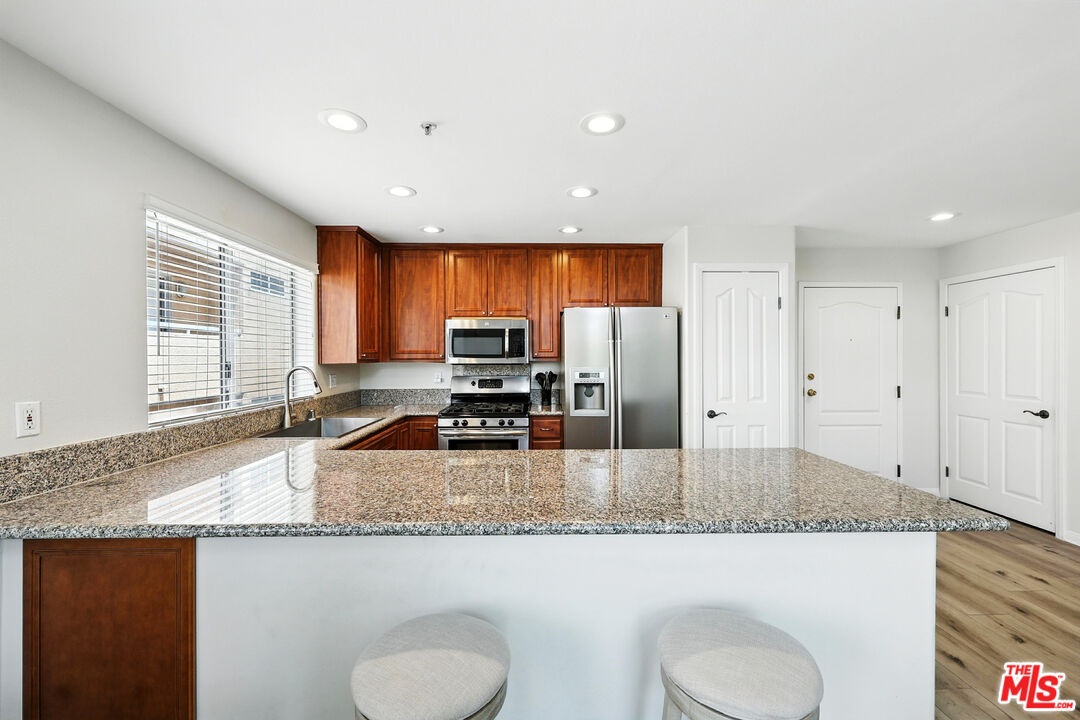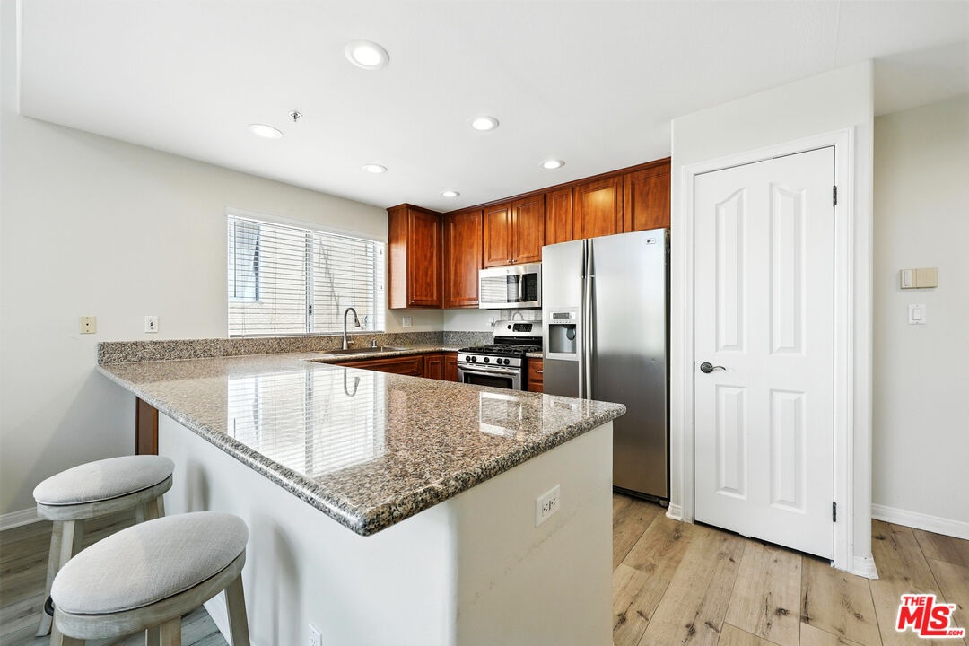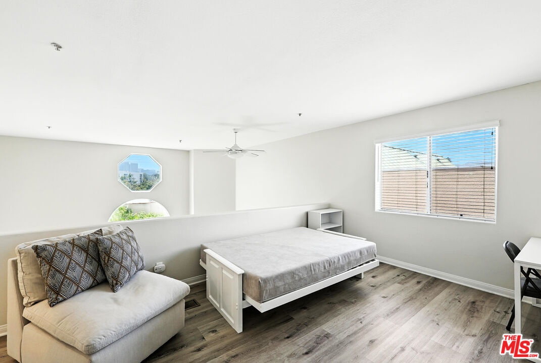Penthouse Living with Rooftop Access in Pico-Robertson! This bright and spacious Penthouse condo with low HOA dues is tucked away in the back corner of a quiet, desirable building in the heart of Pico-Robertson. Featuring 2 en-suite bedrooms plus a large en-suite loft with a full closet , perfect for a home office, guest suite, or potential 3rd bedroom (buyer to verify). This home offers 3 full bathrooms and an additional powder room for a total of 4 baths. Soaring ceilings and clerestory windows fill the open living space with natural light. The expansive living room boasts a cozy corner fireplace and oversized sliding doors that open to a private balcony with treetop views. The gourmet kitchen includes granite countertops, rich wood cabinetry, stainless steel appliances, a new dishwasher, and a generous breakfast bar. The spacious primary suite features a large walk-in closet, dual vanities, a skylight, ceiling fan, and a substantial standing shower. A second bedroom offers its own en-suite full bath with a tub. Additional conveniences include an in-unit laundry room, multiple storage closets, a beautiful powder room, 2 dedicated tandem parking spaces plus guest parking, and direct access to the rooftop. All of this just moments away from restaurants, shopping, houses of worship, and more. Welcome to Penthouse living in one of L.A.'s most vibrant neighborhoods!
