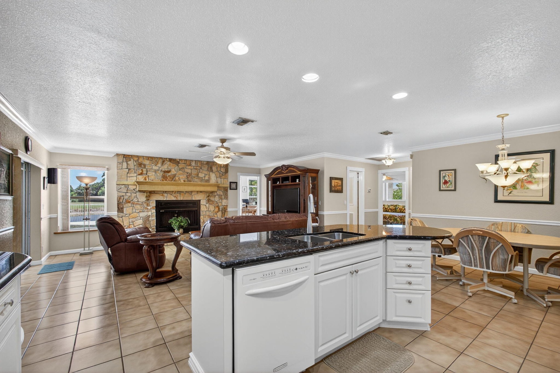 Spacious lakefront ranch home in a gated community with large, oversized rooms filled with abundant natural light The gourmet kitchen boasts granite counters and opens to a family room with a cozy fireplace. Conveniently located off the family room is a massive bonus/great room--perfect for entertaining. Enjoy serene water views, a sparkling pool, and a custom outdoor bar perfect for gatherings. Additional features include tons of large closets throughout and a circular driveway for added curb appeal. The ROOF was re-done in 2022 and the home is secure with impact windows and doors. This home has it all--comfort with space to live and entertain plus the low HOA dues make this home a rare find! CHECK OUT THE 3D WALK THRU.