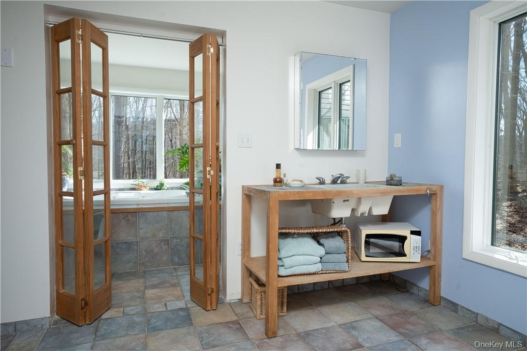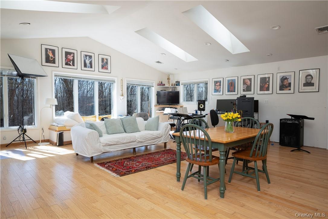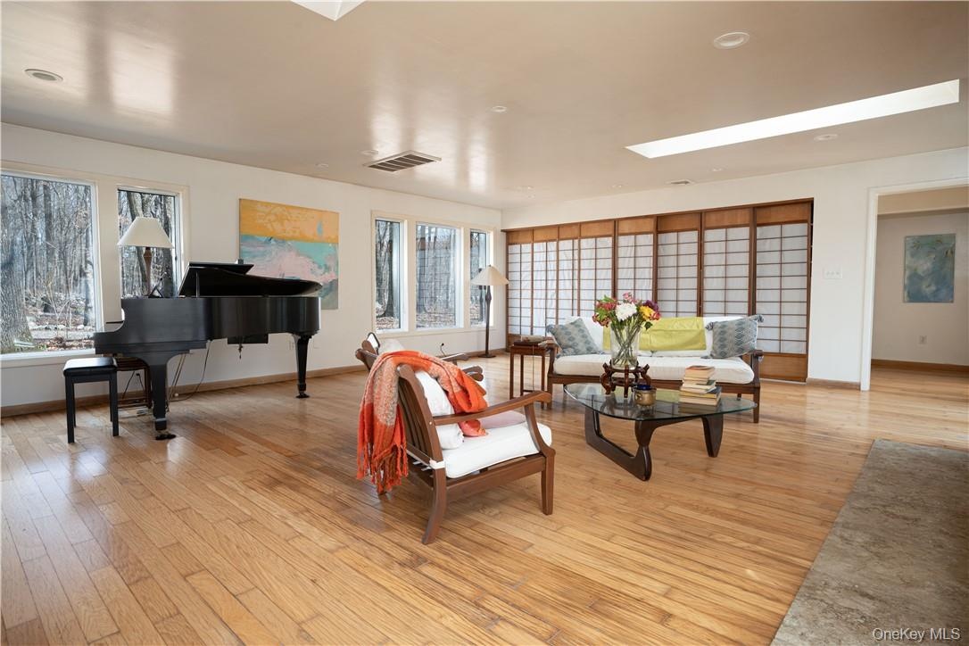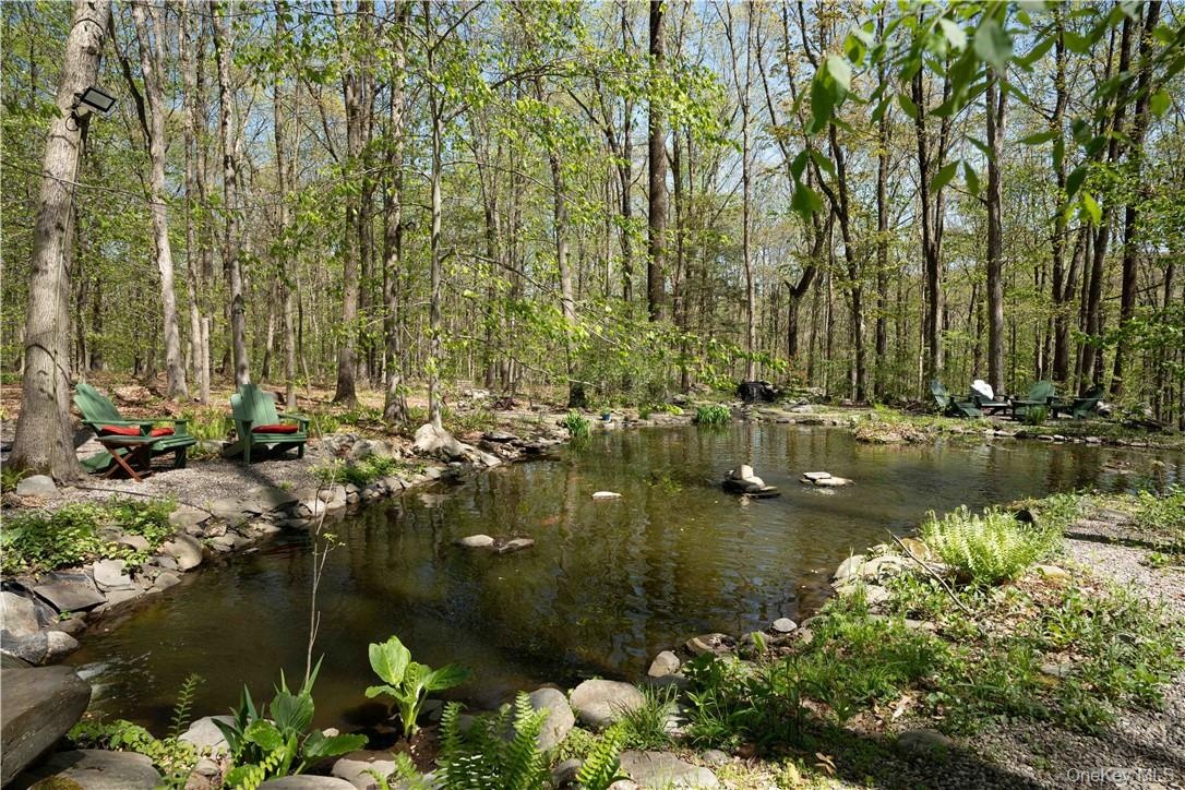 "RETREAT, CREATE, REPEAT - 6,227 SF on 37.7 Acres" - Escape the ordinary and rediscover your sense of wonder at this one-of-a-kind 6,227 SF sanctuary set on 38 private wooded acres in the rolling hills of Warwick, NY, just under an hour from New York City. Tucked into a pristine mountain landscape with a mile of old stone walls, private hiking and cross-country ski trails, this self-sustaining estate offers a rare blend of architecture, artistry, and nature. Conceived by world-renowned rock & roll photographer Waring Abbott, the main residence spans over 6,200 square feet of striking contemporary design, where glass, light, and landscape converge in harmony. With 4-5 bedrooms and 2.5 bathrooms, the home is grand yet grounding. Japanese inspired landscaping intends for the outdoors to feel natural, moss, rocks and gravel blend with wooded forest to create spaces of deep tranquility and transcendent beauty. Expanses of floor-to-ceiling glass frame the ever-changing woodland views, while radiant heat, multiple fireplaces, and rich hardwood floors create a cocoon of warmth and modern comfort. The primary suite, overlooking a tranquil stream and the expansive koi pond, is a retreat in itself, complete with an Irish wood-burning stove for evenings of quiet reflection. A separate wing houses a vast creative studio or office, with its own entrance and parking, ideal for artists, musicians, remote professionals, or entrepreneurs seeking a truly inspiring work-from-home environment. An additional bonus room above the office is the perfect place for a home gym. The open chef's kitchen offers views of the upper pond and access to a patio for seamless indoor/outdoor living as well as an expansive pantry. Meanwhile, a detached 2,400 sq ft barn expands the possibilities, featuring guest quarters with a full kitchen and bath, open studio space, 14' ceilings, and a separate workshop. Car collectors will appreciate 6+ indoor parking spaces, including a 3-car garage at the main house and ample barn storage. Beyond its artistic pedigree and natural beauty, this property is a haven for those seeking serenity and space with the freedom to keep horses for personal use. Zoned Mountain Residential, the land supports horses, and with established trails already on-site, it's ready for equestrian adventure. Whether you're envisioning an off-the-grid lifestyle while still close to incredible nearby amenities, or simply a weekend escape, the possibilities are as expansive as the landscape itself. Located within both the Warwick Valley Central School District and Chester UFSD, and in the sought-after Warwick High School zone, 15 Cox Drive blends pastoral beauty with academic prestige. Surrounded by the best of the Hudson Valley, from Warwick's acclaimed wineries, breweries, and orchards, to the sailing, hiking, and skiing adventures of Greenwood Lake, Sterling Forest, and Harriman State Park, this is a place where the seasons inspire your next chapter...