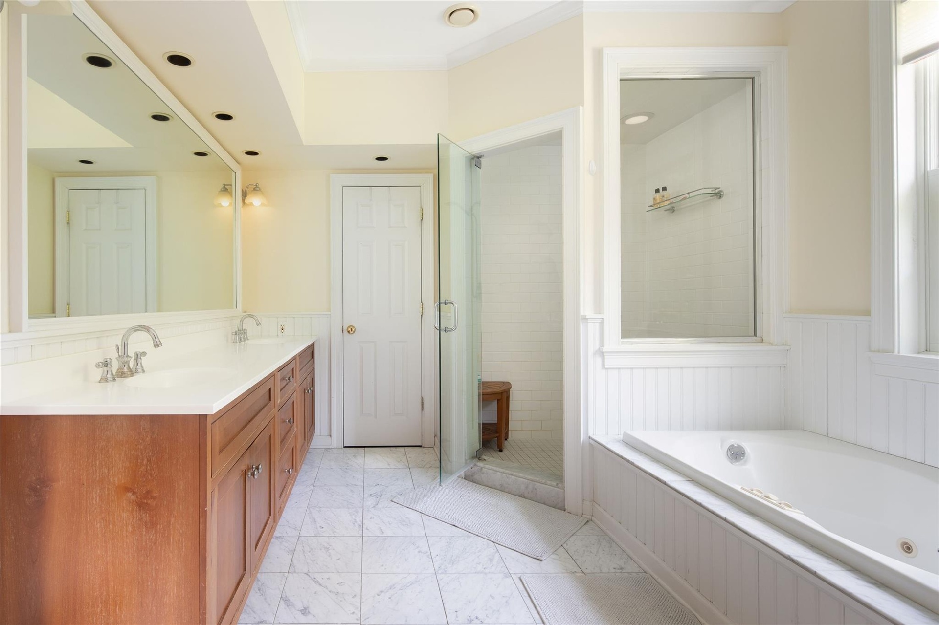 - Double vanity, marble floor, walk in closet, whirlpool tub, steam unit in shower, plenty of storage