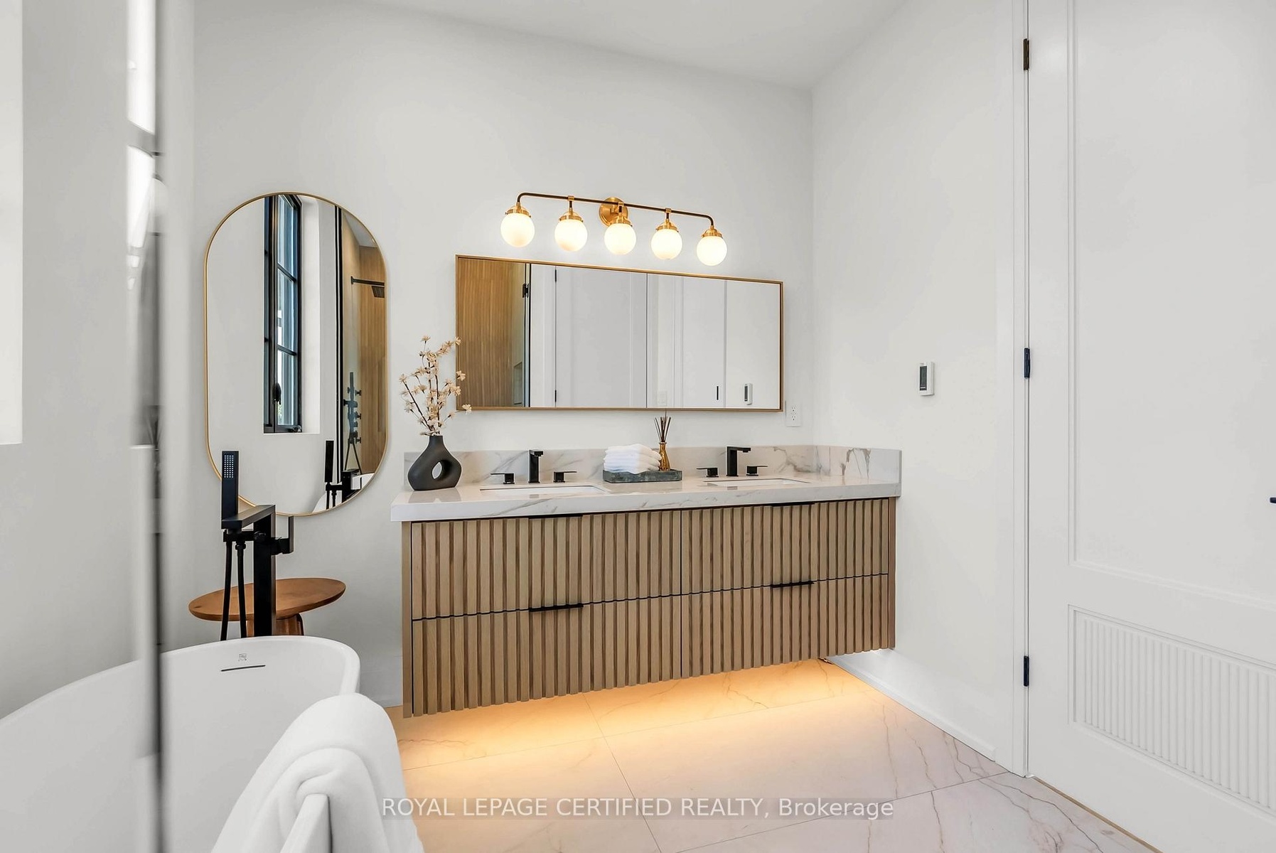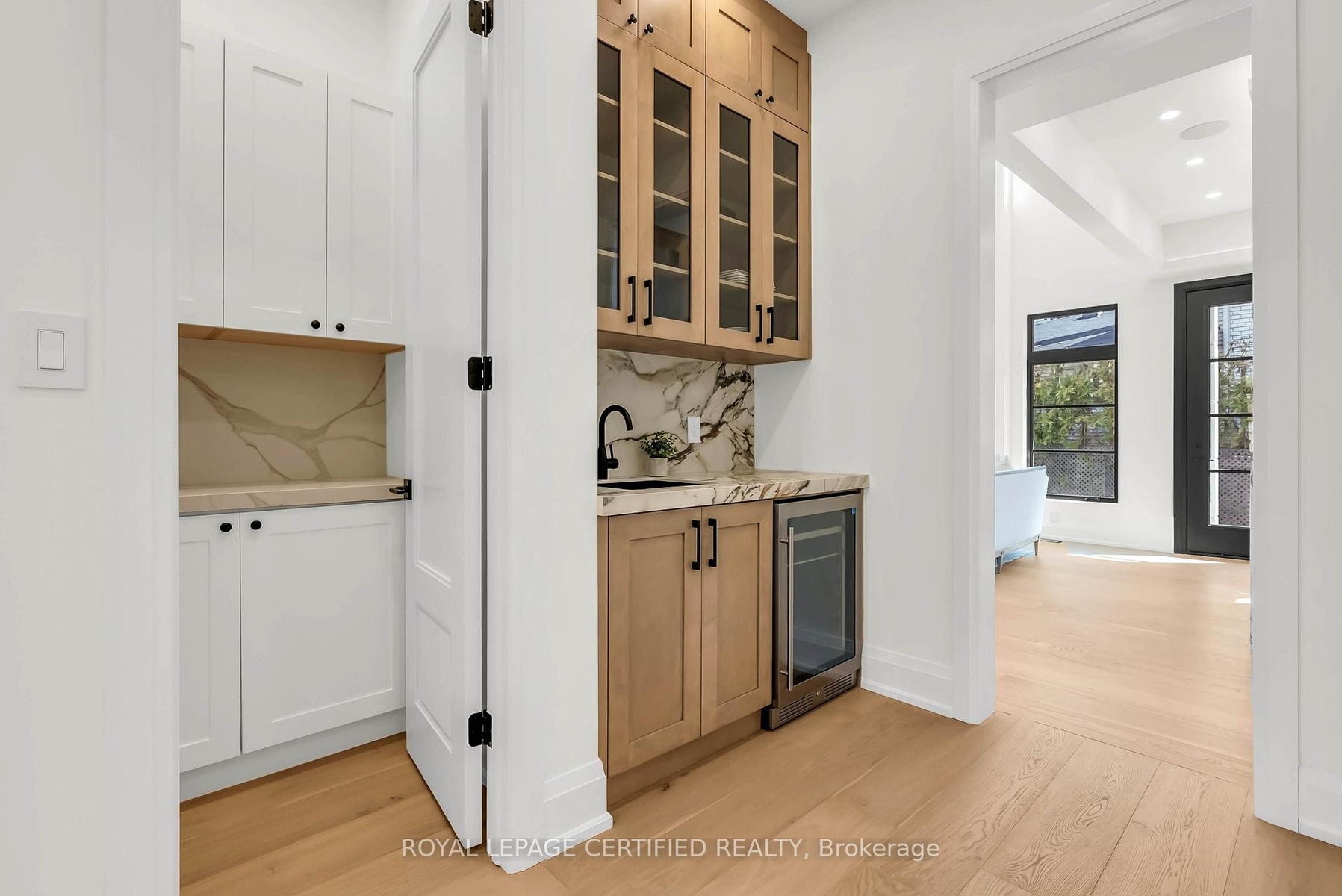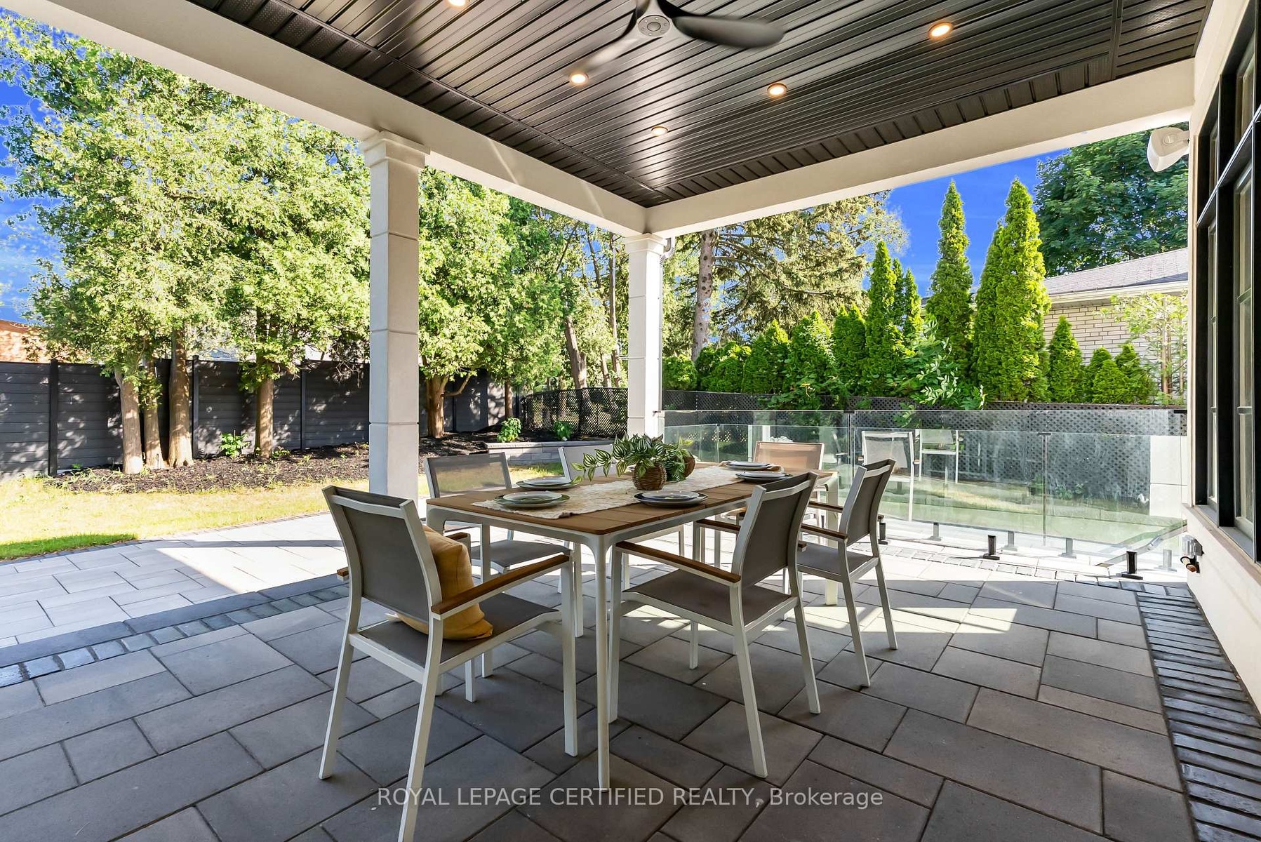 Live just steps from Lake Ontario in prime Southwest Oakville. This luxurious custom-built residence is perfectly situated on a fully Landscaped PREMIUM CORNER LOT, an extra-wide driveway with premium aluminum tinted glass garage doors & fully fenced yard w no sidewalk offering over 4,930 SQ. FT. of curated luxury living space.Step through a grand entry with a 9 FT statement door into a dramatic foyer, setting the tone for a warm aesthetic. A MAIN FLOOR OFFICE with expansive windows and a glass wall offers a serene workspace filled with natural light. The sun-drenched great room features SOARING 21-FT CEILINGS and a striking floor-to-ceiling FLUTED STONE FIREPLACE, delivering a bold architectural statement while maintaining a clean, minimalist ambiance. SKYLIGHTS and decorative ceilings with COVE LIGHTING add layers of texture and light throughout. Entertain effortlessly in the SEPARATE FORMAL DINING ROOM, which flows to your Pantry/Servery space with CUSTOM SHELVING, into the heart of the home, an expansive designer kitchen with a large WATERFALL ISLAND, floor-to-ceiling custom cabinetry, WOLF & THERMADOR integrated appliances, and DUAL WALKOUTS to the backyard. The outdoor space features a COVERED PORCH AREA equipped with an outdoor speaker system, fan, and potlights, perfect for enjoying your morning coffee or hosting large gatherings.The upper level offers 4 generously sized bedrooms. The primary retreat boasts a spa-inspired 5-piece ensuite with a freestanding soaking tub, HEATED FLOORS, double vanity, and TWO LARGE CUSTOM WALK-IN CLOSETS.The FINISHED WALK-UP basement offers exceptional versatility with a large recreation area, a BUILT-IN WET BAR w WINE FRIDGE, WINE ROOM, 2 guest bedrooms, a full BATHROOM, and a Walk-Out to a Covered Porch.Just minutes from Top Rated Schools Including St. Thomas Aquinas Catholic Secondary School, Appleby College, W.H. Morden Public School, Morden Park, Downtown Oakville, Old Oakville, Fortinos, the QEW, scenic parks, and more.