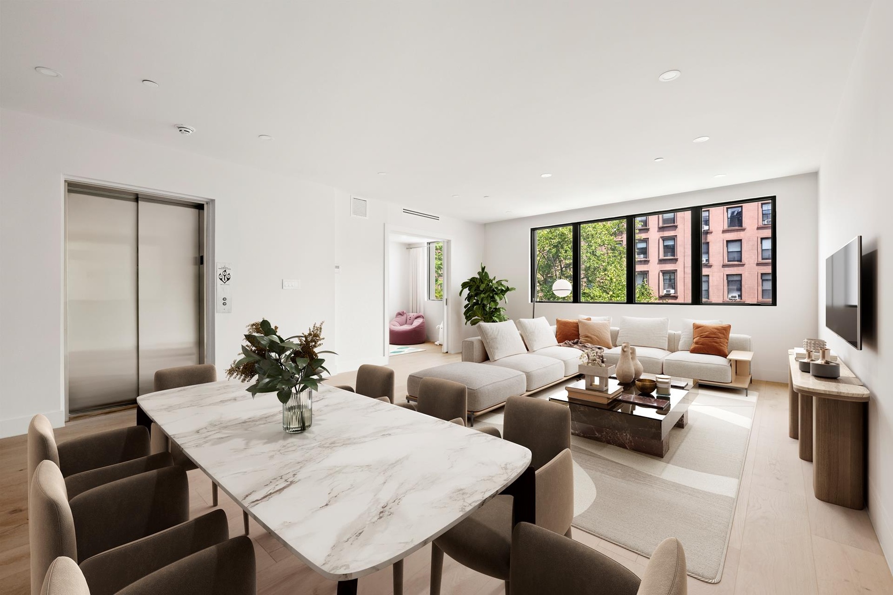 Throughout the residence, thoughtful design meets modern convenience, with multi-zone central AC, sustainable white oak flooring, energy-efficient windows, and an in-unit Miele washer/dryer. The chef's kitchen is as functional as it is elegant, featuring custom cabinetry, marble countertops, smart storage solutions, a wine refrigerator, and integrated Bertazzoni appliances. A state-of-the-art video intercom system adds an extra layer of security and ease. Residence No. 3 also includes a private basement storage room.