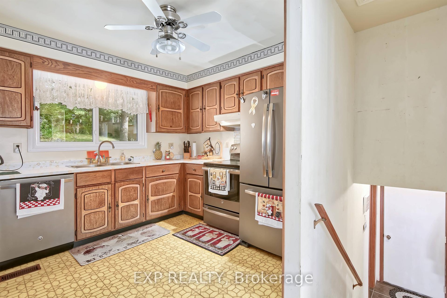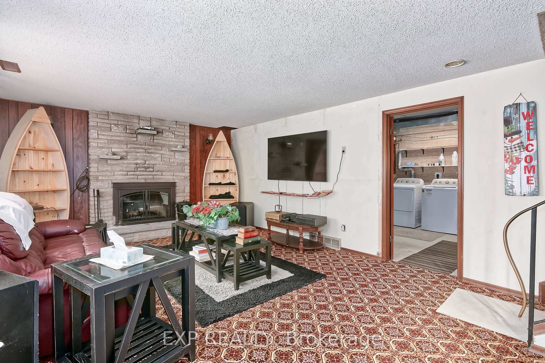 Welcome to amazing Port Franks; a piece of heaven in a super safe community. This property has so much to offer! Just minutes from a private beach that is arguably one of the nicest beaches in Ontario where you will have views of breath taking sunsets, the blue waters of Lake Huron, and beautiful sand beach. Close to marinas, the Ausable river, the Pinery and Grand Bend. Fantastic area for boating, kayaking and fishing and parasailing. Perfect as either a primary residence, a cottage or an AirBnb. A split level raised open concept landscaped property and home that offers so much space and new windows that bring in lots of natural light. The Bay window in the living room is a focal point. Enter a bright sunroom to go out to the nature's paradise and a large deck to enjoy nature at it's finest and memories of family get togethers. Rain or snow? Cuddle up in front of the fireplace on the lower level in the family room and relax! Upgrades include new windows in the house (2025)with 25 year transferable warranty. Replaced board and batten. Deck, rock and retaining wall completed in 2022. Garage door, central vac and sump pump (2022); Chimney flu and steel cap 2013. Stainless steel fridge, stove microwave and dishwasher (2023), flooring in foyer and powder room replaced (2023); eavestroughs, fascia and metal roof (2010), air conditioner (2012) Surge Protection 2020. Storage under deck. Hiking, biking, library, community centre all close by. Enjoy Cross country ski trails and snowmobiling in Winter. Amenities close by. School bus route.
