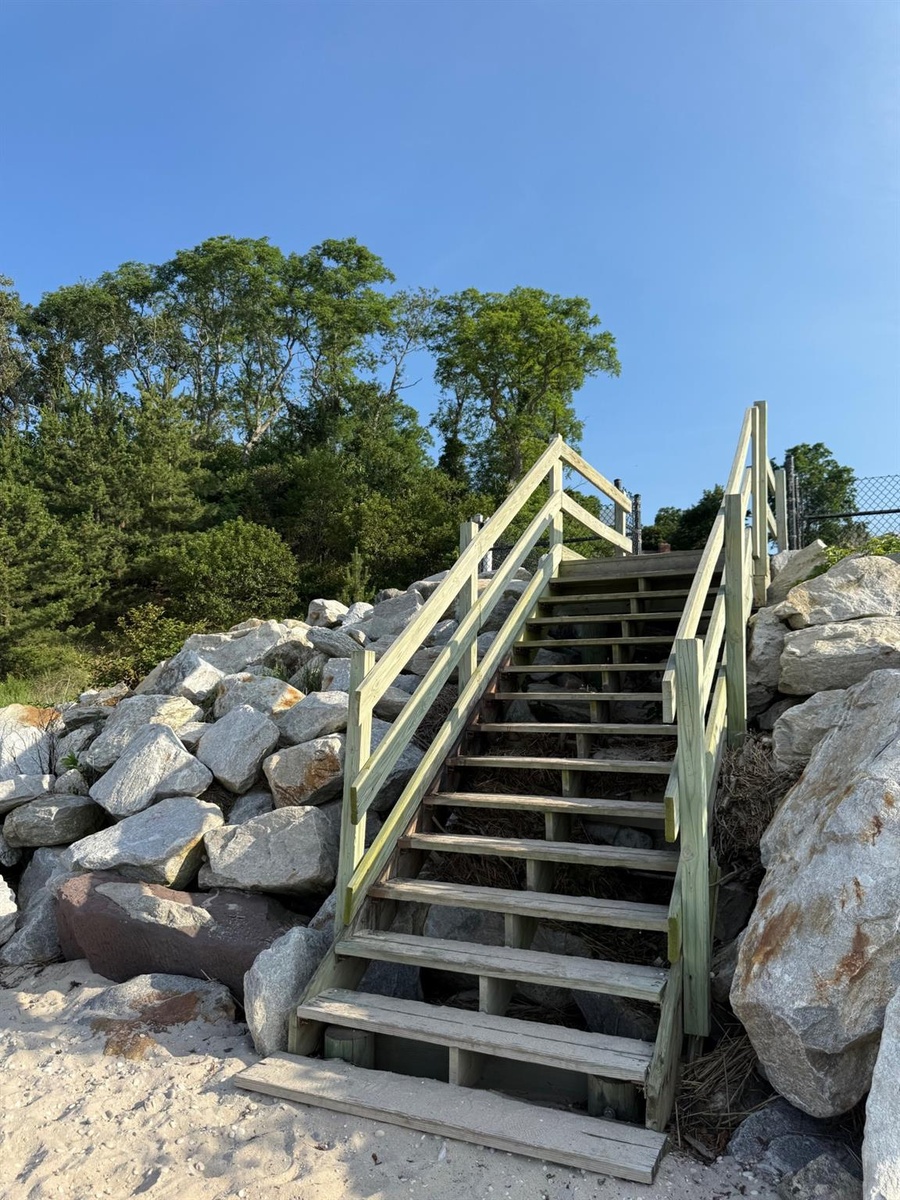 Magnificent Updated Contemporary Home That overlooks the Long Island Sound & has Access to the Beach, Features 4 Bedrooms And 2.5 Baths, Living rm with large windows vaulted ceilings and Skylights, Updated Eat in Kitchen with newer Stainless steel appliances, Bosh induction cooktop, wall ovens, Microwave in a drawer in the Island, Samsung Refrigerator with triple cooling, Wine Cooler and plenty of cabinets and counterspace. Formal Dining room with room for all your guests, Den with fireplace, Primary bedroom suite that overlooks the water, has a large bathroom with Heated Floors, double vanity, Shower of your dreams, and Bidet. finished Basement with room for exercise equipment, Movie watching, ping pong and hobbies. 2 Electric panels 250 Amps/each. Central Air Conditioning, Ground level has heated floors. Oil tank is located in the basement. Attached 2 car Garage.
