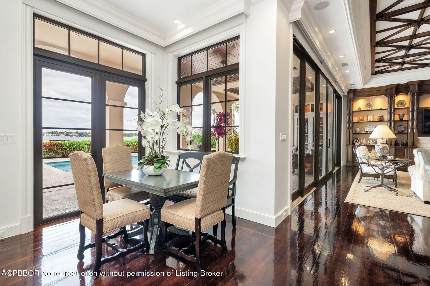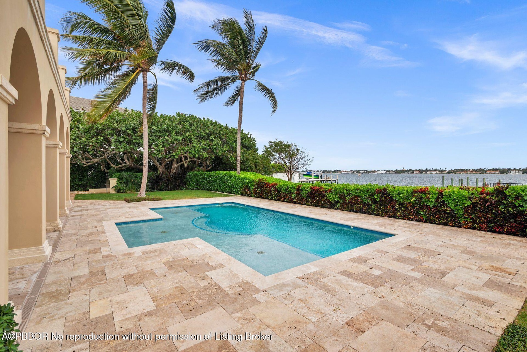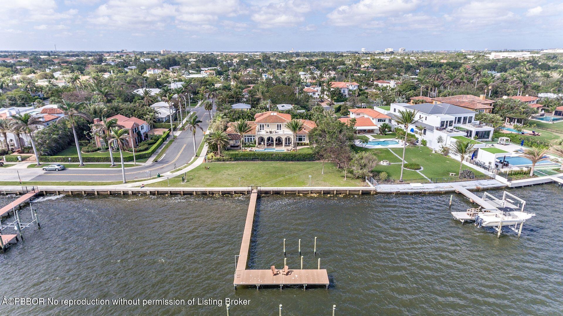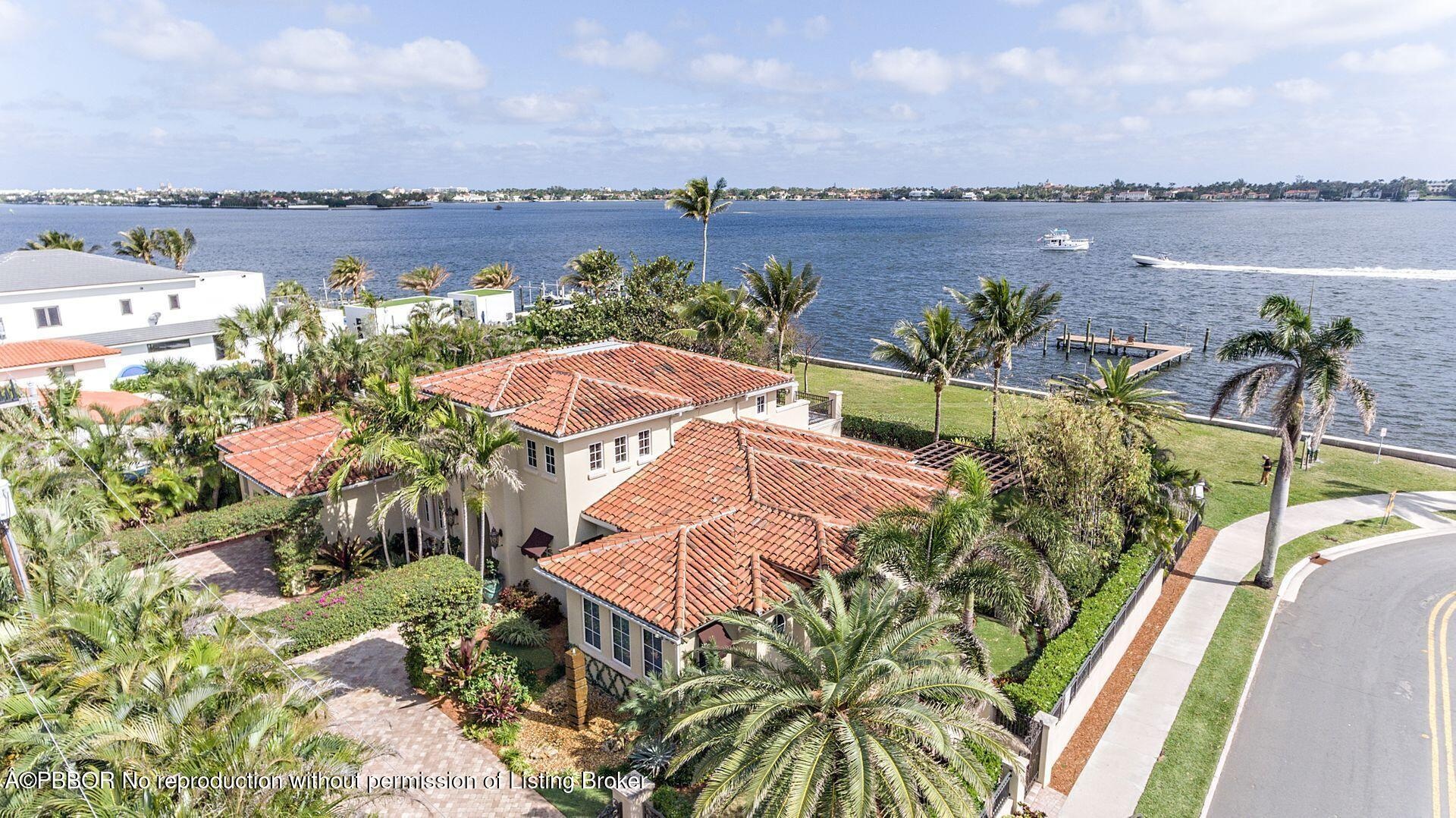Enjoy beautiful views of the coveted Mar-a-lago Estate from this direct Intracoastal waterfront estate offering over 6000 total square feet of luxury living. Ideal for boaters, this fully-gated property boasts a newly-constructed deep water dock ideally located between the Palm Beach and Boynton Beach inlets. This 4 bedroom, 5.5 bath home offers endless custom features including volume ceilings, custom cabinetry and mill work, fully integrated Savant home automation system and an exquisite Chefs kitchen complete Subzero & Wolf appliances. The Living Room's fully-retractable impact doors embrace indoor/outdoor living and entertaining at its finest. The first floor Master Suite boasts high ceilings, his/her master baths, and designer closets. Additional features include: brand new roof, wine room, full house generator, air-conditioned 3 car finished garage, all hurricane impact windows and doors, substantial second floor balcony overlooking the Intracoastal, private heated pool and expansive covered loggia. Minutes away from Worth Ave, PBIA and beaches and the new The Park Golf Course.