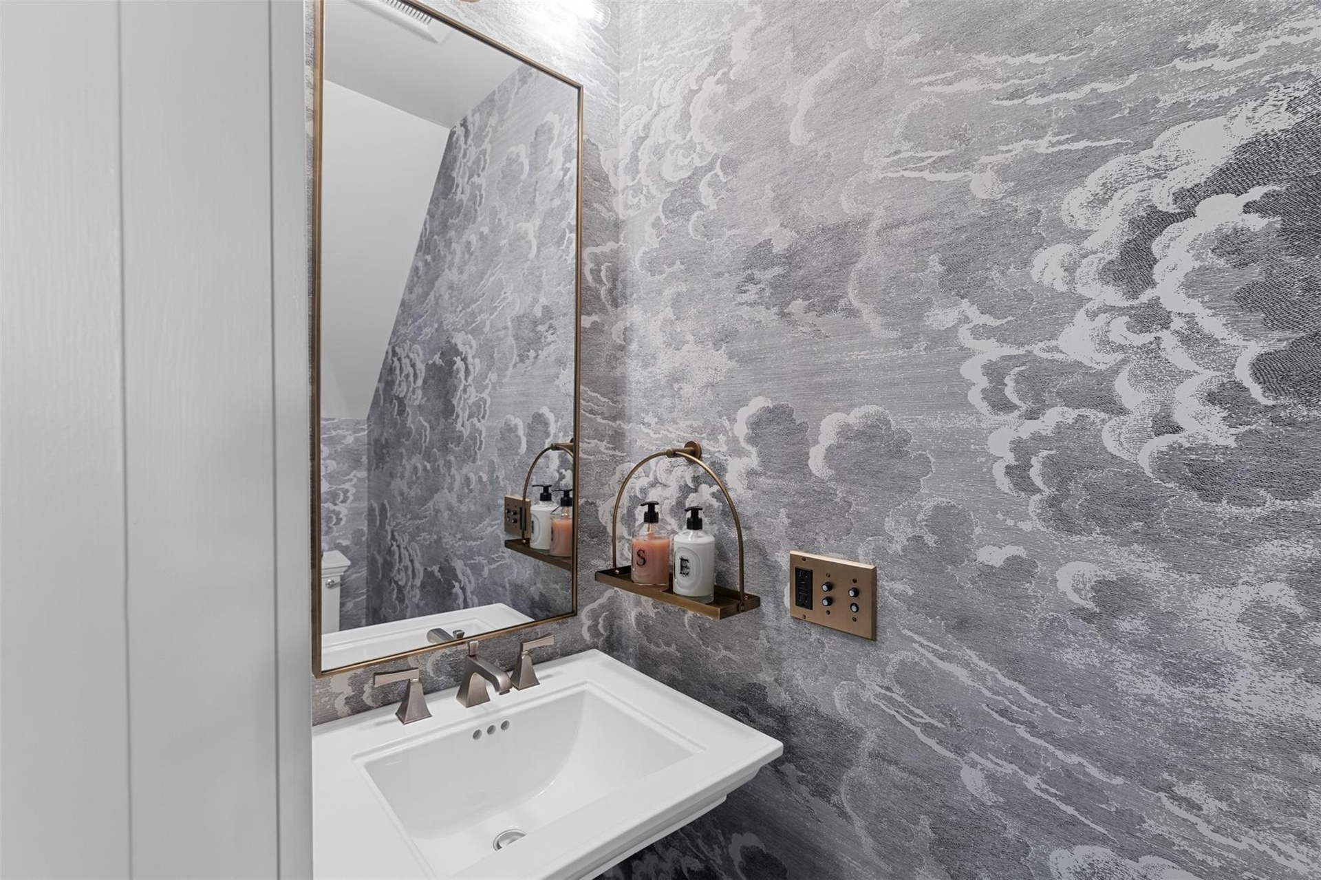 Upstairs, a central hall mirrors the floor plan below, with four spacious bedrooms set in each corner for privacy and balance. At the heart of the floor plan are two full, beautifully updated bathrooms that blend timeless materials with modern design. The home’s tall ceilings and clean architectural lines create a sense of light, scale, and elegance throughout.
