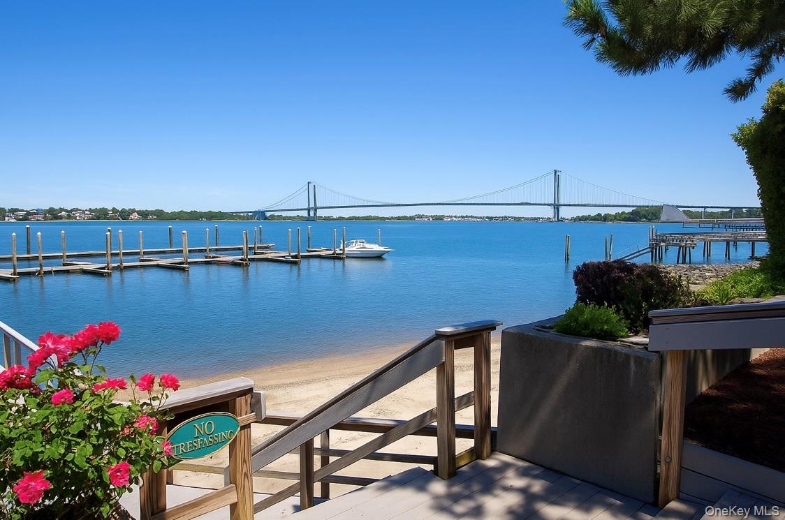 - Water view with a notable bridge view. Direct access to private beach just steps from your front door.