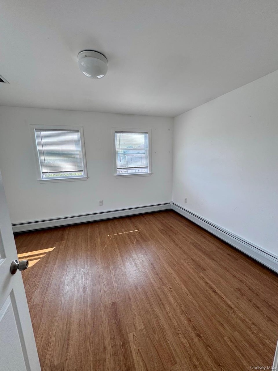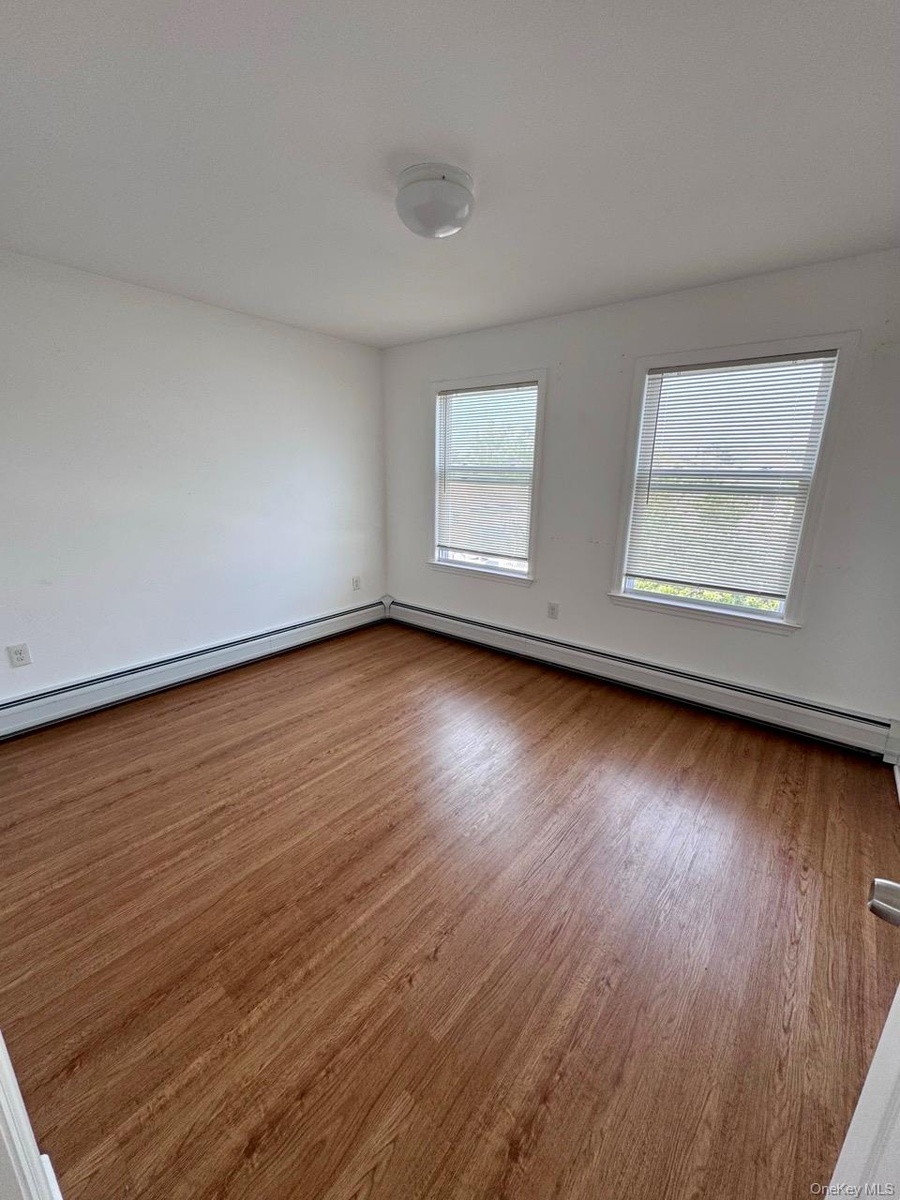- Unfurnished room featuring a baseboard radiator and wood finished floors