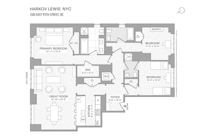 Spanning nearly 1,959 square feet, this spacious home features north, east, and south-facing exposures, allowing natural light to fill the space throughout the day. The incredible great room greets you with soaring 10" ceilings accented by floor to ceiling windows. The chef's kitchen is a standout, outfitted with a premium Miele appliance package, ample custom cabinetry, and a subzero wine fridge built into the island-perfect for entertaining.