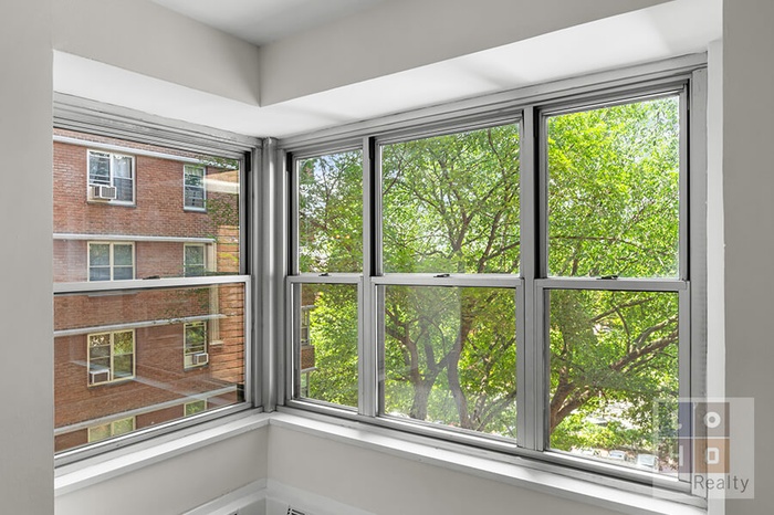 The king-sized primary bedroom features a windowed half-bath en suite, which can easily be converted to a full bathroom with a shower stall. Two additional well-sized bedrooms provide plenty of space for guests, family, or a home office. The full bathroom includes a soaking tub, and throughout the home you’ll find original hardwood parquet floors, seven closets (including three walk-ins), and dual exposures (East and West) for excellent natural light and cross-ventilation.