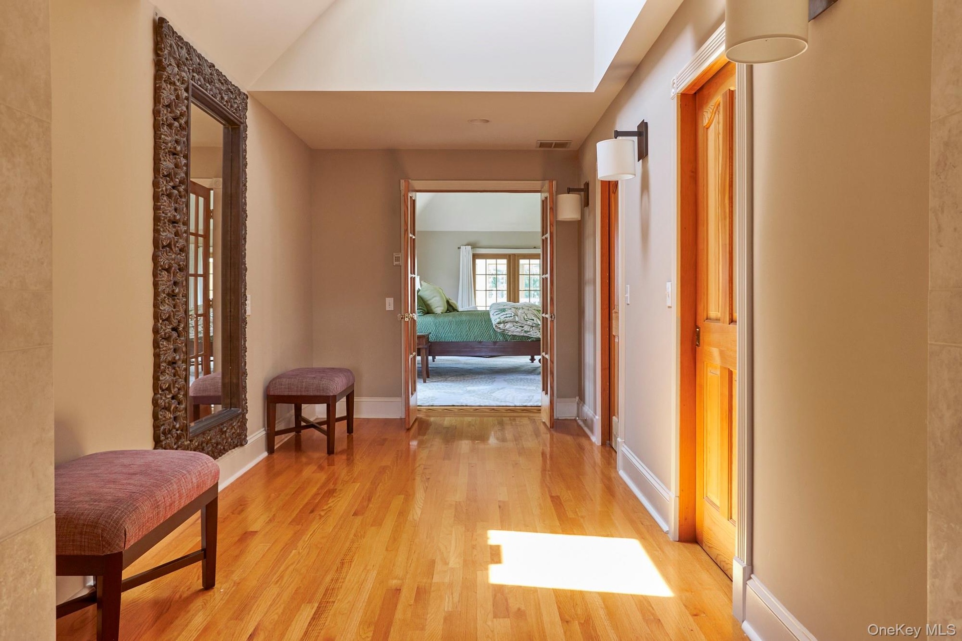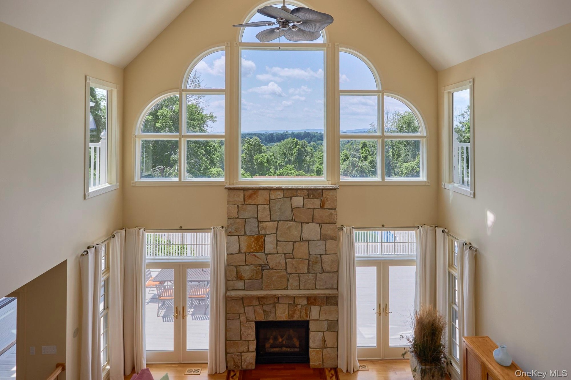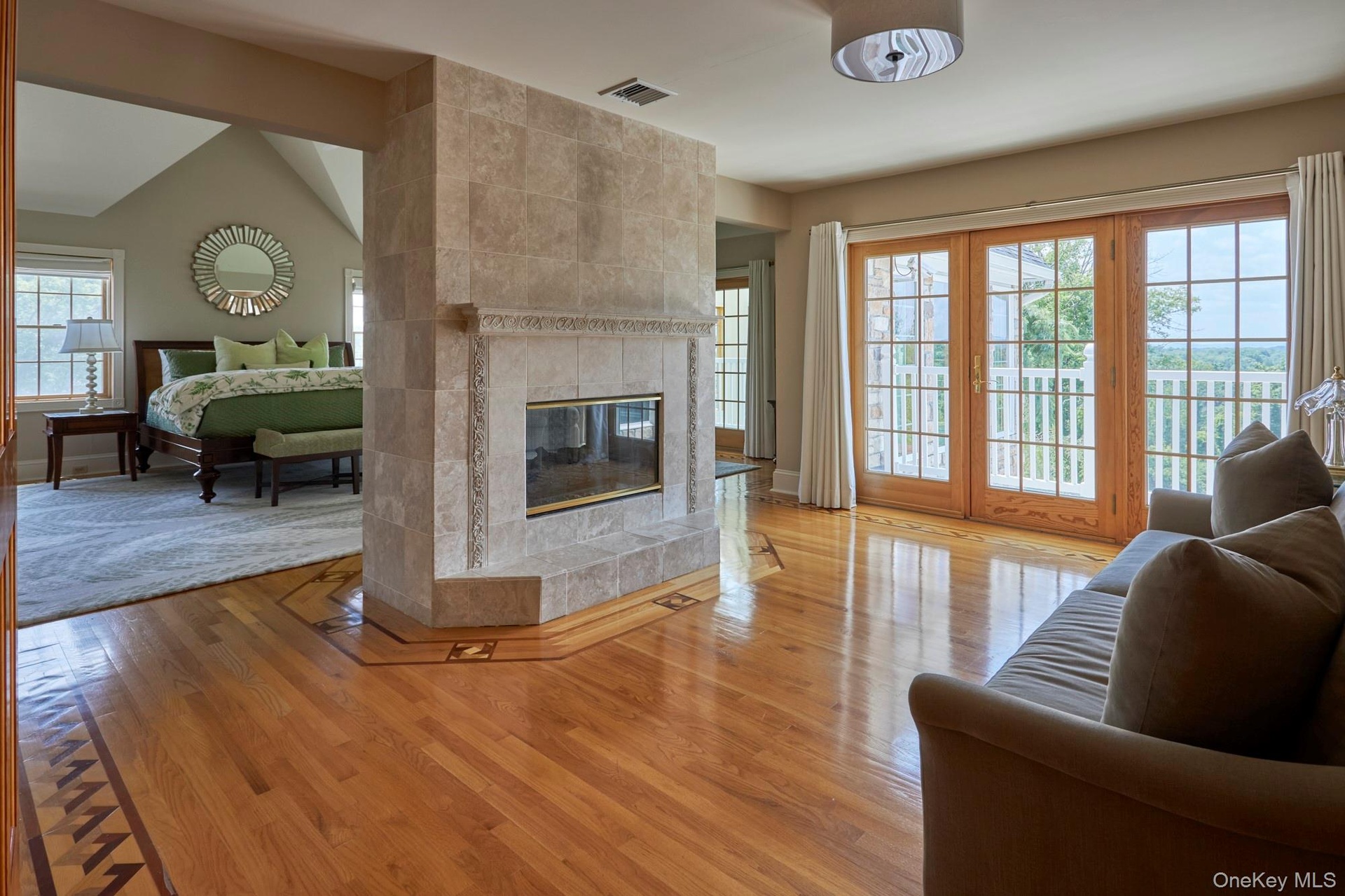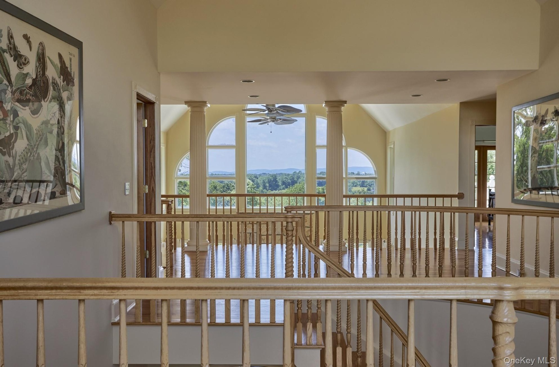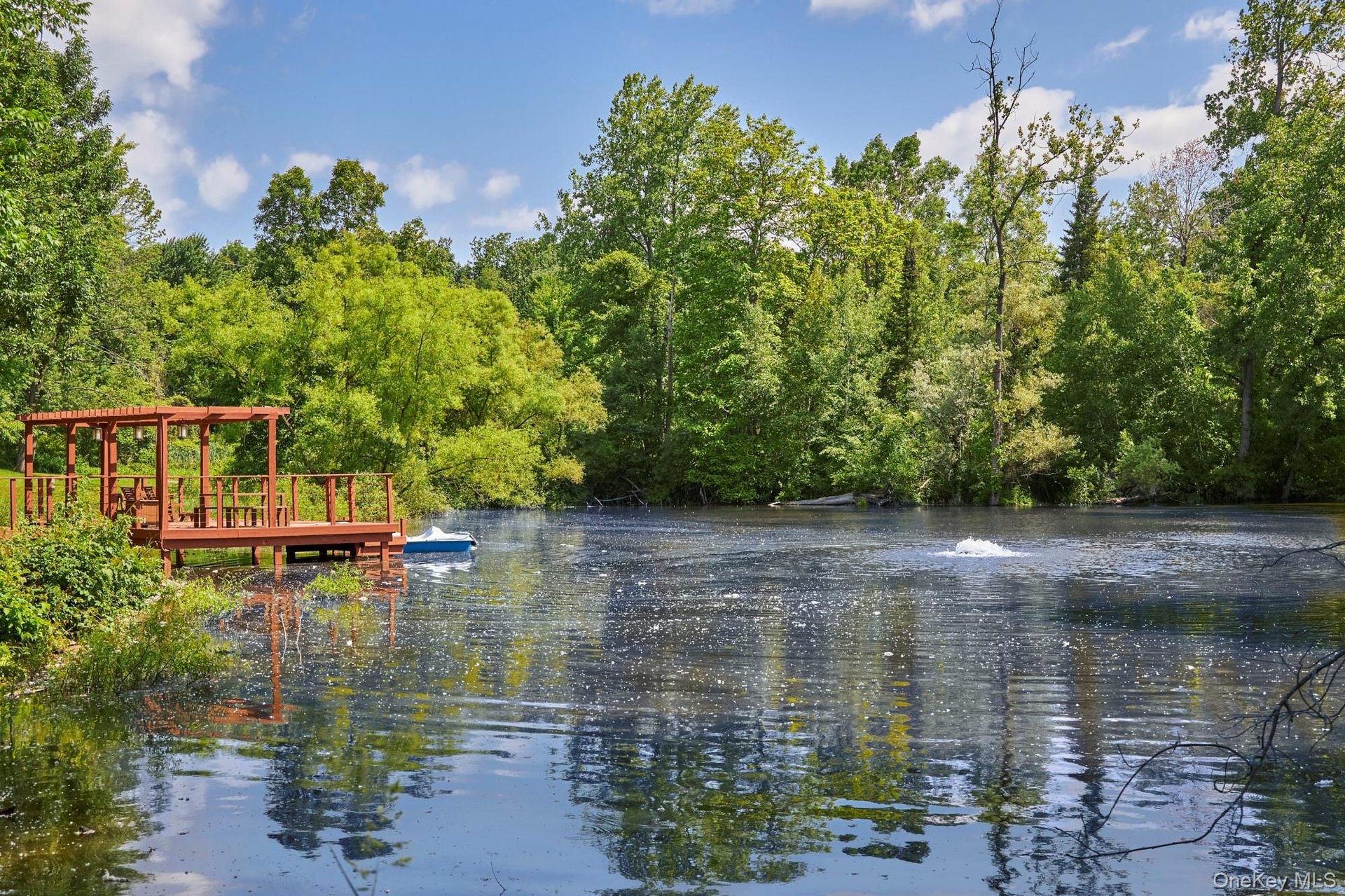 Hilltop Retreat, built in the Millenium Mansion style, provides an incomparable experience of country living. This gracious residence is approached via a meandering driveway past stone walls and a pond and is secluded within 66 acres of curated lawns w/ majestic trees, a shimmering pond, old growth forest, and year-round Catskill mountain views. Casually formal, w/over 7,000sqft of living space spanning 3 levels, this home affords plenty of space for an abundance of shared enjoyment as well as personal serenity. Throughout, the gleaming wood floors, tall windows, and high ceilings capture beautiful light. The bluestone entry off the circular drive leads into a foyer w/a sweeping 3-story staircase where you’re drawn into the vast double height living room centered around a stone fireplace and French doors opening into the full span of western views and expansive poolside living. Flanking the foyer are the library and formal dining room, each w/ large window seats, fireplaces, and inlaid wood floors. The u-shape eat-in kitchen is anchored by a large central island and opens into a solarium, perfect for growing culinary herbs and flowers. On the far side of this floor is a most special room w/ 3 sides of glass and doors which open into an arched portico. Up the beautiful, curved staircase onto an expansive landing overlooking the living room and out to the mountains. The primary bedroom suite is quite dramatic w/ a sitting area, two-sided marble fireplace and balcony. The dressing room has 2 built-in closets and the bathing area pampers. Three additional ensuite bedrooms w/ dressing rooms complete this floor. The lower level is about fun. Enter into the recreation room – ping pong/pool table, games, darts, a wet bar, and a major gym w/ a full bath. Here also are two additional quite ample rooms (bed, study, den?) and a bath. The picturesque landscape is seen and is accessible from almost every room. Walk down the sweeping lawn, past the wishing well, and into the fenced irrigated garden w/ fruit trees, blueberry bushes, strawberry beds, and room for more. The children’s playground is sweet and adjacent to the lighted basketball court. Further on is the aerated pond w/a seating dock w/electric – fish, canoe, sleep. And, the pool: Heated, 800sqft surrounded by a sprawling patio w/a beautiful pergola, massive peony gardens, a firepit and steps leading to the 875sqft upper story deck. This retreat, majestically sited on this property, is a refuge and park in all seasons. Located in the Town of Poughkeepsie, only 81 miles from Midtown, 5 miles to MetroNorth RR & 2.5 miles to Adams Fairacre Farms for all your provisions. This country estate offers the gift of both visual and sonic seclusion without the need to travel too far.
