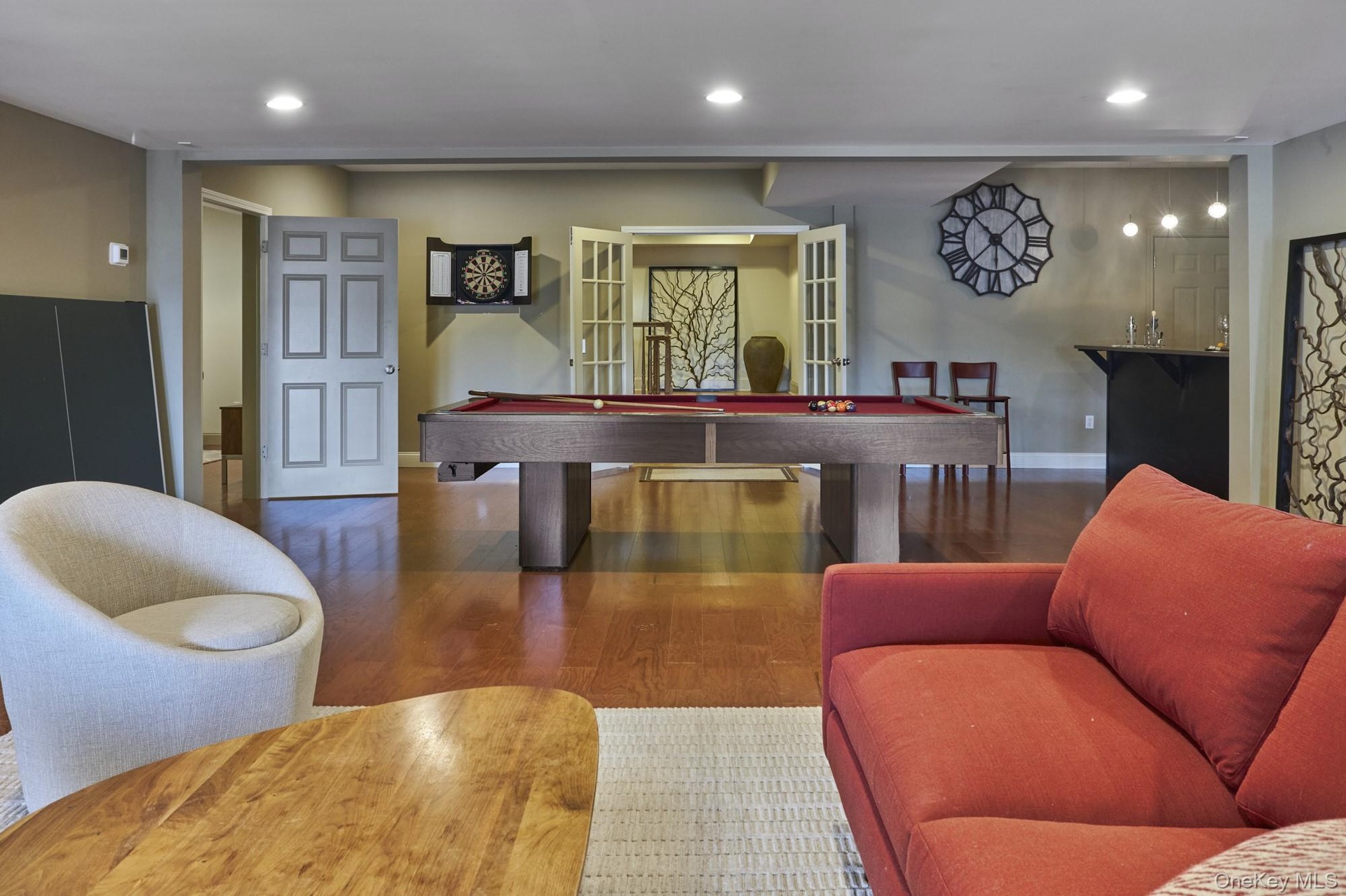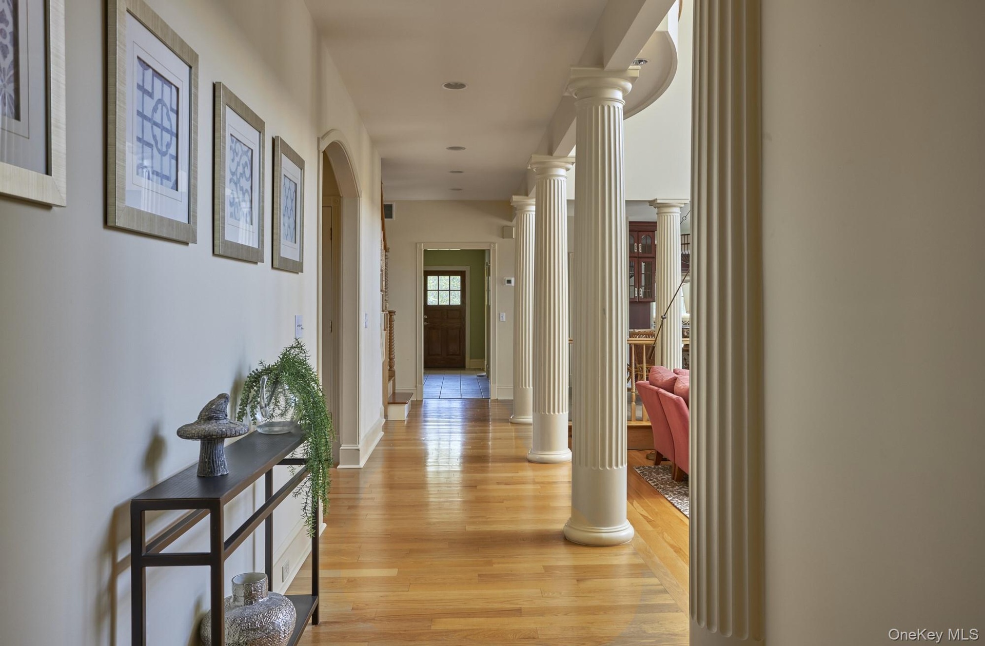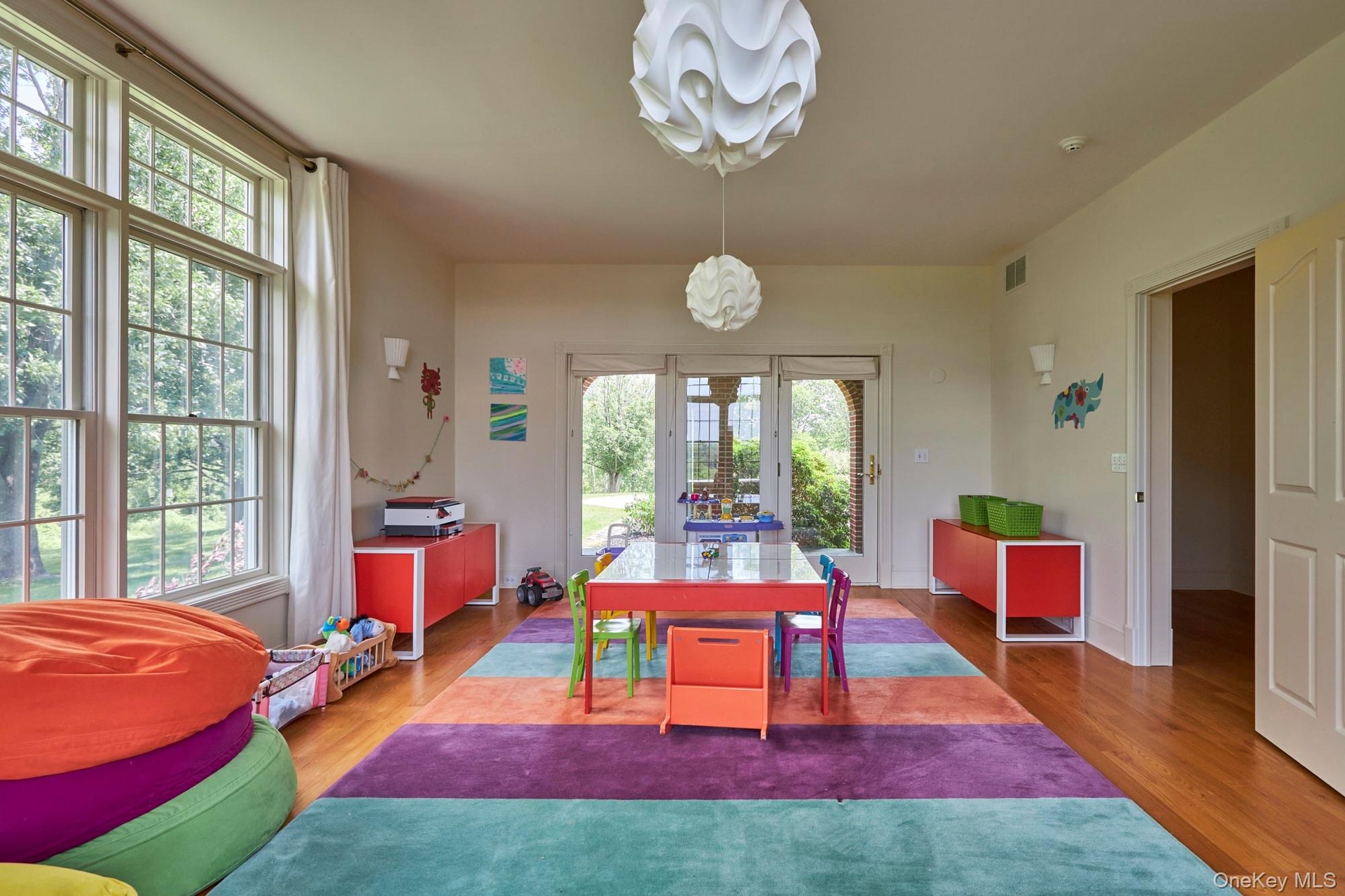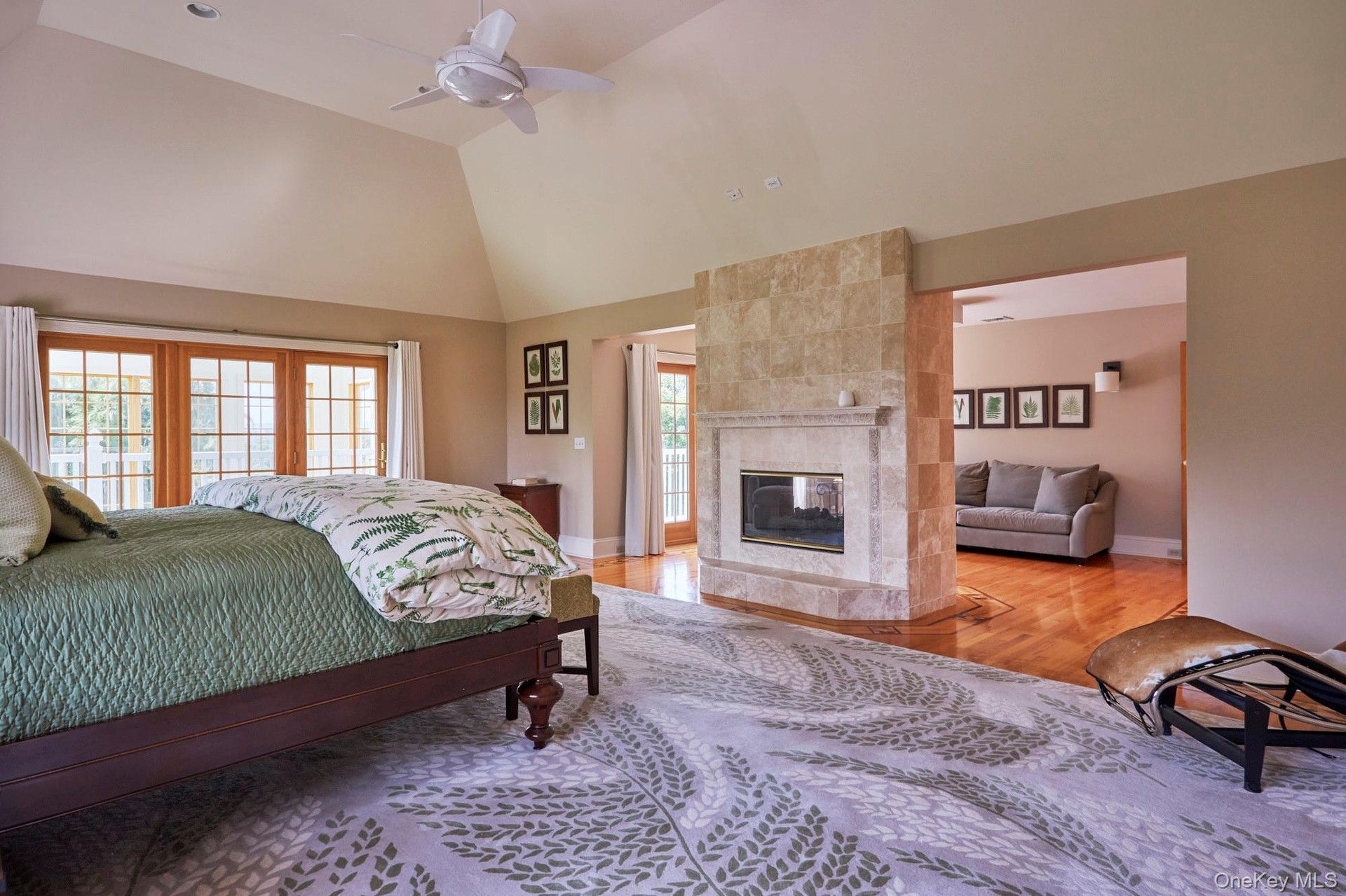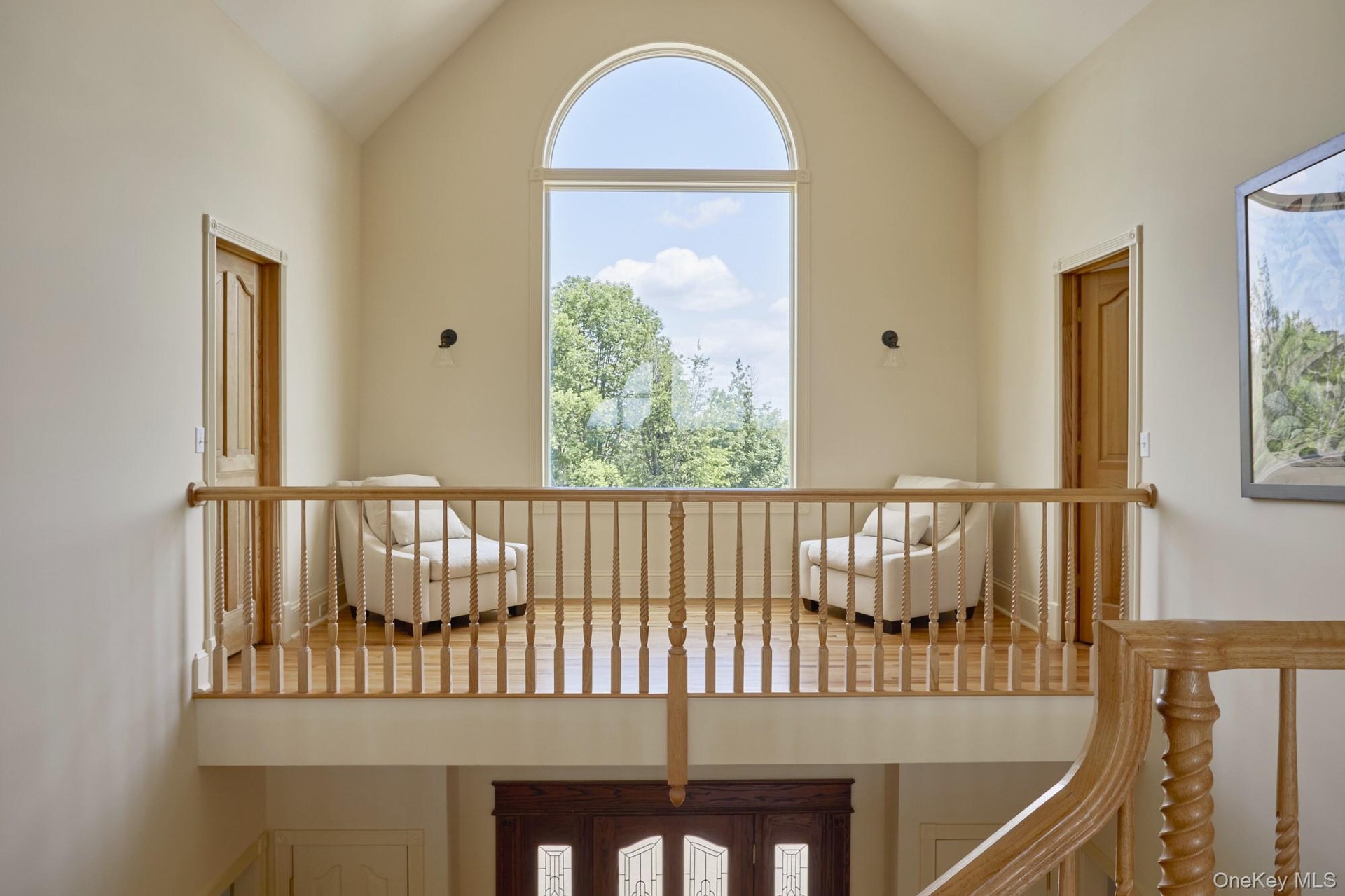 Hilltop Retreat, built in the Millenium Mansion style, provides an incomparable experience of country living. This gracious residence is approached via a meandering driveway past stone walls and a pond and is secluded within 66 acres of curated lawns w/ majestic trees, a shimmering pond, old growth forest, and year-round Catskill mountain views. Casually formal, w/over 7,000sqft of living space spanning 3 levels, this home affords plenty of space for an abundance of shared enjoyment as well as personal serenity. Throughout, the gleaming wood floors, tall windows, and high ceilings capture beautiful light. The bluestone entry off the circular drive leads into a foyer w/a sweeping 3-story staircase where you’re drawn into the vast double height living room centered around a stone fireplace and French doors opening into the full span of western views and expansive poolside living. Flanking the foyer are the library and formal dining room, each w/ large window seats, fireplaces, and inlaid wood floors. The u-shape eat-in kitchen is anchored by a large central island and opens into a solarium, perfect for growing culinary herbs and flowers. On the far side of this floor is a most special room w/ 3 sides of glass and doors which open into an arched portico. Up the beautiful, curved staircase onto an expansive landing overlooking the living room and out to the mountains. The primary bedroom suite is quite dramatic w/ a sitting area, two-sided marble fireplace and balcony. The dressing room has 2 built-in closets and the bathing area pampers. Three additional ensuite bedrooms w/ dressing rooms complete this floor. The lower level is about fun. Enter into the recreation room – ping pong/pool table, games, darts, a wet bar, and a major gym w/ a full bath. Here also are two additional quite ample rooms (bed, study, den?) and a bath. The picturesque landscape is seen and is accessible from almost every room. Walk down the sweeping lawn, past the wishing well, and into the fenced irrigated garden w/ fruit trees, blueberry bushes, strawberry beds, and room for more. The children’s playground is sweet and adjacent to the lighted basketball court. Further on is the aerated pond w/a seating dock w/electric – fish, canoe, sleep. And, the pool: Heated, 800sqft surrounded by a sprawling patio w/a beautiful pergola, massive peony gardens, a firepit and steps leading to the 875sqft upper story deck. This retreat, majestically sited on this property, is a refuge and park in all seasons. Located in the Town of Poughkeepsie, only 81 miles from Midtown, 5 miles to MetroNorth RR & 2.5 miles to Adams Fairacre Farms for all your provisions. This country estate offers the gift of both visual and sonic seclusion without the need to travel too far.