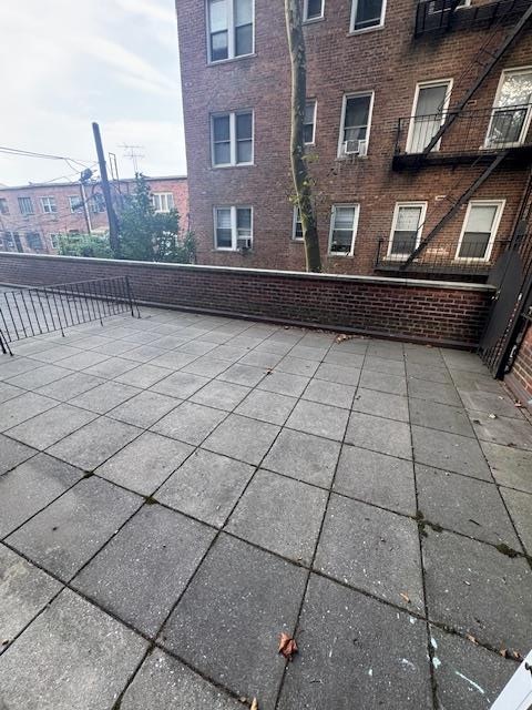 The apartment features two spacious bedrooms, each with ample closet space, large windows, and the potential to be used as sleeping quarters, a home office, or guest space. A full bathroom, conveniently located between the bedrooms and living area, completes the interior with a practical layout that’s ideal for couples, small families, or retirees seeking single-level living.