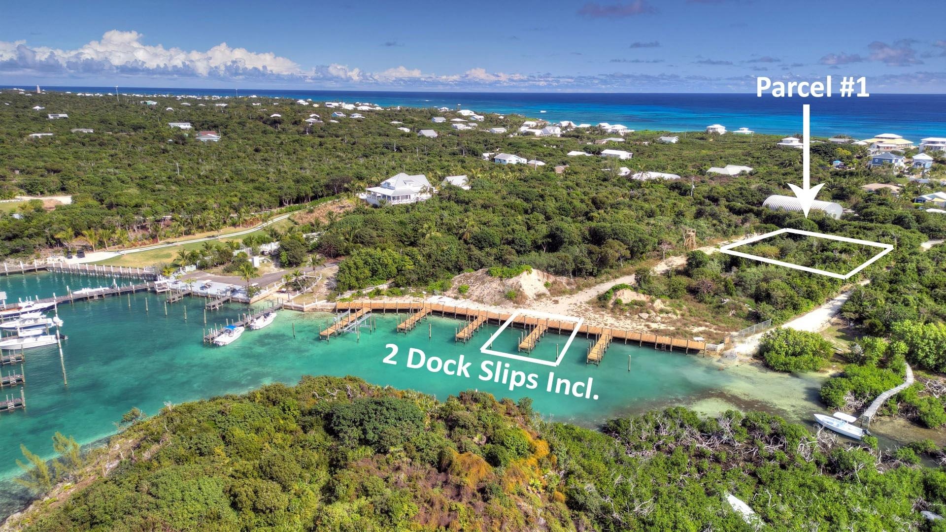 Congratulations, you have finally found it: the perfect spot near the world-renowned Elbow Reef Lighthouse and Hope Town, The Abacos. Lot 1 contains 13,165 SF of hilltop elevated land and deeded access to the private shared marina of Islands Tide Cove where there are 2 private dedicated dock slips. With a gentle slope that reaches an elevation of 30 ft over sea level and a max roof height of 30 ft, the views from this spot will be stunning, taking in Tahiti Beach, White Sound and more. The offering includes the very rare opportunity to have 2 private deeded dock slips at the back door. The slips can accommodate vessels up to 40 t in length, max beam 11 ft, draft 5+ ft. This private marina is perfectly sheltered and, though not required, there is an option to use existing building plans for a 4-bedroom, 4.5-bath home at no extra cost. Electricity is available and ready, although the island does not have municipal water; plan on rain water tanks and/or RO system. Finding a site with 2 deeded dock slips is rare anywhere in the world while on Elbow Cay it is nigh impossible. Click today