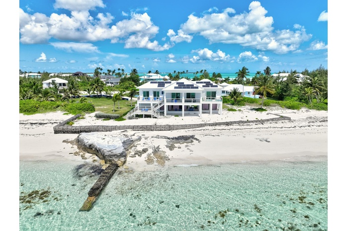 Nestled on the powder white sands of Windward Beach in world famous Treasure Cay, Suzie's Rock is an exquisite two storey three bedroom, three and a half bathroom luxury beachfront residence boasting breathtaking beach and shimmering Sea of Abaco views! The second level functions as the main living area, with a tastefully furnished and well equipped open living/dining/kitchen, with three bedrooms and three full bathrooms. The covered veranda stretches the whole waterfront side of the home providing outdoor living at its best! The lower level has additional outdoor living space, a half bathroom, storage, and other rooms housing key integrated design features such as solar and water systems. A backup generator and large water storage tank are also included on the property. This amazing home is situated on two beachfront lots with a combined beach frontage of 285 feet. Shopping and dining options are a short golf cart ride away, and other amenities available via car ride to Marsh Harbour. This home with its stunning vistas, privacy, and off grid features is truly one of a kind!