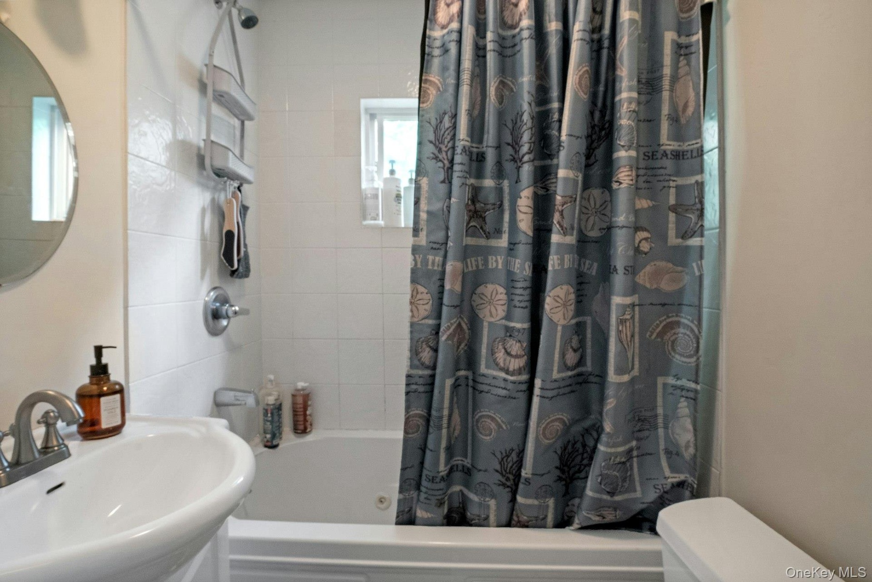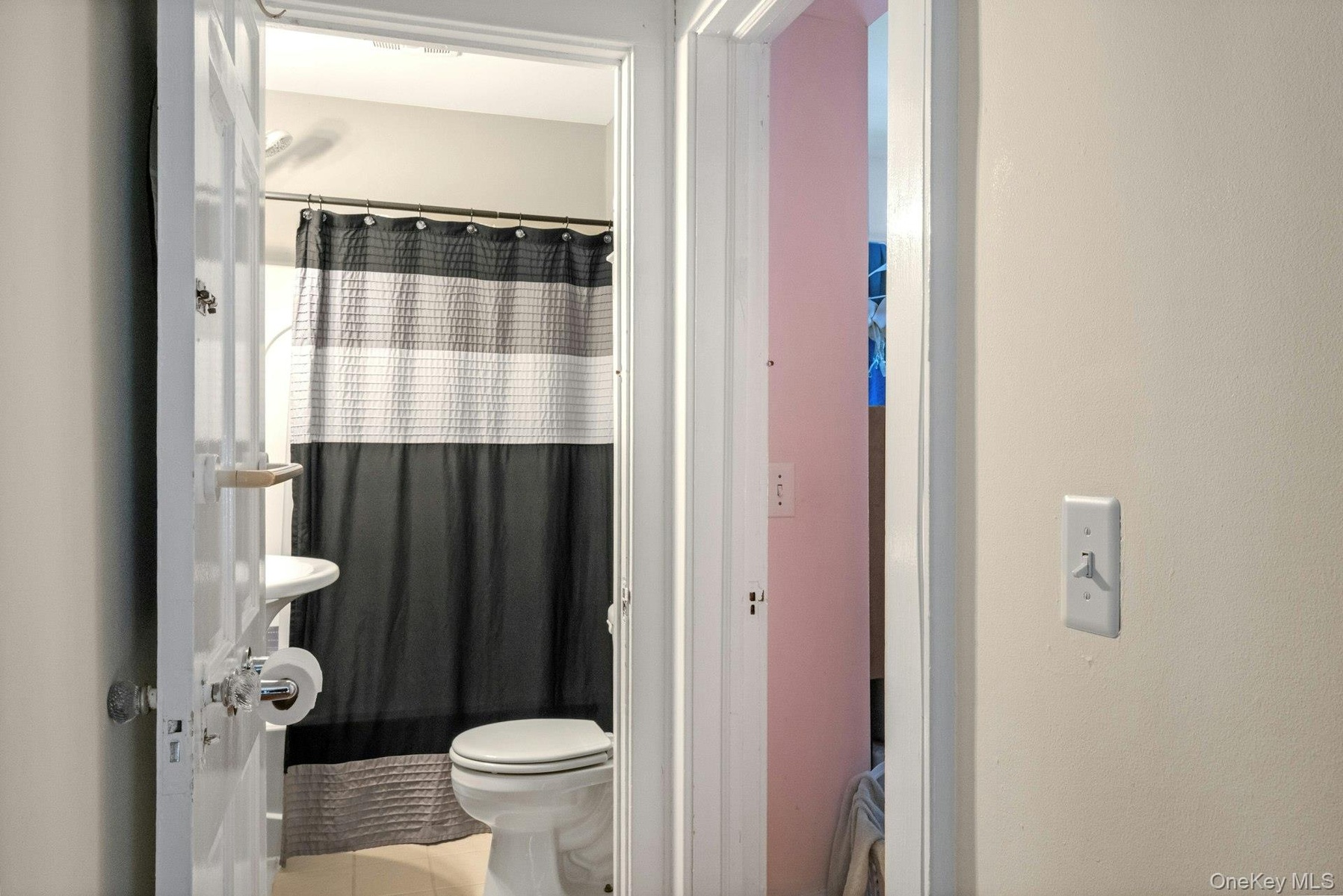 - 2nd floor Full bathroom with tile patterned floors and a shower with curtain