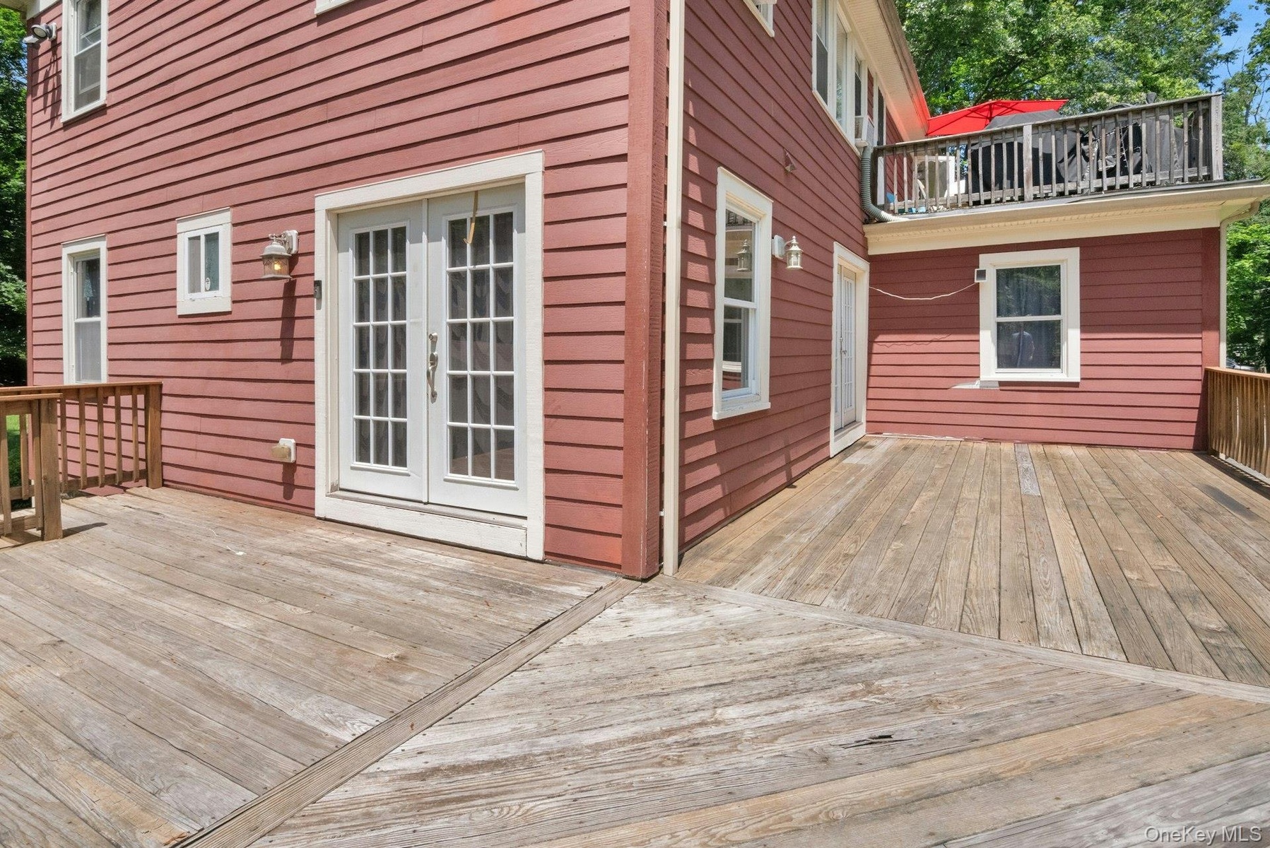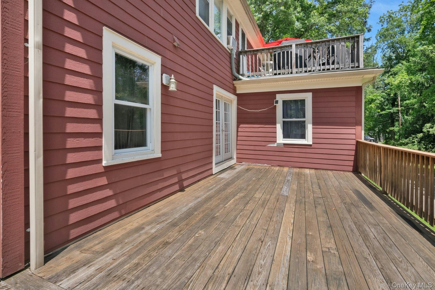 - Wooden deck with french door entry to 1st floor unit featuring view of scattered trees.