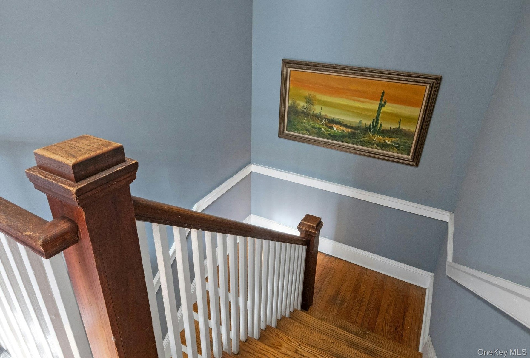 - Foyer entrance with door to main level unit visible featuring wood finished floors
