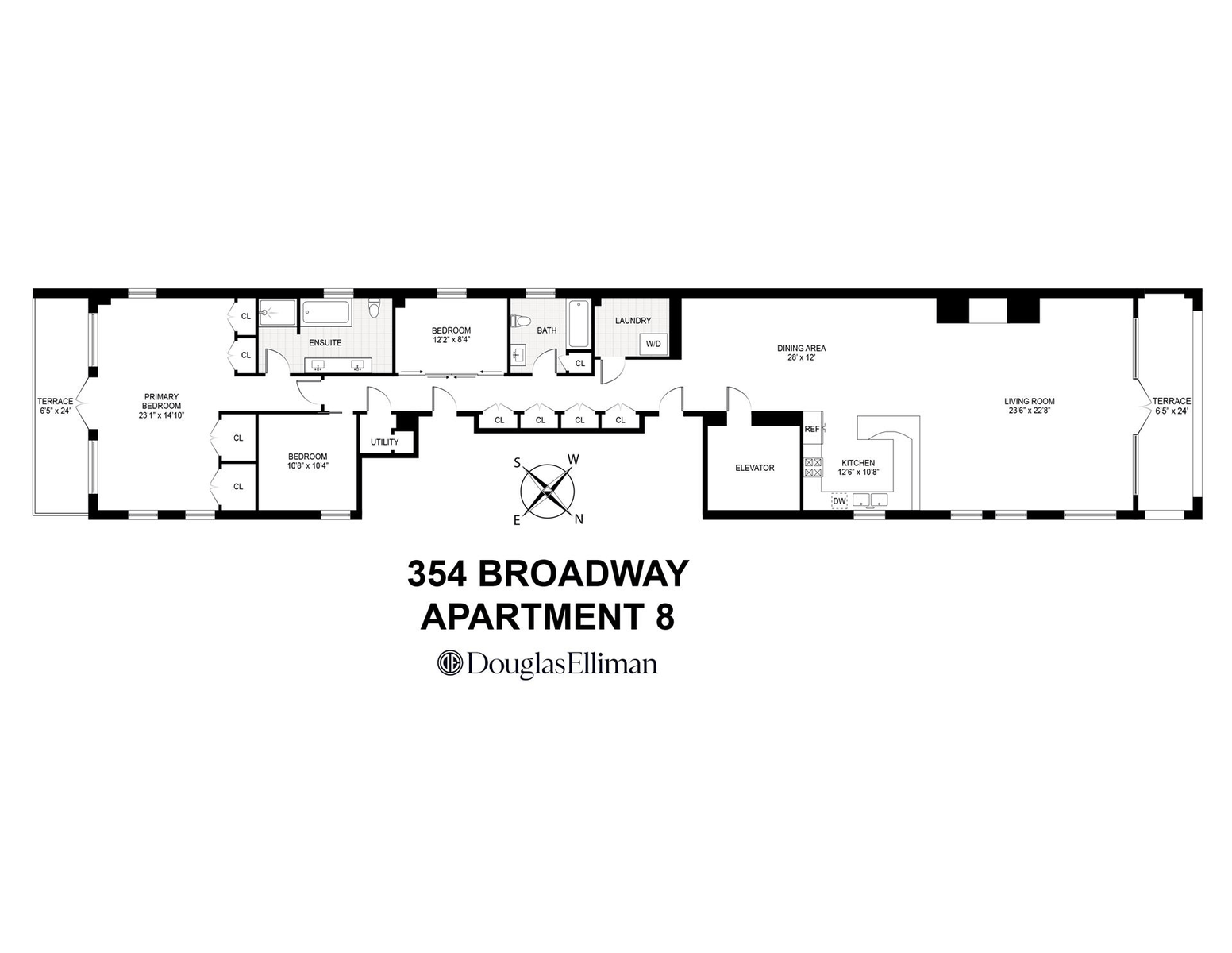 Discover refined loft living in the heart of Tribeca. This expansive, full-floor Residence spans 2,810 square feet and is situated in an intimate, boutique doorman condominium. With 3-Bedrooms, 2-Bathrooms, soaring 11.5-foot ceilings, and exposures in all four directions, this exceptional home also boasts two private terraces with sweeping city views.