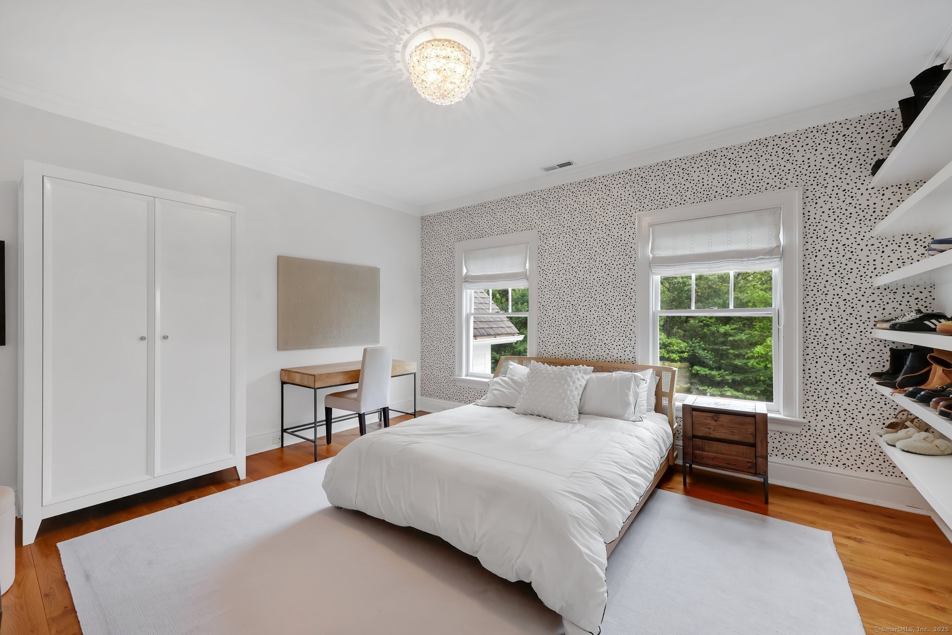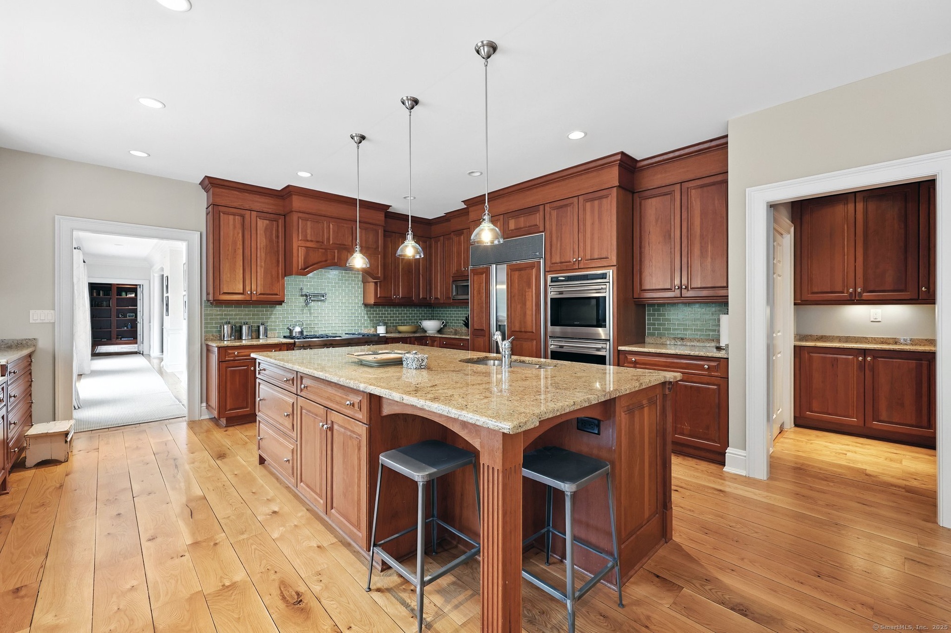 DescriptionThis magnificent brick and clapboard estate offers elegance & sophistication with every detail meticulously crafted for refined living.The gracious foyer welcomes you with a grand turned staircase, views to the private, treed backyard & is flanked by the formal living & dining rooms. A full hallway traverses the 1st floor allowing access from the office, decks & lower level to the kitchen & great room without intruding on the formal living and dining areas.The gourmet kitchen is complete w/high end appliances, a large island & both a butlers & walkin pantry w/a 2nd home office area. The kitchen opens to the 2 story great room anchored by a fireplace fitted with gas logs & a wall of windows that bring the outdoors in. 2 staircases give access to a well designed 2nd flr. The lavish primary suite incl a fireplace, large storage island & a thoughtfully redesigned & luxurious bath.The 2nd floor is completed w/4 addtnl bedrooms complete with ensuite baths and a sitting area. The finished 3rd floor has wonderful flex space, a full bath and includes home theatre equip. The LL is an entertainers dream w/full bar, game area, dining space, workout room, media room, wine cellar, 2 full bths and sliders to the expansive patio w/hot tub and covered seating area.The outdoor area includes expansive 1st floor decking with many options for family living and entertaining.Amenities- Audio System