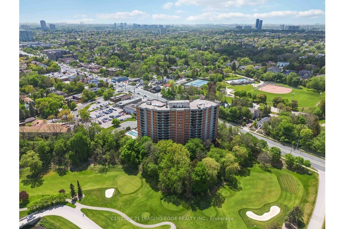 Welcome to The Summit, an exclusive boutique condo residence overlooking the prestigious Toronto Ladies Golf Club in Old Thornhill Village. This exceptional 1-bedroom + full-size den suite offers over 950 sq ft of meticulously upgraded living space, blending modern luxury with serene natural views. Step inside to discover beautiful wood floors throughout, smooth ceilings, crown moulding, and an abundance of natural light. The bright, renovated kitchen features elegant stone countertops, designer backsplash, updated cabinetry, stainless steel appliances, and a large window framing peaceful golf course vistas. The spacious primary bedroom includes a walk-in closet and a private 2-piece ensuite, while the main bathroom boasts a contemporary walk-in shower and designer finishes. The versatile oversized den is perfect as a home office, guest space, or cozy retreat. You'll also love the oversized ensuite laundry room, offering exceptional convenience and additional storage space, a rare find in condo living! Enjoy your morning coffee or evening wine on the large private balcony, overlooking lush treetops and the golf course. Included are two premium parking spaces, plus all utilities are covered in the maintenance fees for worry-free living. Indulge in outstanding building amenities: secure access, a luxurious lobby, party room with kitchen, billiards and games rooms, library, dry sauna, fully equipped gym, outdoor pool & patio. All this, just steps to Yonge Street, transit, shops, and walking trails. Move in and experience Thornhill's finest boutique lifestyle today!