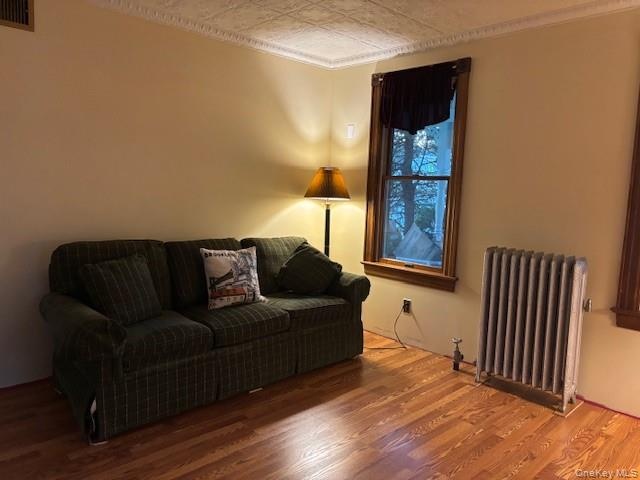 - Living room with radiator and wood finished floors
