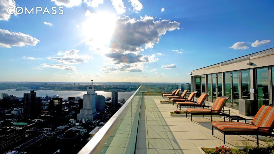 The crown jewel of the building is the Sky Club, a 24,000-square-foot, three-level residents’ oasis perched on the 58th floor. Amenities include two rooftop terraces with panoramic views, glass-enclosed, year-round saltwater pool, a fully equipped fitness center with weight room, yoga, Pilates, and Spin classes, spa facilities with steam rooms, saunas, and locker rooms, resident lounges, a wet bar, billiards/game room, and kid’s playroom and cold storage, a bike room, laundry on every floor, valet services, and more